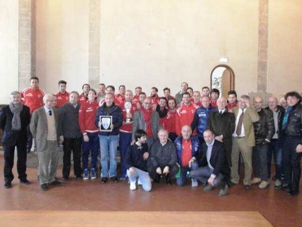 Il Città di Castello Calcio, vincitore della Coppa Italia regionale di Eccellenza, è stato premiato in Comune dal sindaco Luciano Bacchetta e dall’assessore alle Politiche sportive Massimo Massetti. La squadra tifernate ha conquistato il titolo, per il secondo anno consecutivo, sul campo del Renato Curi a Perugia, battendo la Subasio ai rigori con il risultato di 5 a 4.