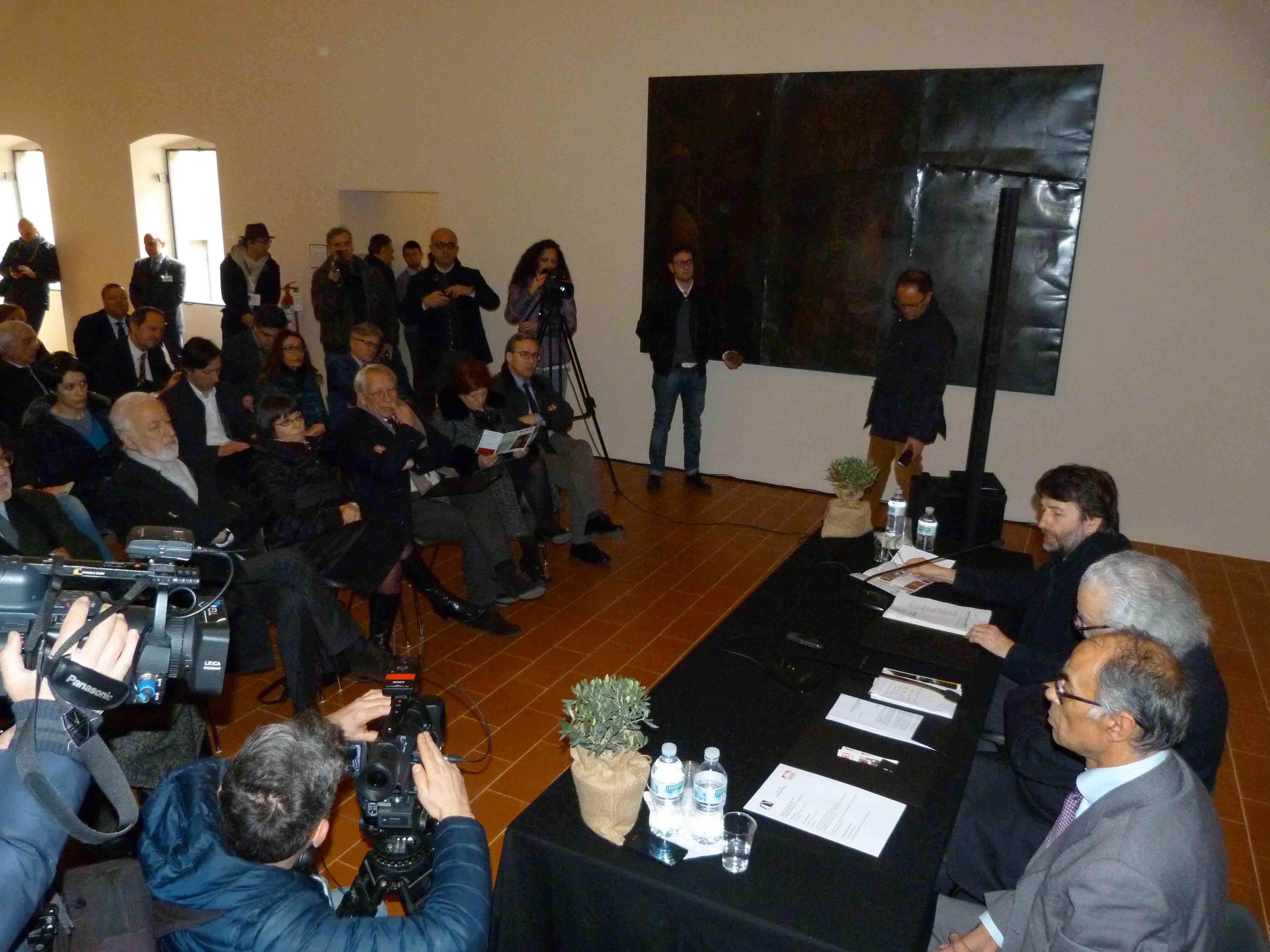 “La mia presenza a Città di Castello vuol significare che l’Italia intera è orgogliosa dell’opera di Alberto Burri e che le celebrazioni del Centenario della sua nascita saranno una fondamentale occasione per il Ministero di valorizzare sempre più lo straordinario contributo dell’arte contemporanea italiana all’immagine del Paese”. E’ quanto ha dichiarato il ministro ai Beni, alle Attività Culturali e al Turismo Dario Franceschini nella conferenza stampa di stamattina nella sede della Fondazione Palazzo Albizzini Collezione Burri, convocata in occasione del centenario della nascita del maestro tifernate, che ricorre domani, 12 marzo 2015. Il rappresentante del Governo ha visitato le due collezioni cittadine di Burri, a Palazzo Albizzini e presso gli Ex Seccatoi del Tabacco, e ha proceduto all’atto ufficiale di insediamento del Comitato Nazionale per le Celebrazioni del Centenario del Maestro Alberto Burri, istituito dalla legge n.63 del 14 aprile 2014, che presiederà su delega del presidente del Consiglio dei Ministri Matteo Renzi. Oltre al ministro, che rappresenterà il governo, nel comitato sono stati nominati il presidente della Fondazione Palazzo Albizzini Collezione Burri Bruno Corà; il direttore della Fondazione Musei Civici di Venezia Gabriella Belli; il soprintendente e direttore della Pinacoteca di Brera Sandrina Bandera; il direttore della Galleria degli Uffizi Antonio Natali; l’assessore alla Cultura della Regione del’Umbria Fabrizio Bracco; l’artista Jannis Kounellis in rappresentanza della Provincia di Perugia; il sindaco di Città di Castello Luciano Bacchetta; la responsabile della Soprintendenza alla Galleria Nazionale di Arte Moderna e Contemporanea di Roma Maria Vittoria Marini Clarelli, in rappresentanza della Fondazione Albizzini. In sede di presentazione dei componenti del comitato, il ministro Franceschini ha sottolineato l’importanza della legge recante le disposizioni per le celebrazioni del centenario della nascita di Burri, ricordando come ne sia stato primo firmatario l’onorevole Walter Verini insieme alla vice presidente della Camera dei Deputati onorevole Marina Sereni, entrambi presenti a Palazzo Albizzini insieme a numerose autorità, e ha spiegato come sarà compito dell’organismo valorizzare le iniziative programmate. “L’emanazione di una legge e l’istituzione di un comitato con rappresentanti di importanti istituzioni e alte professionalità – ha affermato Franceschini - fanno capire come le celebrazioni dedicate a Burri siano un patrimonio di tutto il Paese”. Il ministro ha molto apprezzato la visita alle Collezioni, nella quale è stato accompagnato dalla curatrice museale Chiara Sarteanesi, che ha spiegato la genesi delle opere del maestro, illustrando con dovizia di particolari le diverse tecniche utilizzate per i suoi lavori. “Qui tutto è meraviglia, è stupore, sono luoghi straordinari”, ha commentato Franceschini, che ha sottolineato come “il centenario rappresenterà una grande occasione per la città di acquisire consapevolezza dello straordinario tesoro di opere che custodisce”. “Legando il suo nome a Burri – ha sostenuto Franceschini – Città di Castello ha davanti a sé l’opportunità unica di esercitare in futuro una grande capacità di attrazione del turismo internazionale e l’Umbria, in questo contesto, rappresenta una sintesi unica tra il patrimonio artistico del passato e quello contemporaneo”. Il sindaco di Città di Castello Luciano Bacchetta ha condiviso le aspettative del ministro, riconoscendo il merito della Fondazione Palazzo Albizzini Collezione Burri di aver elaborato “un programma del Centenario straordinario, che pone Città di Castello al centro delle celebrazioni, con eventi di grande valore e un ritorno di immagine eccezionale, che sono sicuro sapremo cogliere”. “Abbiamo grandi ambizioni per questo Centenario, la cui importanza è sottolineata dalla presenza a Città di Castello del ministro Franceschini – ha affermato il primo cittadino – perché crediamo che la nostra città, nel nome di Burri, possa affermare il proprio ruolo di capitale dell’arte contemporanea”. Il sindaco Bacchetta ha colto l’occasione per confermare che tra le iniziative del Centenario rientrerà anche il gemellaggio con la città di Gibellina, a suggellare il legame tra due comunità alle quali Burri ha lasciato tracce indelebili della propria arte. “Questa è una giornata molto importante per la Fondazione, per la città, per Burri – ha affermato il presidente della Fondazione Palazzo Albizzini Collezione Burri Bruno Corà – il lavoro che stiamo facendo per celebrare l’arte del maestro a cento anni dalla sua nascita è per noi il punto di partenza di un nuovo impegno per la diffusione del nome e dell’opera dell’artista nel mondo, che, forse mai come in questo momento, è al centro dell’attenzione internazionale”.