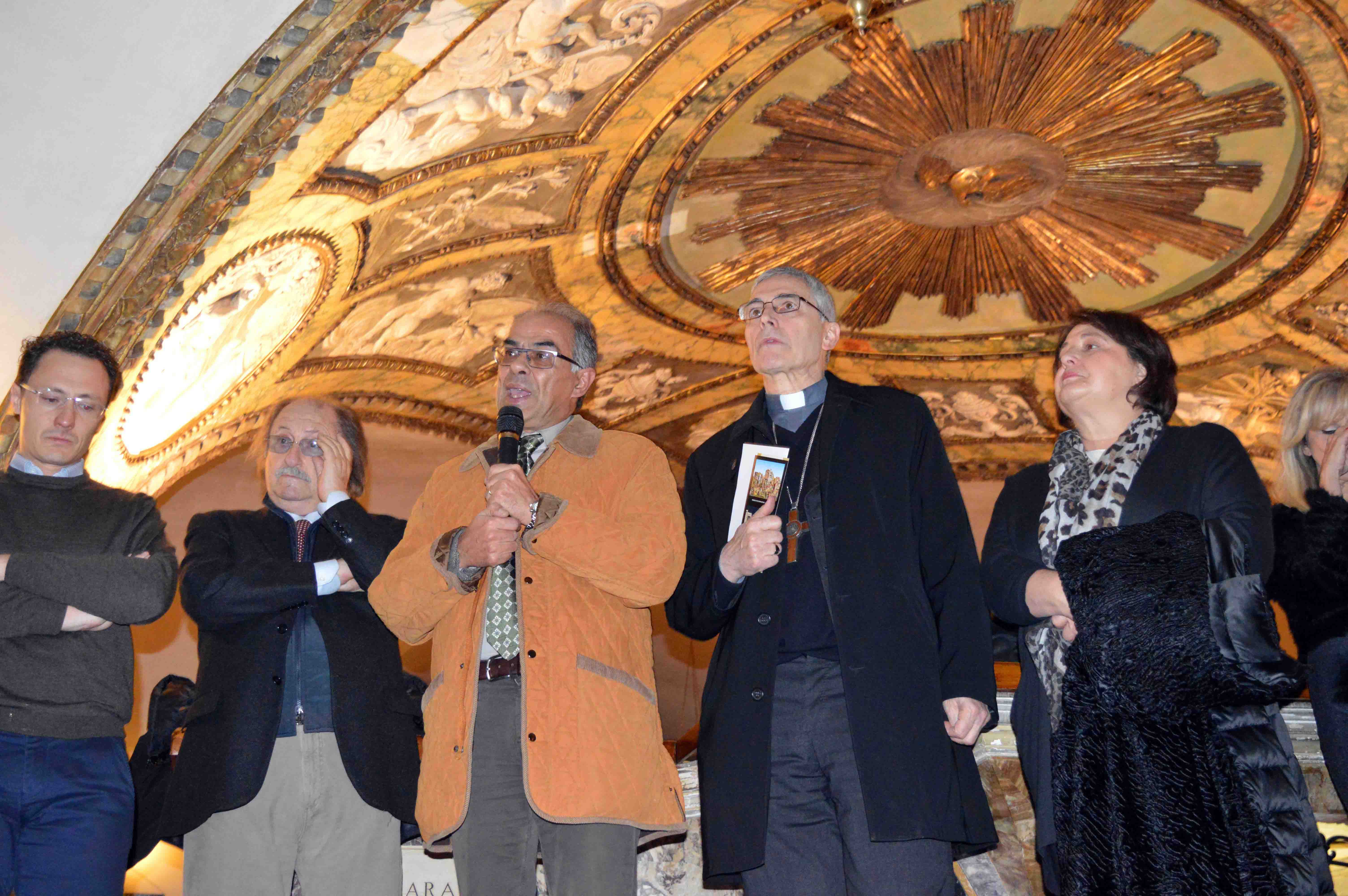 “Da oggi l’Associazione Amici del Presepe di Città di Castello prende il nome di Gualtiero Angelini”. E’ la sorpresa promessa da tempo che è stata svelata dal presidente Donatella Antinori e da Claudio Conti nella cerimonia di inaugurazione della XVI Mostra Internazionale di Arte Presepiale, che si è tenuta nella cripta della Basilica Cattedrale di Città di Castello. “Crediamo sia il meritato tributo alla passione e all’esempio che ci ha trasmesso Gualtiero – hanno dichiarato Antinori e Conti – il modo in cui tutti i membri della nostra associazione hanno sentito spontaneamente di ricordarlo ed esprimere la propria riconoscenza per aver permesso a tutti noi di poter dare libera espressione alla creatività che prende forma ogni anno nel lavoro per la mostra e nei presepi che vengono realizzati per questo appuntamento speciale”. Il ricordo della figura e della testimonianza umana di Angelini ha unito gli interventi di tutti i partecipanti all’inaugurazione della mostra, alla quale ha dato la propria benedizione il vescovo della Diocesi di Città di Castello monsignor Domenico Cancian. “Arte e fede si collegano in maniera davvero bella in questa esposizione – ha detto monsignor Cancian – che invita a riflettere sul significato del presepe, dove non si racconta una favola, ma si indica la strada di Gesù, fatta di valori come l’umiltà, la fratellanza, la povertà e l’amore”. “Nell’anno del Giubileo della Misericordia – ha puntualizzato il vescovo – anche attraverso i presepi di questa mostra, collocati nel fulcro delle celebrazioni che toccheranno Città di Castello, può arrivare un messaggio di speranza in un mondo di pace che ci spinga a superare paura e incertezze”. L’assessore alla Cultura della Regione dell’Umbria Fernanda Cecchini ha portato il saluto della giunta regionale, sottolineando “come la mostra permetta di rinnovare una tradizione del presepe che è un segno della nostra identità, tanto più forte nell’Umbria dove San Francesco fu il primo ideatore della rappresentazione della natività e c’è un forte legame ideale con il messaggio di amore e di umiltà di cui sono portatrici queste creazioni artigianali”. “Questo evento, che è uno dei più importanti in Italia – ha aggiunto Cecchini - è lo specchio della passione del suo ideatore, cui tante persone dell’Associazione danno continuità con un impegno che come Regione apprezziamo e sosteniamo con entusiasmo”. A ricordare Angelini come “amico e instancabile promotore di tante iniziative di successo” è stato il sindaco Luciano Bacchetta. “Grazie alla Mostra Gualtiero è ancora in mezzo a noi - ha dichiarato il sindaco – con l’empatia, la capacità di dialogare, tessere relazioni e incontrarsi che è l’eredità che ha lasciato alla mostra ed è anche il messaggio più profondo del presepe”. “Come amministrazione siamo molto soddisfatti del coraggio e della determinazione con cui l’Associazione Amici del Presepe di Città di Castello, guidata dalla nuova presidente Donatella Antinori, ha riannodato le fila del suo lavoro e ha allestito un’edizione di grande qualità, che conferma la mostra di Città di Castello come uno dei principali appuntamenti per l’arte presepiale del Paese”. “Di questo risultato, mai scontato in tempi difficili per la cultura – ha concluso Bacchetta – siamo particolarmente orgogliosi, perché rappresenta un contributo importantissimo a dare un’immagine positiva della nostra città e farla conoscere alle tantissime persone che la visitano”. “E’ importante sottolineare come con grande impegno e passione i tanti componenti dell’Associazione abbiamo saputo moltiplicare le energie per dare vita a questa edizione della Mostra e rendere il giusto tributo al ricordo del suo ideatore e animatore – ha evidenziato il vice sindaco e assessore alla Cultura Michele Bettarelli – mantenendo intatti il valore e il rilievo nazionale che conferiscono all’esposizione i pregiati presepi della tradizione italiana, con in più la capacità di essere al passo con i tempi, come dimostra il collegamento ad Expo 2015 attraverso le opere ispirate al tema dell’alimentazione”. Dopo la visita ai presepi in esposizione, autorità e cittadini presenti all’inaugurazione hanno seguito il concerto della Corale Marietta Alboni nel Salone Gotico del Museo del Duomo, che ha completato la cerimonia pubblica con cui ha preso il via la manifestazione. Grazie al contributo dei commercianti tifernati, la cerimonia ha visto anche la partecipazione di due zampognari campani, che nel pomeriggio hanno fatto visita agli anziani delle Opere Pie Riunite Muzi Betti.