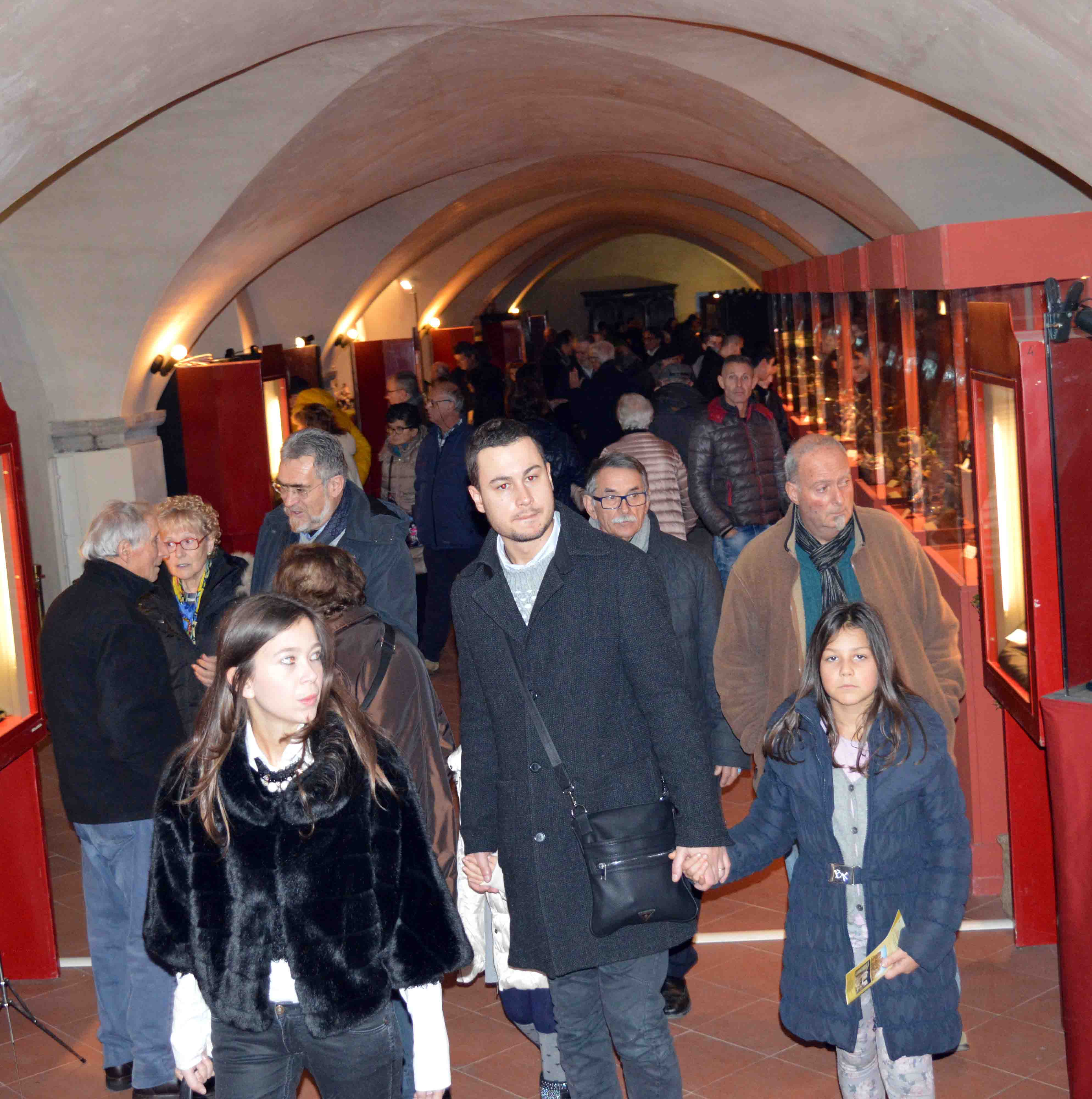 L’evento. La XVI Mostra Internazionale di Arte Presepiale si svolge dal 5 dicembre 2015 al 6 gennaio 2016 nella cripta della Basilica Cattedrale di Città di Castello, fulcro di un evento che prevede anche iniziative collaterali lungo un percorso espositivo cittadino nei luoghi più significativi del centro storico. Partecipano circa 190 espositori provenienti da tutta Italia, con la presenza dei più grandi artisti delle scuole di Napoli, Bergamo, Lecce, Palermo e dell’Umbria e di numerose associazioni da Napoli, Avellino, Aprilia, Penna in Teverina. La manifestazione propone alcune raccolte private, provenienti dalla Toscana e dalla Campania, e opere dei grandi presepisti italiani Raccagni, Casillo, Bonechi (con due pale in terracotta policroma), Agnini, Pecorari, Dini. I visitatori potranno ammirare 60 presepi napoletani, 50 presepi umbri, 20 creazioni di artisti di Città di Castello, opere uniche realizzate appositamente per la mostra, come il presepe napoletano di tre metri per due metri dell'artista Luigi Baia di Napoli, opere esposte per la prima volta in pubblico, come il diorama del maestro Guido Raccagni, dell’Associazione Amici del Presepe di Bergamo, realizzato appositamente per il Congresso della Federazione Internazionale delle Associazioni Presepistiche del 2016, e il presepe di un metro e mezzo di altezza del maestro Marco Minchiati, che rende omaggio alla tradizione della ceramica di Deruta. Una sezione speciale è dedicata al tema “L’alimentazione nel presepe nell’anno dell’Expo di Milano”, con un’opera realizzata esclusivamente per l'evento da alcuni artisti tifernati,con la collezione Presepi dal Mondo di San Giovanni Val d'Amo e Raffaele Troncone di Sorrento. A ricordare Gualtiero Angelini sono i presepi della sua collezione privata, che sono stati selezionati e messi a disposizione della mostra dai familiari. Una sezione dell’esposizione è dedicata a una prestigiosa raccolta di antichi santini sul tema del Natale e altre sezioni sono dedicate le scuole, gli asili, alle associazioni sociali e agli hobbisti. La mostra allestita nella cripta della Basilica Cattedrale può essere visitata, acquistando un biglietto al costo di 2,50 euro, il sabato e i giorni festivi dalle 9.30 alle 13.00 e dalle 15.30 alle 20.00 e nei giorni feriali dalle 10.30 alle 12.30 e dalle 16.00 alle 19.30. L’ingresso è gratuito per i bambini fino a 12 anni di età. Il circuito cittadino permette ai visitatori della mostra di ammirare le pregevoli creazioni dei maestri presepisti in 11 ambientazioni suggestive del centro storico, oltre all’allestimento della cripta della Basilica Cattedrale. Alla Pinacoteca comunale è possibile ammirare il presepe settecentesco su teca dipinta a mano in stile napoletano dal titolo Adorazione dei Pastori della Bottega della Robbia, che in passato era ospitato all’interno del vecchio ospedale cittadino. La chiesa del Buon Consiglio ospita il grande presepe in cartapesta opera di Francesco Invidia e presso la sede della Tela Umbra sono allestiti il presepe settecentesco dei baroni Franchetti completamente restaurato e l’opera dal titolo “Natale a Villa Montesca” di Ezio Tofani. Al Loggiato Gildoni è esposta la collezione di Silvio Bambini e alla chiesa di San Giuseppe è collocato il presepe tradizionale umbro realizzato con la tecnica dei diorami. Lungo corso Vittorio Emanuele si trova il presepe del Rione Mattonata e anche il campanile cilindrico ospita una rappresentazione della natività. Del circuito cittadino fanno parte anche gli allestimenti del Museo del Duomo e della chiesa di Santa Maria Maggiore, mentre all’esterno della cinta muraria del centro storico è possibile ammirare il presepe in stile napoletano di Claudio Conti, che si trova nella chiesa di San Martin d’Upò, e il presepe vivente di Volterranno, con l’esposizione delle opere in stile siciliano di Ivano Vecchio.