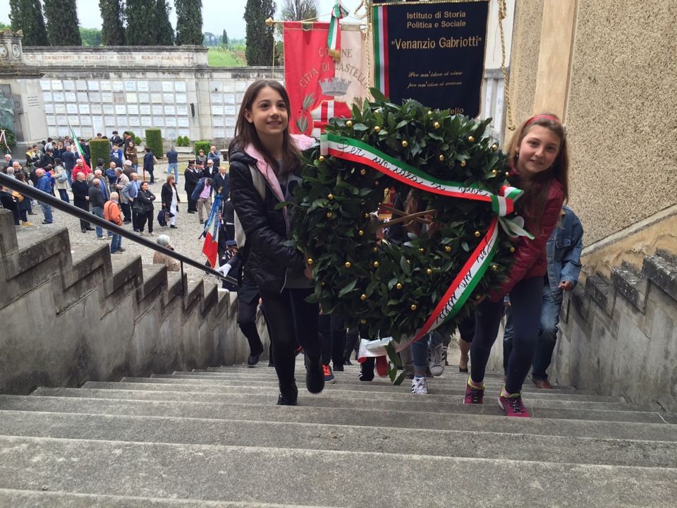 Gemellaggio tra Città di Castello e Giustino nel nome di Venanzio Gabriotti: c’è qualcosa, anzi qualcuno a unire due luoghi apparentemente senza punti di contatto ed è la figura di Venanzio Gabriotti, martire della Resistenza, che come ufficiale della Prima Guerra Mondiale fu di stanza nella provincia di Trento, allora territorio austroungarico, a Giustino. Nonostante fosse a capo di una truppa dell’esercito di occupazione, aiutò la popolazione allo stremo, allestendo un refettorio presso la scuola per sfamare i bambini e provvedendo anche alle donne e agli anziani. Un gesto di generosità dunque è il trade d’union tra le due città e oggi, nel 72° anniversario della fucilazione di Venanzio Gabriotti, il gemellaggio tra Città di Castello e Giustino, in nome dell’Italia unita e democratica, è stato sancito dalla presenza, per la prima volta, di una delegazione del Comune di Giustino e della scuola elementare intestata a Gabriotti. La giornata è cominciata, come vuole la tradizione, presso la Cappella dei volontari della libertà, nel Famedio del Cimitero monumentale, con la messa officiata da don Giuseppe Tanzi e la partecipazione dei bambini di Giustino e del sindaco del Comune. Quindi la cerimonia si è spostata presso il Greto della Scatorbia dove Gabriotti su fucilato da un plotone di fascisti all’alba del 9 maggio 1944. Sulle note di “Bella ciao”, intonata dai bambini della scuola di Cerbara del Secondo Circolo didattico, è stata deposta una corona al monumento che ricorda il sacrificio e un alunno ha ricordato le ragioni per cui Venanzio Gabriotti, dopo 72 anni, è ancora un esempio di generosità, altruismo e amore per la patria. Il passaggio per l’omaggio floreale presso l’aiuola di Viale Vittorio Veneto, la casa dove Gabriotti visse in via San Florido e la torre civica di Piazza Gabriotti hanno punteggiato l’itineraio, fino alla tappa finale nella Sala del Consiglio comunale di Città di Castello, dove i bambini del Primo Circolo San Filippo, che hanno ospitato la delegazione trentina, hanno introdotto con canti la premiazione del concorso dell’Istituto di storia politica e sociale “Venanzio Gabriotti” che quest’anno verteva su “I giovani di tanti anni fa”. Premiate ex aequo per la classe terza della scuola primaria La Tina, per la primaria di Morra Badia Petroia Istituto comprensivo Burri, la primaria S. Leo Bastia classi III , IV e V, la primaria S. Filippo classe VA e VB, il Liceo o Plinio il Giovane con Giosuè Banconi della classe II C, la classe II A dell’Istituto Franchetti Salviani, la classe V del Liceo S. Francesco di Sales, l’Oratorio S. Giovanni Bosco. “Una menzione speciale” sottolinea Alvaro Tacchini, presidente dell’Istituto, promotore con Amministrazione comunale ed Anpi della manifestazione, va alla classe II della scuola Pieve delle Rose e ai 4 studenti del Centro di formazione Bufalini che hanno svolto il tema con particolare impegno e approfondimento”. (Allegate foto)