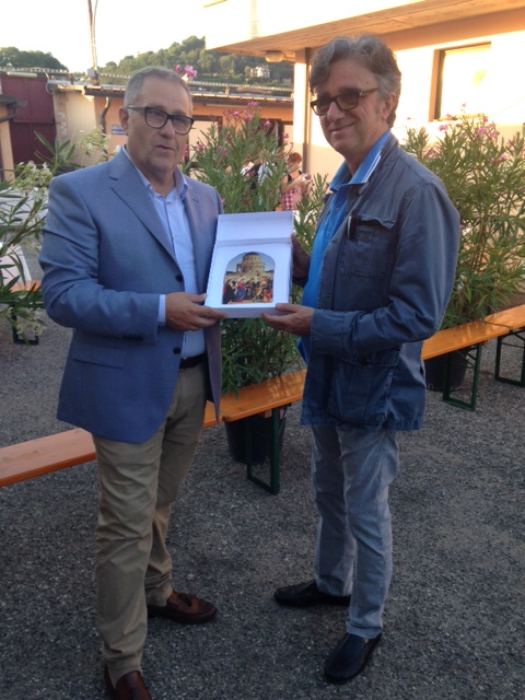 Una canzone dedicata a Gianluigi Buffon, il portierone della Juventus e della Nazionale, la dedica continua a Marco Pantani e la promessa a mamma “Tonina” di portare sempre nei concerti l’inno al “Pirata”, la passione per l’arte contemporanea del grande maestro tifernate Alberto Burri che ha condiviso anche qualche anno fa con Lucio Dalla durante una visita ai Musei a Città di Castello. Gaetano Curreri, lader degli “Stadio” a margine del riuscito concerto allo stadio “Casini” di Trestina, nell’unica data umbra del tour “Miss Nostalgia” (quindicesimo album che contiene, tra gli altri brani di grande successo come “un giorno mi dirai”, vincitore dell’edizione 2016 del Festival di Sanremo) reso possibile grazie all’amicizia con il noto clarinettista Fabio Battistelli, originario di Città di Castello e all’organizzazione dello Sporting Club Trestina e del suo presidente, Leonardo Bambini, ha accettato di parlare a ruota libera di progetti, musica, sport e tanto altro. Per la terza volta a Città di Castello nel giro di pochi anni, ormai Curreri e la sua band sono di casa da queste parti. “E’ un luogo che mi ricorda la rinascita dopo un periodo della mia via vita difficile. Torno volentieri anche per questo – attacca subito Curreri, con la solita simpatia e disponibilità. “Dopo la vittoria di Sanremo siamo diventati come Miss Italia ci vogliono un po’ tutti, c’è grande attenzione e affetto attorno a noi. E’ un bel momento.” Un album. “Miss Nostalgia”, che contiene brani di grande successo e soprese inedite come l’incursione di Vasco Rossi in “tutti contro tutti”, un marchio indelebile di un amico “icona” della musica italiana? “Io e Vasco siamo in continua incursione, amici da una vita e accomunati dalla voglia di far bene il nostro lavoro e di trasmetterlo al pubblico. Cerchiamo con la musica di trovare significati e sentimenti da condividere con tutti”. Il sindaco di Città di Castello, Luciano Bacchetta grande estimatore degli Stadio ha chiesto prima del concerto se cantavi “Mi alzo sui pedali” l’inno a Marco Pantani divenuta proprio la canzone degli sportivi, dei tanti appassionati di ciclismo che anche da queste parti al confine con la toscana e la romagna hanno seguito sempre con trasporto e partecipazione le imprese del “pirata”: “l’ho promesso a mamma Tonina. Finchè salirò sul palco ricorderò sempre due persone, Lucio Dalla, l’artigiano della musica dove io umilmente sono andato a bottega e Marco Pantani una persona che ho incontrato poche volte a causa dei suoi impegni in giro per le strade di tutto il mondo. Però nelle poche volte che ho avuto occasione di parlarci di scambiare con lui qualche battuta ho capito che era un grande uomo, il simbolo della romagna, della mia terra, dello sport, un po’ bistrattato dalle vicende che conoscete. La verità grazie a Dio però sta venendo fuori e la storia dirà, ne sono sicuro, che Marco Pantani è stato un grande ciclista ma anche un grande uomo, onesto”. A proposito di ciclismo e passione per le due ruote. A Città di Castello spesso si fa vedere Jovanotti in sella alla sua “Pinarello” con casco in testa, che da Cortona viene a trovare lo zio Nelso, 82 anni ben portati, campione degli anni 50-60’: chissà magari in futuro un incontro inedito in sella ad una bici con Lorenzo? “Lui è un gran ciclista. Lui lo fa bene e si allena. Io ho fatto un sacco di sport, la mia passione è la pallacanestro. Se non avessi fatto il musicista forse avrei provato a giocare a basket. Adesso sono uno sportivo da poltrona”. Qualche giorno fa a Gaetano Curreri, vista la sua nota passione per la Fiorentina, gli hanno regalato una maglia “viola” col numero 10. A Trestina, il presidente della squadra, Leonardo Bambini, gli ha consegnato una maglia di colore verde, ma in realtà bianconera quella ufficiale, come la Juventus: “Questo mi crea un po’ di sconvolgimento. Sto scherzando ovviamente. Ho tanti amici della Juventus. La mia più grande amica è Mirella Scirea. In questo momento sto scrivendo una canzone che probabilmente sarà dedicata a Buffon perché ho ricevuto in dono da Roberto Roversi, alcune poesie ed una di queste si chiama “il portiere”. All’inizio cercavo una figura per poi ispirarmi per una canzone e ancora non l’avevo identificata in lui. Poi dopo gli europei dopo la stagione e la carriera che lui ha fatto ho scoperto che potrebbe essere dedicata proprio a Buffon quella poesia che inizia così:”sono il guardiano del bosco tengo a bada i leoni”, credo che sia proprio lui la figura di un grande domatore di leoni. Lui l’ha sempre fatto. A breve credo che verrà fuori una canzone meravigliosa da quella poesia di Roversi che merita una musica altrettanto bella.” Dalla musica, allo sport all’arte contemporanea di Alberto Burri, un’altra passione che qualche tempo Curreri ha condiviso a Città di Castello con l’amico musicista Fabio Battistelli nel corso di una visita ai musei Burri: “si con Fabio, ma prima ancora c’ero andato assieme a Lucio Dalla. Era la seconda volta. Lucio Dalla era un grande estimatore del maestro Burri, aveva una grande cultura e conoscenza dell’arte, era quasi un talent-scout. Mi ricordo che eravamo in macchina insieme, di ritorno da un concerto e giunti all’altezza di Città di Castello, Lucio mi chiese di andare a visitare i musei Burri. Quella fu la prima volta poi successivamente andai con Fabio Battistelli ed ancora una volta rimasi estasiato da tanta bellezza.” Prima di salire sul palcoscenico dello Stadio “Casini” di Trestina, Gaetano Curreri ha ricevuto in dono dal comune di Città di Castello, una riproduzione su affresco dello “Sposalizio della Vergine” di Raffaello, custodito presso l’accademia di Brera a Milano ma proveniente dalla chiesa di San Francesco a Città di Castello (realizzato dalla Bottega Artigiana Tifernate di Stefano Lazzari) consegnata dall’asses