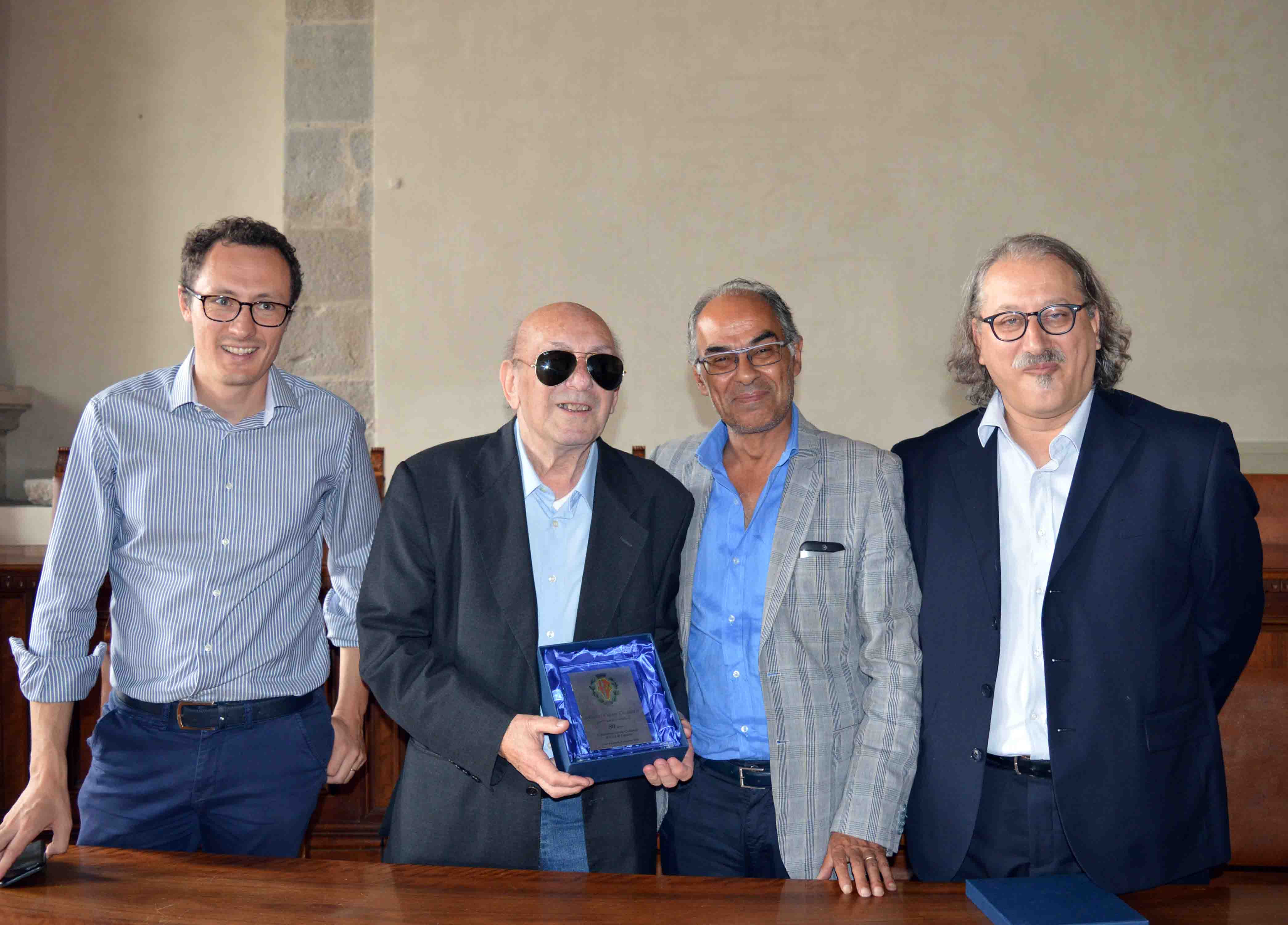 “Come amministrazione comunale abbiamo ritenuto doveroso tributare il meritato riconoscimento a un uomo che ama profondamente Città di Castello e ha dato un grande contributo alla nostra comunità, da un lato come presidente della Società Rionale Prato con la promozione, tra le altre iniziative, di una delle manifestazioni più significative del panorama locale come le Giornate dell’Artigianato Storico, dall’altro per il suo impegno costante per la collettività, specie sul versante sociale”. Il sindaco Luciano Bacchetta ha salutato così Giulio Cesare Cesarotti nel consegnargli la targa ricordo dell’amministrazione comunale per i suoi 80 anni di età durante la cerimonia in Comune alla quale hanno partecipato il vice sindaco Michele Bettarelli, l’amico Gaspare Pierangeli, la moglie Giuliana e i familiari. “Di Giulio Cesare ho sempre apprezzato la schiettezza, unita alla capacità di rendersi sempre disponibile quando si tratta di fare qualcosa per il rione nel quale vive e per la città”, ha commentato Bettarelli, mentre Pierangeli ha messo in evidenza “il legame profondo con una persona che per me è sempre stato padre e amico ed è un esempio per l’idea di comunità e di solidarietà che ha sempre propugnato e difeso”. “Per me è una grande soddisfazione ricevere questo riconoscimento e ringrazio l’amministrazione comunale per l’onore che mi è stato concesso”, ha dichiarato Cesarotti, che ha ripercorso insieme ai presenti i ricordi di momenti trascorsi insieme e alcune delle pagine scritte da presidente della Società Rionale Prato.
