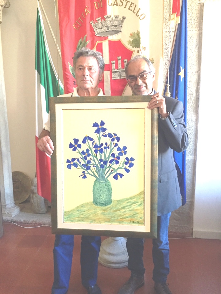 Il pittore contadino Giuseppe Boriosi ha donato al comune di Città di Castello l’opera “I gigli”, consegnandola stamattina (martedì 20 settembre) al sindaco Luciano Bacchetta, che accogliendolo nel suo ufficio, ha sottolineato “il grande piacere di ricevere un quadro ispirato alla nostra storia rurale e dipinto da uno degli artisti tifernati dilettanti più apprezzati anche all’esterno”. Così il sindaco si è espresso nei confronti di Giuseppe Boriosi, che si è scoperto pittore per caso “quando” ricorda “ormai adulto, nei momenti di tempo libero e per mantenere alta l’attenzione durante il lavoro notturno, iniziai ad intagliare legno e a dipingere su tela di iuta”. Per il figlio Fausto la prima opera in assoluto è stato il muso di un animale intagliato nella radica di una quercia ma Giuseppe non sa trovare un “punto zero” alla sua passione artistica. “In 44 anni circa ho realizzato oltre 250 quadri”, il cui soggetto prevalente è la vita rurale, la sua durezza e la sua spensieratezza, i tipi umani e le stagioni, il paesaggio e l’irreale che a volte irrompe a sconvolgere il placido ciclo della natura. “Ho voluto regalare un quadro al mio comune, perché sono affezionato alla mia terra” aggiunge, e dopo tanti riconoscimenti importanti in Italia e all’estero, il sogno sarebbe organizzare in città una nuova mostra”, che il sindaco si è impegnato a programmare nell’ambito del calendario delle iniziative culturali cittadine. Nel frattempo per conoscere l’arte di Giuseppe Boriosi è possibile visitare l’esposizione permanente, 76 opere che coprono la produzione di quasi mezzo secolo, allestite a Valdipetrina nel casale di famiglia, dove Giuseppe Boriosi ha il suo laboratorio e dove incontra i sempre più numerosi estimatori della sua arte. Info: 3473795383/3483343218.