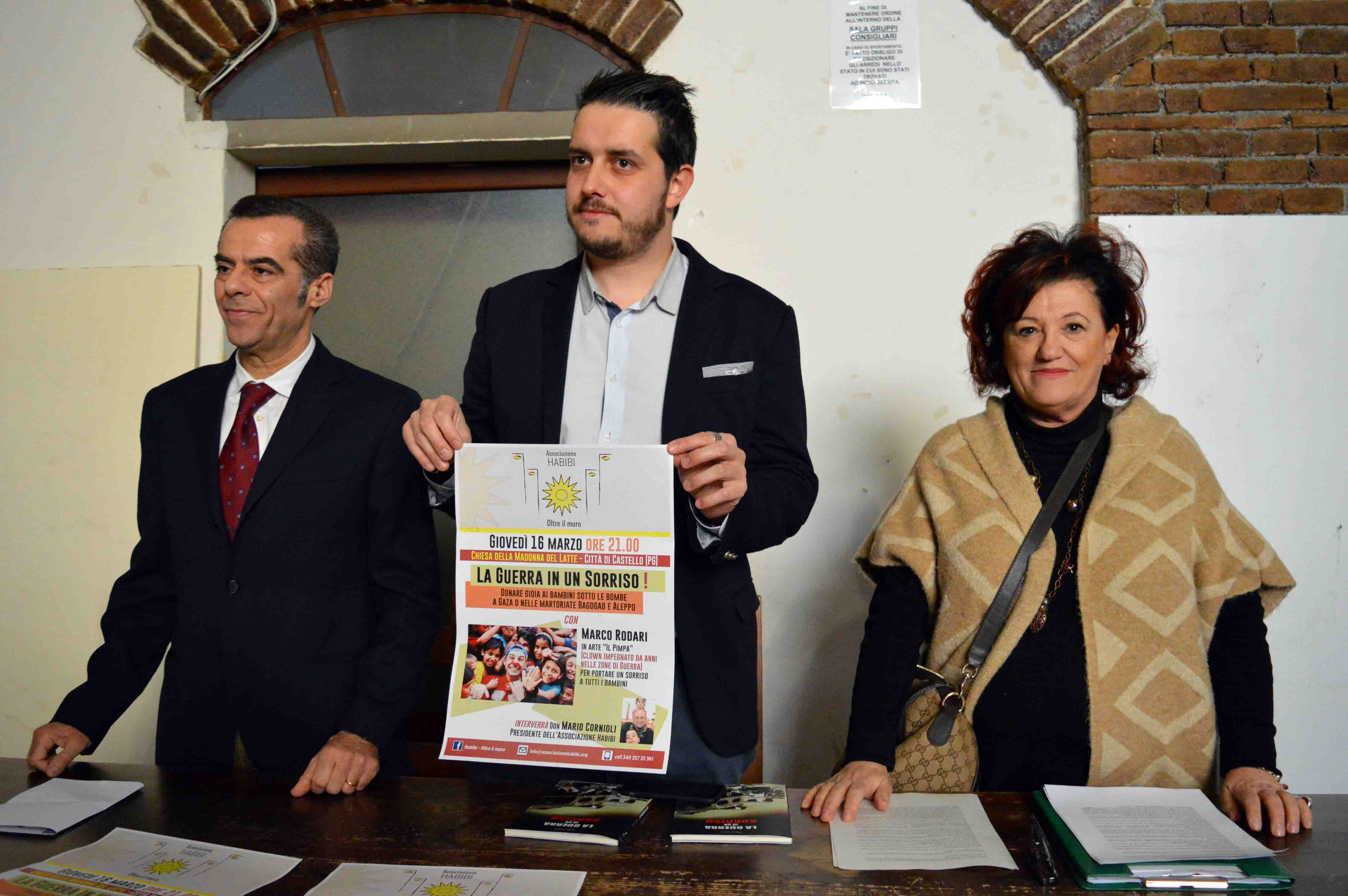 “Attraverso la testimonianza di chi aiuta i bambini a sorridere e affrontare drammi terribili come la perdita degli affetti, le mutilazioni e le barbarie della guerra, l’associazione ‘Habibi’ ci darà un’opportunità unica di soffermarci in una riflessione profonda e non scontata sulla realtà dei conflitti in Medio Oriente, sui quali forse sappiamo meno di quello che la costante esposizione mediatica ci fa percepire”. L’assessore al Sociale Luciana Bassini ha presentato così nella conferenza stampa di stamattina la nuova iniziativa a Città di Castello dell’associazione “Habibi”, che giovedì 16 marzo alle ore 21.00, presso la Chiesa della Madonna del Latte a Città di Castello, ha promosso una serata di riflessione sul Medio Oriente con la partecipazione di Marco Rodari, in arte “Claun il Pimpa” (scritto alla maniera di come si pronuncia, ndr), che racconterà l’esperienza dell’Associazione “Per Far Sorridere il Cielo” con cui porta un sorriso ai bambini che vivono tra i drammi e le macerie della guerra. “Con Marco Rodari continuiamo in una serie di appuntamenti con i quali vogliamo sensibilizzare le comunità della vallata sulla realtà del Medio Oriente, attraverso le testimonianze che possono aumentare la nostra consapevolezza e portarci vicino a chi, come il nostro presidente don Mario Cornioli, da anni è impegnato direttamente per aiutare le popolazioni che vivono in questa terra”, ha spiegato il vice presidente di “Habibi” Gaetano Zucchini, che ha evidenziato come l’attività dell’associazione si caratterizzi per iniziative di volontariato e solidarietà a sostegno della casa famiglia per bambini disabili “Hogar Nino Dios” di Betlemme, gestita dalle Suore del Verbo Incarnato, dove vivono 30 bambini abbandonati o con una difficile situazione familiare, e per la promozione di opportunità culturali finalizzate alla conoscenza della Terra Santa e alla crescita di una cultura della pace. “Marco Rodari è un clown che da circa otto anni passa dagli ospedali e dalle scuole italiane a quelli del Medio Oriente, cercando di portare, attraverso il sorriso, una speranza a bambini di zone come Gaza, dove è stato durante tutto il periodo della guerra e ora ritorna tre mesi ogni anno, Alessandria d'Egitto, Baghdad, Erbil e Aleppo”, ha sottolineato il segretario di Habibi Francesco Del Siena, che ha anticipato come l’ospite presenterà nel corso della serata anche il suo libro dal titolo “La Guerra in un Sorriso”.