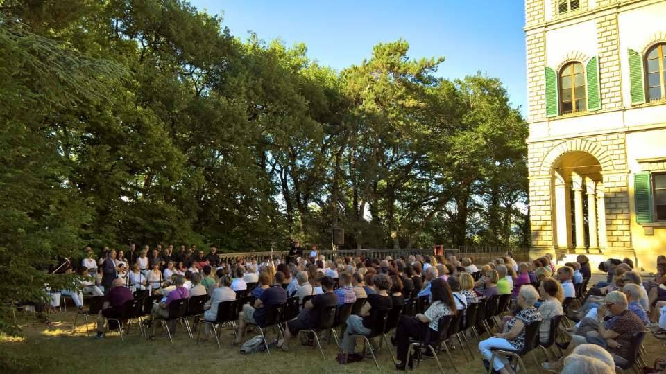 Oltre 300 persone hanno voluto essere presenti al debutto del Centenario Franchettiano, che è stato anche l’esordio del parco di Villa Montesca con lo spettacolo “Leopoldo Franchetti, un Barone fuori dagli schemi”, a cura della corale M. Alboni, diretta dal maestro Marcello Marini, e promosso dalla Fondazione Villa Montesca e dal Comune di Città di Castello con il patrocinio della Regione dell’Umbria. Protagonista tutelare dell’iniziativa il barone Leopoldo Franchetti, di cui, come è noto, dal 4 novembre prossimo verranno celebrati i cento anni dalla morte, e protagonista reale la corale M. Alboni, che ieri ha ricostruito con parole e musica il profilo del personaggio: le origini e la formazione nella natia Livorno, la questione meridionale, Il matrimonio con Alice Hallgarten, le scuole rurali di Villa Montesca e Rovigliano, la disfatta di Caporetto e la morte del Barone Franchetti. I testi, scritti per l’occasione da Fabrizio Boldrini, sono stati proclamati con vera maestria dall’attore Mario Pietramala, le musiche originali, alcune armonizzate da Marcello Marini, sono state eseguite da Alessandra Benedetti soprano, Maurizio Perugini tenore, Leonora Baldelli pianista, dai piccoli coristi dell’Alboni Youth Choir diretti da Anna Marini e dalla Corale Marietta Alboni sotto la direzione musicale di Marcello Marini. “Molto soddisfatto della risposta dei concittadini, che sono intervenuti massicciamente ed hanno apprezzato lo spettacolo” ha commentato il vicesindaco e assessore alla Cultura Michele Bettarelli, per il quale “il Centenario sarà un altro momento di coinvolgimento popolare, perché parliamo di figure che segneranno lo sviluppo della città e suscitano un interesse abbastanza diffuso. Sulle loro vite, movimentate e inserite nell’ambiente europeo, c’è tanta materia per riflettere ed elaborare culturalmente. Il concerto della corale ha, come suo costume, mantenuto e superato le aspettative grazie anche alla scelta del Parco”.