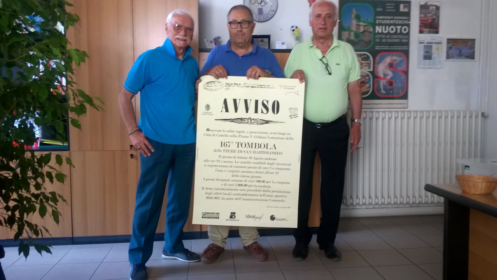 Beneficenza e sport saranno gli ingredienti dell’appuntamento con la tradizionale Tombola delle Fiere di San Bartolomeo organizzata dall’Associazione Cardiopatici Altotevere “Amici del Cuore” con il patrocinio del Comune e del Coni, che per la 167esima edizione si terrà in piazza Matteotti domani, sabato 26 agosto. Il programma inizierà alle ore 20.45 con la sfilata di 53 tra atleti e società di Città di Castello che nella stagione 2016-2017 si sono distinti per particolari risultati agonistici, cui seguirà, dalle ore 22.30, l’estrazione dei numeri della tombola. “Il coinvolgimento degli sportivi della città è una piacevole consuetudine che ripetiamo quest’anno per sottolineare la vitalità, ma soprattutto gli straordinari traguardi che atleti e società tifernati sono capaci di raggiungere in tantissime discipline”, sottolinea l’assessore allo Sport Massimo Massetti, che evidenzia “il patrocinio del comitato umbro del Coni, che con il presidente Domenico Ignozza è sempre vicino a Città di Castello e al suo movimento sportivo”. Con la presentazione della serata di Claudio Tomassucci e la partecipazione, oltre che dell’assessore Massetti, dei componenti del consiglio direttivo degli “Amici del Cuore” guidato dal presidente Antonio Fiorucci e del presidente di Polisport Angelo Monaldi, la serata vedrà la consegna ad atleti e società di riconoscimenti per l’attività svolta nell’ultima stagione, in una parata dello sport che darà modo a chi ottiene importanti risultati nella propria disciplina di farsi conoscere e ricevere l’applauso degli appassionati. “Grazie agli Amici del Cuore abbiamo la possibilità di tributare l’apprezzamento e il riconoscimento dell’amministrazione comunale e della città a persone che si impegnano con serietà e passione, molto spesso lontano dalla ribalta della notorietà – osserva Massetti - nel contesto di un’iniziativa che, attraverso la sua finalità benefica, permette di promuovere lo sport ma anche la salute e tiene viva una importante tradizione della comunità tifernate”. Il ricavato della vendita delle cartelle, che sarà possibile acquistare fino a 10 minuti dall’inizio dell’estrazione direttamente in piazza Matteotti o nei punti vendita cittadini aderenti all’iniziativa, sarà devoluto al potenziamento dei servizi cardiologici dell’ospedale di Città di Castello. La Tombola delle Fiere di San Bartolomeo mette in palio 500 euro per la cinquina e 2 mila euro per la Tombola, con l’estrazione che inizierà alle ore 22.30 con la consueta partecipazione di Gianni Ottaviani. “Viste le importanti finalità benefiche che la caratterizzano, contiamo su una grande partecipazione alla serata dei tifernati, che dimostrano ogni anno il proprio attaccamento a una tradizione che risale al 1850 e che è per noi motivo di vanto poter portare avanti grazie al supporto dell’amministrazione comunale”, sottolinea Fiorucci, che ricorda come il legame con le origini della manifestazione sia ancora sottolineato dall’utilizzo del cartellone e dell’urna per l’estrazione dei numeri risalenti all’epoca.