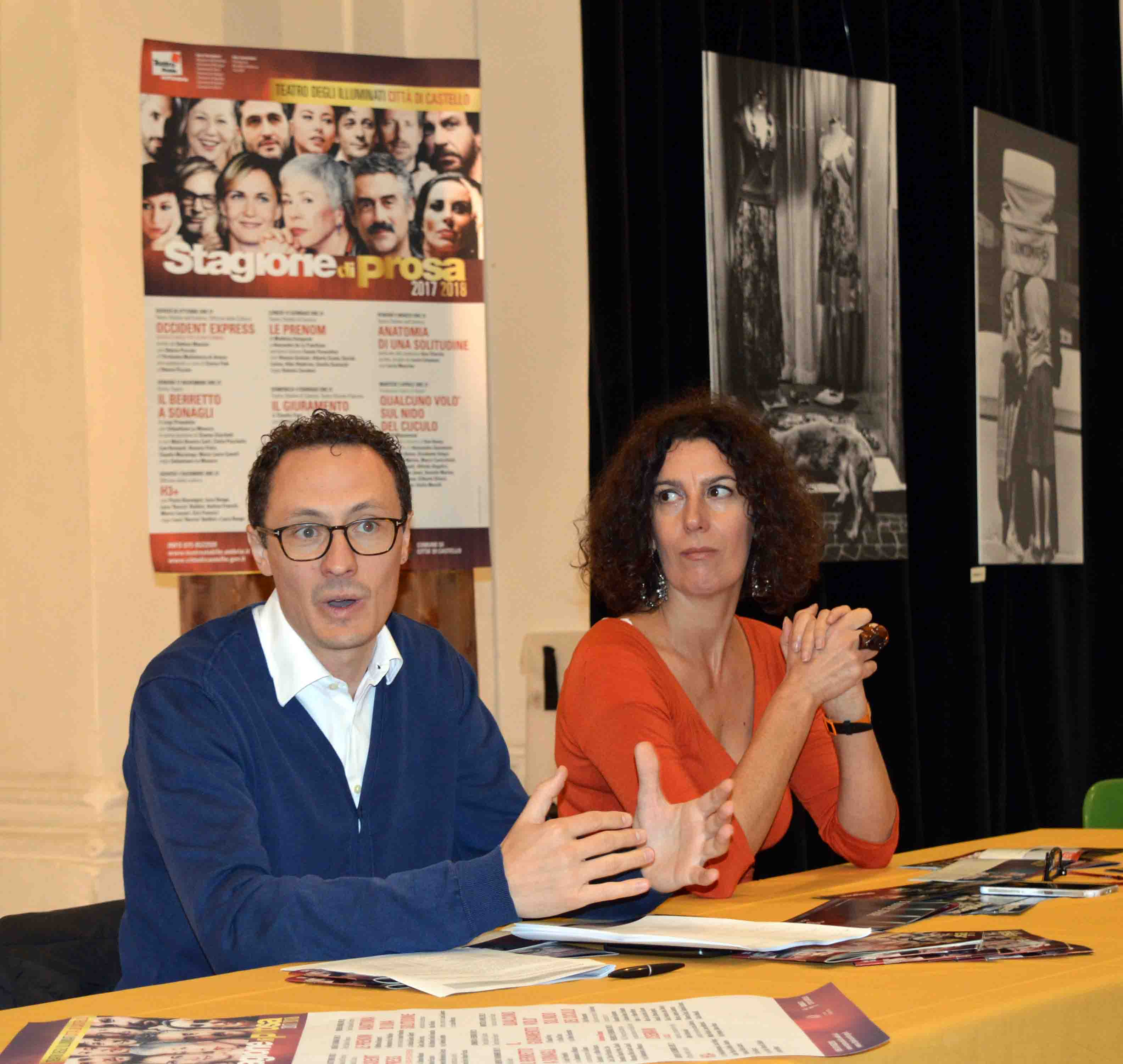 Nel merito del cartellone è entrata Bianca Maria Ragni, responsabile del circuito teatrale del Teatro Stabile dell’Umbria: “Una stagione tutta da gustare per la varietà e la qualità delle produzioni, che portano nomi eccellenti” ha detto, scorrendo in rassegna gli 8 spettacoli. Il sipario si apre con la prima esclusiva, una produzione del Teatro Stabile dell’Umbria, Occidente Express, scritto da Stefano Massini e interpretato da Ottavia Piccolo, una costante della Stagione di prosa tifernate, giovedì 26 ottobre. Sul palco con l’attrice l’Orchestra multietnica di Arezzo per raccontare in musica e parole il viaggio lungo 5000 chilometri di un’anziana e della nipote di quattro anni in fuga da Mosul. Venerdì 17 novembre al Teatro degli Illuminati, in occasione dei 150 anni di Luigi Pirandello, un classico del teatro italiano, Il berretto a sonagli, nell’allestimento diretto e interpretato da Sebastiano Lo Monaco. Con una compagnia di ottimi comprimari impegnati nelle previste macchiette (spiccano Maria Rosa Carli e Gianna Giachetti, questa in una buffa caratterizzazione), l’attore-regista, nella seconda esclusiva tifernate, rende con contagioso divertimento le elucubrazioni del suo famoso, saggio e dissimulatore Ciampa. Giovedì 7 dicembre è in programma la terza esclusiva, H3+, con e di Paolo Benvegnù, “artista che vive a Città di Castello e che propone un esperimento. Da sua attività musicale si arriva alla sua poetica con un viaggio ai primordi del mondo. La musica e i testi di Benvegnù sono il filo rosso che conduce dalla terra allo spazio. Il primo appuntamento del 2018 è, lunedì 15 Gennaio, Le Prenom nella versione italiana di Fausto Paravidino, saga di quarantenni a confronto che ha meritato sei nominations al Prix Moliere, con Alessia Giuliani, Alberto Giusta Davide Lorino, Aldo Ottobrino, Gisella Szaniszlò. Domenica 4 Febbraio Il Giuramento con David Coco racconta del Fascismo, dell’Università e di quando il Rettore comunicò a Mario Carrara la data del giuramento di fedeltà al re e al duce. Lui disse di no e solo altri 11 accademici in Italia lo fecero. Ma le sue motivazioni, non politiche, rivelano un dissenso che ha radice nel concetto di umanità. Venerdì 23 Febbraio va in scena Oseman, il cielo, ispirato alla poetica delle opere di Magritte e Chagall, venerdì 9 Marzo Lucia Mascino è la protagonista di Anatomia di una solitudine, spettacolo di Lucia Calamaro dedicato alla poetessa Idea Vilariño, una delle voci più amate del Sud America. Nonostante una copiosa produzione ispirata al tema del suicidio, visse molto a lungo. Una vittoria, sempre sul filo, della vita sulla morte. Martedì 3 aprile si chiude con l’ultima esclusiva Qualcuno volò nel nido del cuculo, regia di Alessandro Gassmann con Daniele Russo e Elisabetta Valgo, una produzione Fondazione Teatro di Napoli, che ha sbancato i botteghini. Lo scrittore Maurizio de Giovanni ha rielaborato il testo di Milos Forman, trasferendo l’ambientazione all’interno dell’ospedale psichiatrico di Aversa nel 1982. Tutti gli spettacoli inizieranno alle 21.00.
