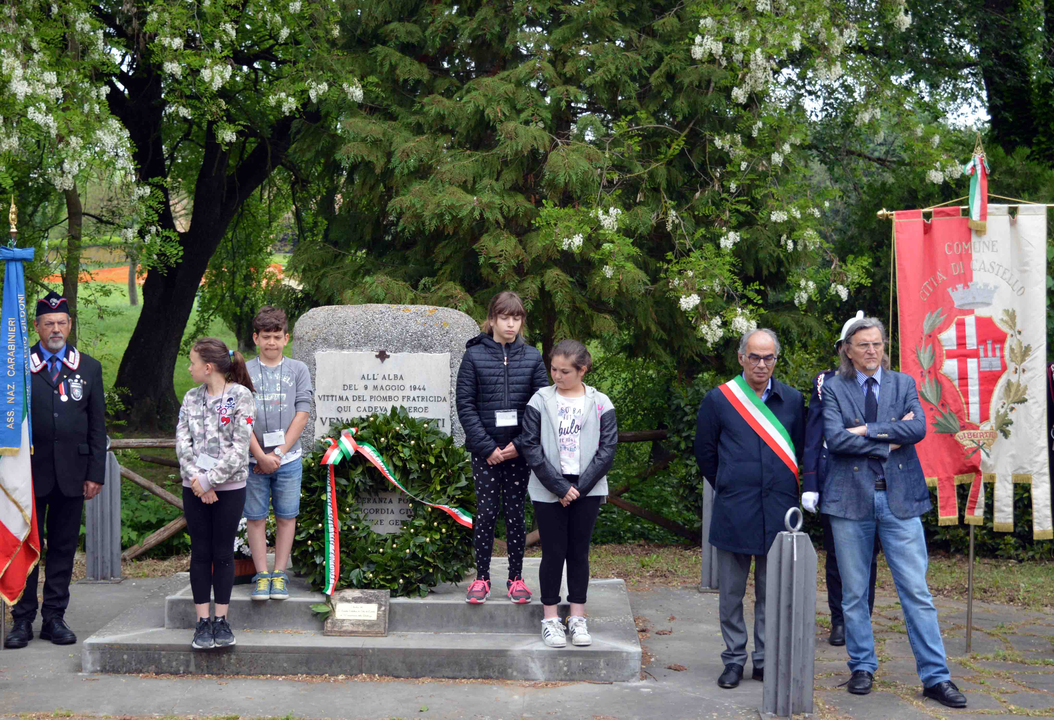 Autorità, scuole e cittadini alle celebrazioni organizzate a Città di Castello per il 74°anniversario della fucilazione di Venanzio Gabriotti, ucciso da un plotone di fascisti all’alba del 9 maggio 1944 sul greto della Scatorbia, dove ogni anni si tiene la commemorazione e da dove oggi il sindaco tifernate Luciano Bacchetta ha voluto ringraziare l’anonimo benefattore che ha restaurato a sue spese il cippo in memoria dell’eroe: “E’ un gesto che ci aiuta a trasmettere ai giovani e anche ai bambini quanto siano importanti i principi per i quali Gabriotti è morto ed altri hanno combattuto. Oggi più che mai è indispensabile far comprendere che quei valori non sono né caduti in disuso né scontati, affinché anche loro capiscano che questo paese si fonda sui principi per cui tante generazioni si sono spese. Oggi più che mai dobbiamo non indulgere nella retorica perché gli ideali di libertà, uguaglianza, tolleranza, non siano banalizzati. Ad esempio la festa della Liberazione è la Festa della Liberazione non della libertà generica. La Resistenza, nella quale ci sono stati anche episodi negativi, fu portatrice dei principi su cui si fonda la nostra repubblica”. L’iniziativa ufficiale è stata aperta dalla messa officiata da don Giuseppe Tanzi, presso il Cimitero monumentale, a cui hanno partecipato l’assessore regionale Fernanda Cecchini, il vicesindaco Michele Bettarelli, il presidente del consiglio comunale Vincenzo Tofanelli, i consiglieri comunali Vincenzo Bucci, Vittorio Massetti, gli assessori, Massimo Massetti e Rossella Cestini, il presidente dell’Istituto di storia politica e sociale Venanzio Gabriotti, Alvaro Tacchini, che ha organizzato la manifestazione con il Comune e Anpi, rappresentata dalla presidente Anna Maria Pacciarini, le forze dell’ordine e le associazioni combattentistiche. A seguire il corteo si è trasferito presso il greto di Scatorbia dove il coro degli alunni delle scuole del Secondo Circolo La Tina accompagnati dalla dirigente e dalle maestre hanno eseguito canti in tema. Domani alle 9.30 nel consiglio comunale le celebrazioni proseguiranno con la premiazione del concorso indetto per le scuole dall’Istituto di Storia Politica e Sociale “Venanzio Gabriotti” sul tema “La nascita delle nuove tecnologie ha trasformato profondamente i modi della comunicazione. Ripercorrete gli ultimi decenni dell'epoca attuale, mettendo in evidenza come nel nostro territorio sono cambiati i mezzi e i modi usati per comunicare notizie, pensieri ed emozioni”. I canti saranno eseguiti dai cori dei bambini del Primo Circolo “San Filippo”. Sabato 12 maggio alle 10.30 presso l’Officina della Lana del Centro di formazione “G.O. Bufalini” le manifestazioni si concluderanno con la presentazione del Quaderno dell’Istituto “Gli ultimi giorni di Venanzio Gabriotti” di Alvaro Tacchini. Interverrà il presidente di ISUC Mario Tosti, che patrocina le iniziative insieme alla Regione Umbria. Il libro di Tacchini porta a compimento una lunga ricerca sugli eventi tra il 2 e il 9 maggio 1944, con gli ultimi episodi dell'attività antifascista clandestina di Gabriotti, il suo arresto, la detenzione, il processo sommario e la fucilazione. L'acquisizione di documentazione finora inedita, prodotta nelle vicende processuali del dopoguerra, e di ulteriori testimonianze e documenti d'archivio ha permesso di ricostruire i fatti con grande dettaglio e di definire con maggiore chiarezza il ruolo svolto dai vari protagonisti e le responsabilità di chi provocò la morte di Gabriotti.