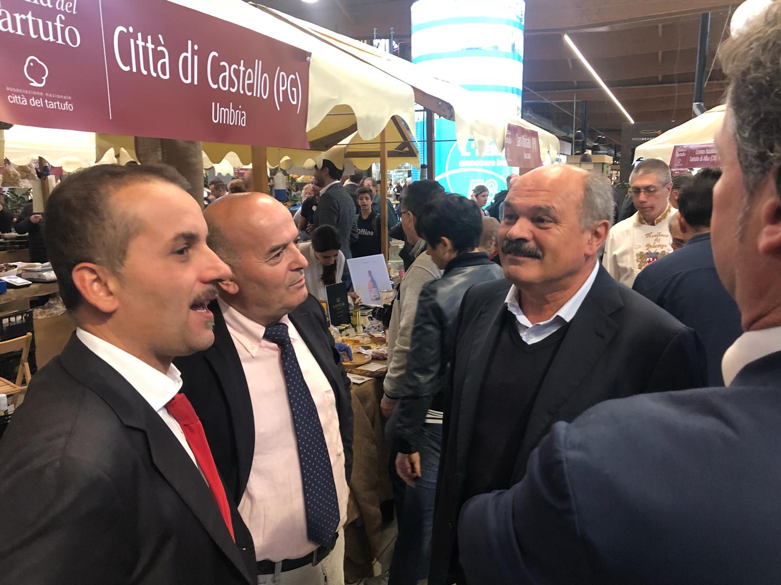 “Le quattro stagioni del tartufo, un’idea geniale per promuovere il tartufo”: queste le parole con cui Oscar Farinetti, patron di Eataly, ha fatto riferimento a Città di Castello, dopo aver visitato lo stand della Mostra del tartufo tifernate nell’ambito della trasferta a Fico, promossa dall’associazione Le città del Tartufo. Farinetti ha partecipato alla conferenza stampa dell’evento e, sottolineando l’importanza della comunicazione per le eccellenze italiane, ha citato il depliant dell’edizione 2018, la 39° in programma dal 1 al 4 novembre nel centro storico. Nella brochure vengono infatti presentate le quattro varianti del tartufo di Città di Castello che coprono tutto l’arco dell’anno e sono il segno tangibile dei territori autenticamente tartufigeni. “Ci ha fatto molto piacere l’apprezzamento di Farinetti, che si è dimostrato interessato alla nostra realtà in termini quantitativi” commenta Riccardo Carletti, a Bologna insieme al consigliere delegato Luigi Bartolini. Da sempre lavoriamo per promuovere le eccellenze e un riconoscimento che viene dall’esterno e da ambienti qualificati nella valorizzazione del made in Italy è molto gradito per noi, sopratutto alla vigilia del quarantennale della mostra”. Città di Castello era a FICO con i produttori ed i tartufai, nell’ambito dell’evento “L’Italia del Tartufo”, a cui hanno aderito tutte le città che tra le loro caratteristiche annoverano anche questo pregiato ingrediente. “Vetrine del livello di Fico hanno una grande importanza per valorizzare il patrimonio enogastronomico, tramite il quale possiamo far conoscere tutto quanto resta, ed è molto, della nostra offerta turistica. Ringraziamo le città del tartufo per questa opportunità, alcune delle quali saranno ospiti della Mostra”. Domani per la degustazione finale, a cura del Centro di Formazione Bufalini e di Marino Marini, parteciperà il presidente della Comunità Montana Mauro Severini.