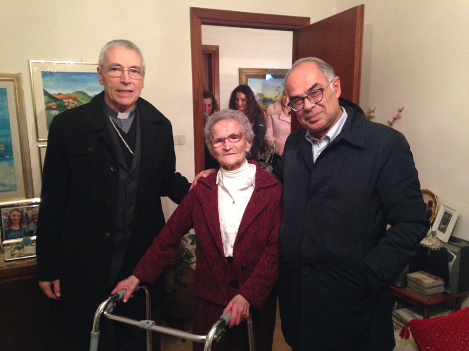 SINDACO E VESCOVO ALLA FESTA DEGLI AUGURI DI NONNA LUISA 107 ANNI