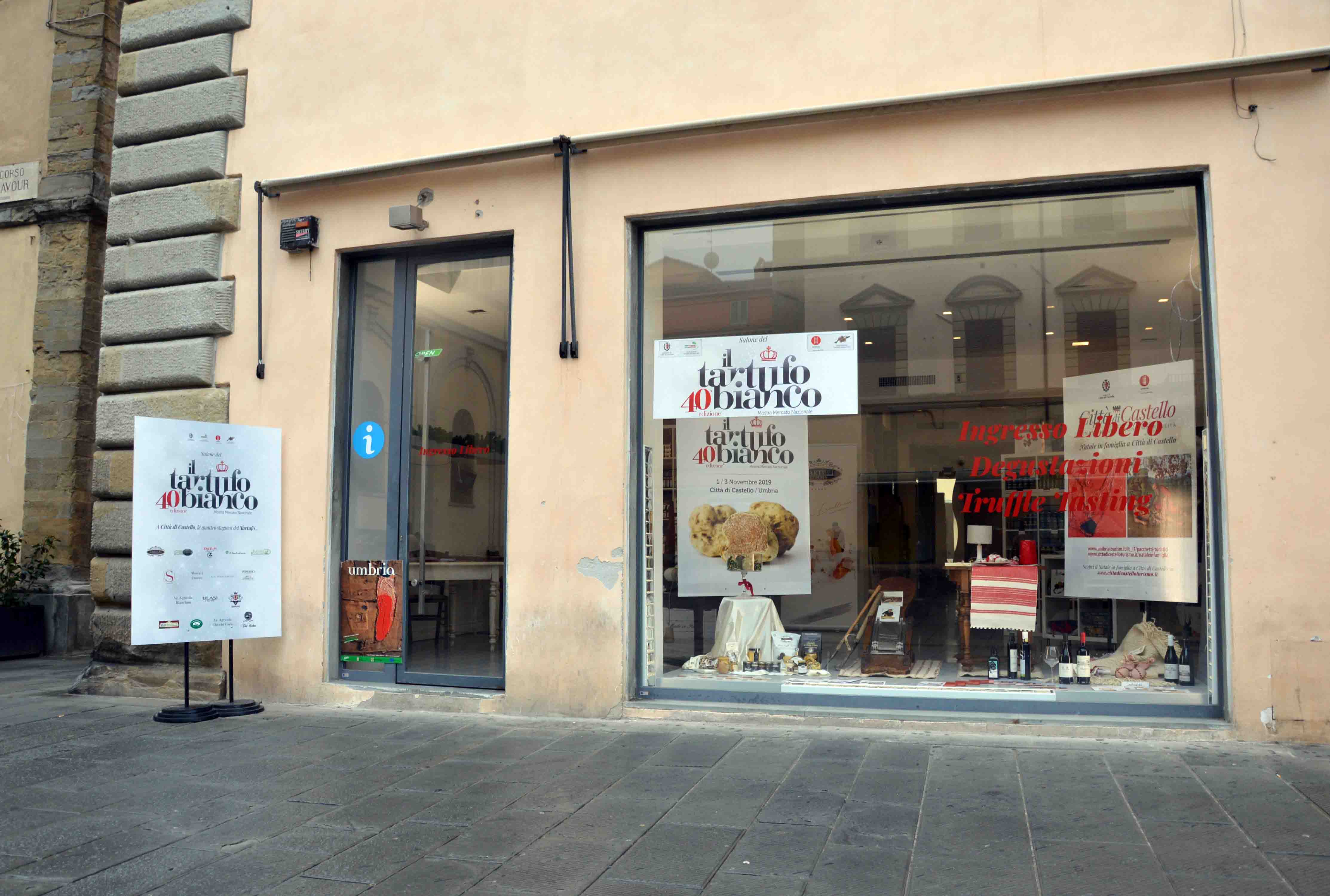 Nel Salone del Tartufo prodotti freschi e confezionati di Jimmy Tartufi, Giuliano Tartufi, Tartufi Martinelli, Bianconi Tartufi e il Tartufaro, Cantine Blasi e la Palerna per olio e vino, l’azienda agricola Bianchini, Donini, Le Pietraie, l’azienda agricola Po Mario e Rinalducci, Omero Moretti, la Macelleria dell’Allevatore, il Castellano e Tela Umbra. Sarà aperto tutti i giorni dalle 10.30 alle 12.30 e dalle 16.30 alle 19.30; Natale, Santo Stefano, 6 Gennaio, dalle 16.30 alle 19,30; 1 Gennaio chiuso.
