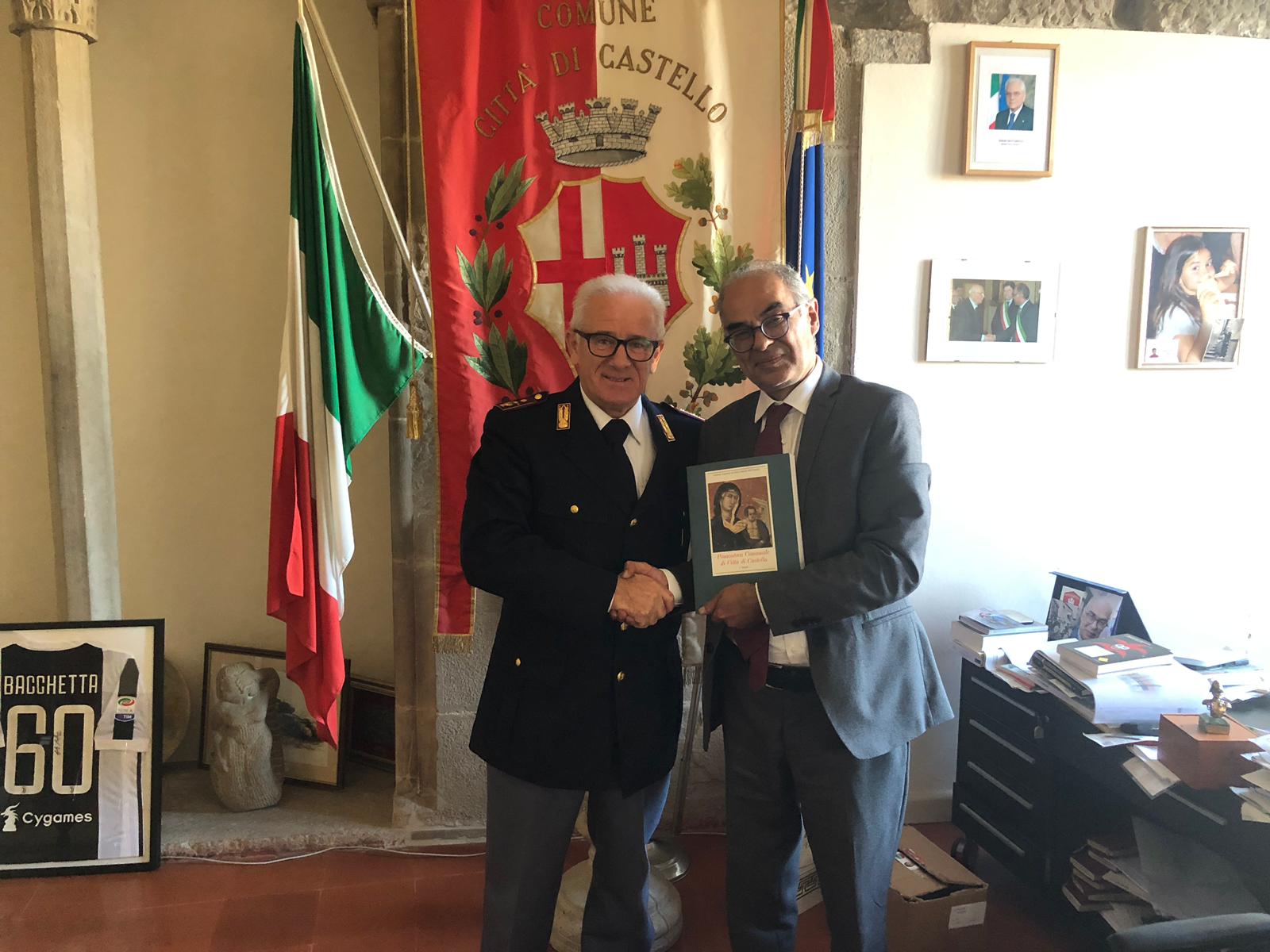 “Paolo Ferri è un esempio dello spirito di servizio con cui la Polizia Stradale, come tutte le altre forze dell’ordine e del soccorso locali, opera nel nostro territorio e va ringraziato per il senso del dovere e l’amore per la comunità con cui ha lavorato ogni giorno, indossando la divisa con dignità e professionalità per assicurare a tutti noi la sicurezza e la protezione di cui una collettività ha bisogno per vivere in modo civile e sereno”. E’ così che il sindaco Luciano Bacchetta ha salutato l’ispettore superiore della Polizia Stradale Paolo Ferri nell’incontro nella residenza municipale di piazza Gabriotti che ha preceduto il collocamento in quiescenza del comandante del distaccamento di Città di Castello, effettivo da venerdì primo novembre. Dopo 40 anni di servizio, di cui 33 trascorsi nel capoluogo tifernate, dove per 13 anni ha comandato gli agenti della caserma di via Piero della Francesca, Ferri sarà sostituito nell’incarico dall’ispettore superiore Riccardo Gatticchi. Nel dirsi “onorato del riconoscimento pubblico del primo cittadino e particolarmente felice dell’incontro”, l’ispettore Ferri ha parlato con grande affetto della propria esperienza alla guida della Polizia Stradale di Città di Castello, sottolineando “i piacevoli ricordi legati ai colleghi di lavoro e ai cittadini incontrati in servizio o conosciuti nella vita privata”, insieme alla particolare predilezione per l’educazione stradale dei giovani nelle scuole, nell’ambito di un impegno quotidiano sempre rigorosamente dedicato alla tutela e all’applicazione della legge e del codice della strada.