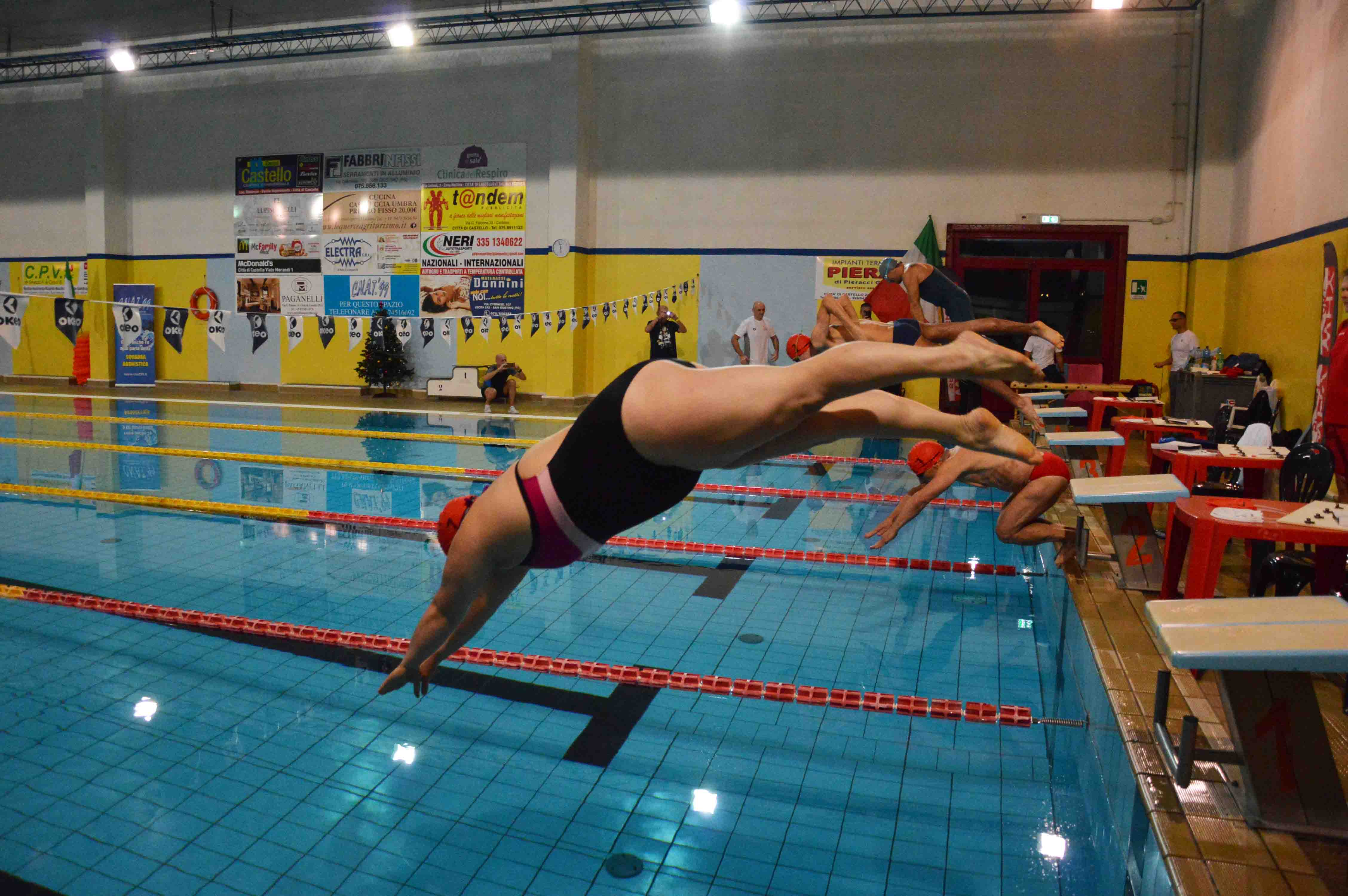 A 12 ore dalla partenza sono 310 gli appassionati scesi in acqua per la “24 ore di fine anno”, la maratona di nuoto organizzata dai Nuotatori Tifernati Master e dal Cnat’99 con il patrocinio del Comune e in collaborazione con Polisport e Sogepu, che è iniziata puntualmente alle ore 18.00 di ieri sera ed è in corso di svolgimento alle piscine comunali di via Engels. Tra i partecipanti anche gli assessori Riccardo Carletti, che è sceso in vasca con la figlia Maria Celeste, e Luca Secondi. Con una telefonata agli organizzatori si è idealmente unita alla manifestazione anche la stella del nuoto italiano Massimiliano Rosolino, campione olimpico, mondiale ed europeo, che ha voluto complimentarsi con l’amministrazione comunale e le società coinvolte nell’evento per aver dato vita a un’iniziativa così importante per promuovere il nuoto. Fino a stasera alle ore 18.00 chiunque voglia partecipare può presentarsi presso l’impianto e, senza alcun costo di iscrizione, scendere in acqua per nuotare. Gli organizzatori consegneranno a tutti la cuffia ufficiale della manifestazione e l’attestato di percorrenza in vasca. L’impianto sarà aperto a ingresso libero anche per spettatori e famiglie al seguito dei nuotatori. I bambini che accompagneranno i genitori impegnati in acqua nella maratona sportiva potranno nuotare e divertirsi, sotto sorveglianza, nella vasca piccola. Chiunque potrà fare una donazione per concorrere alla finalità benefica della manifestazione, che devolverà i proventi agli oratori cittadini attraverso l’acquisto di beni e servizi. Dopo la benedizione del vescovo monsignor Domenico Cancian e i saluti dell’assessore allo Sport Massimo Massetti, presente insieme all’assessore Luca Secondi, dell’amministratore unico di Polisport Stefano Nardoni e dell’amministratore unico di Sogepu Cristian Goracci, a dare l’avvio alla maratona è stato un testimonial d’eccezione, Michele Santucci, ex azzurro di nuoto che ha vinto la medaglia di bronzo ai Campionati del Mondo di Kazan nel 2015 e l’argento ai Campionati Europei di Debrecen nel 2012. A fare il primo tuffo sono stati il campione di lancio del disco Giovanni Faloci, la campionessa di judo Annalisa Calagreti; due simboli del Cnat’99 e dei Nuotatori Tifernati Polisport, rispettivamente, il giovanissimo Andrea Pierini, medaglia di bronzo ai campionati italiani giovanili di nuoto, e Vittorio Mariucci, classe 1941, pioniere del movimento master tifernate; Marco Fratini degli Amatori Nuoto Libertas di Perugia, che sta tentando l’impresa di coprire 90 chilometri di distanza. A conclusione della “24 ore di nuoto”, dopo le 18.00 di stasera, andrà in scena la versione invernale del “terzo tempo” che caratterizza in estate il Trofeo Italo Galluzzi, ovvero “Porchettando Christmas Edition”, momento conviviale a base di porchetta offerto a chi, dopo la lunga maratona, vorrà condividere una piacevole occasione di ritrovo. Per informazioni e adesioni alla manifestazione è possibile contattare gli organizzatori attraverso la pagina Facebook dei Nuotatori Tifernati Polisport.