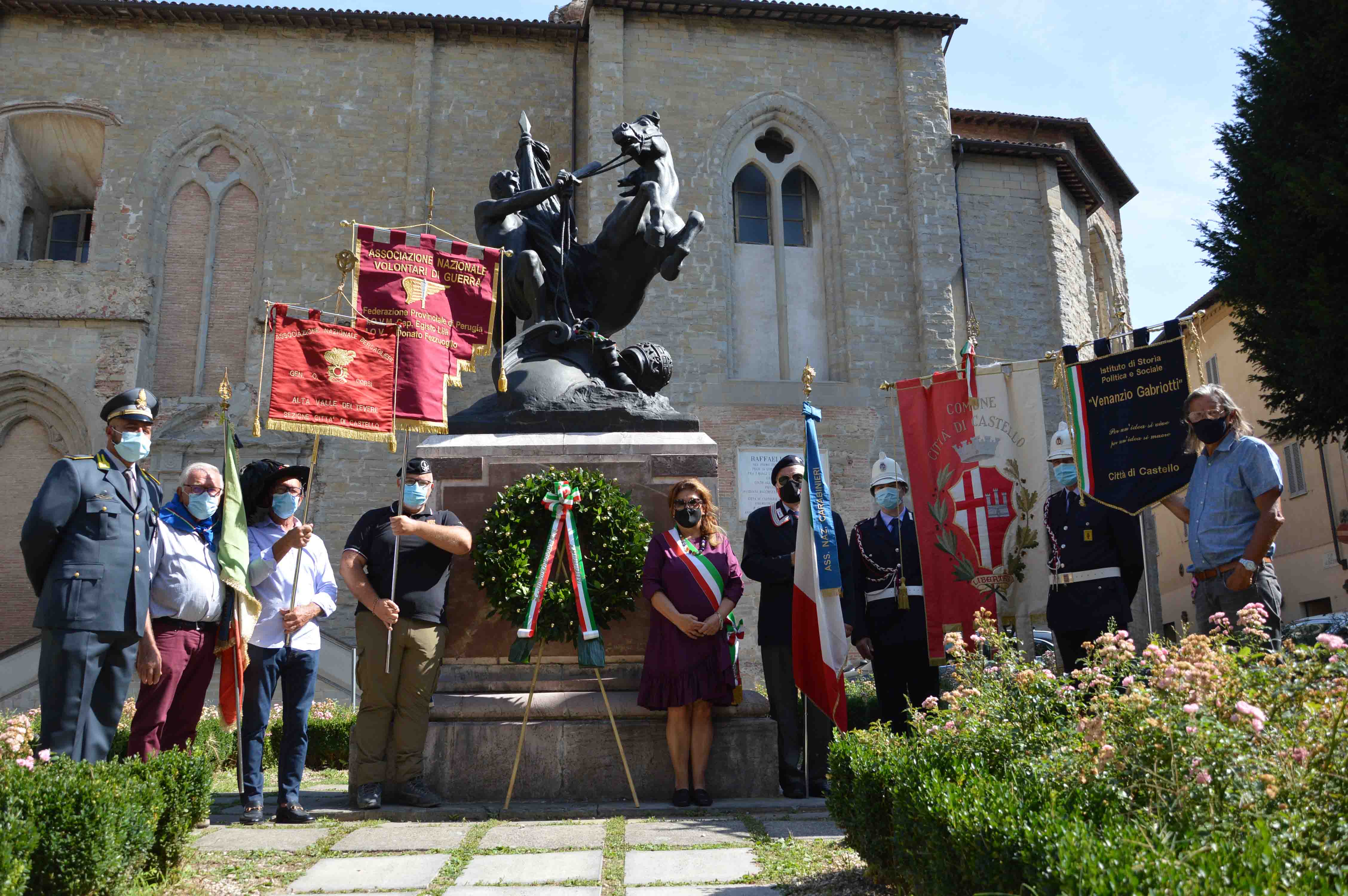 Nell’ultimo ventennio l’11 settembre è entrato nella memoria collettiva per il drammatico attacco terroristico alle torri gemelle di New York nel 2001, ma per Città di Castello coincide con il 160° anniversario della liberazione dallo Stato Pontificio e dell’annessione al Regno d’Italia da parte del Regio Esercito, avvenuta nel 1860. Ecco perché, a custodia della memoria collettiva, stamattina la ricorrenza è stata celebrata davanti al Monumento alla Libertà realizzato da Elmo Palazzi in piazza Raffaello Sanzio nel 1914 per onorare questa data simbolica nella storia della città. Nell’occasione Città di Castello è stata tappa della marcia rievocativa del movimento del V corpo d’armata del Regio Esercito Italiano del 1860 comandato dal generale Manfredo Fanti, organizzata dalla Federazione Provinciale di Perugia dell’Associazione Nazionale Volontari di Guerra, intitolata a Egisto Lilli e Donato Fezzuoglio, per ricordare l’azione con cui il contingente militare liberò tra l’11 e il 14 settembre Città di Castello, Umbertide e Perugia. Alla breve cerimonia ha partecipato l’amministrazione comunale con il gonfalone attraverso l’assessorato al Sociale, che ha sottolineato “l’importanza di conservare la memoria collettiva di fatti che hanno determinato la conquista dell’unità nazionale”, insieme al presidente della sezione perugina dell’Associazione Nazionale Volontari di Guerra Michele Farabbi, dal quale è venuto “l’auspicio che il ricordo dei tanti ragazzi che nel passato hanno sacrificato tutto per la nostra comunità sia sempre vivo e possa essere d’esempio per le nuove generazioni”, ai rappresentanti locali dell’Associazione Nazionale Famiglie Caduti e Dispersi in Guerra, dell’Associazione Nazionale Bersaglieri e dell’Associazione Nazionale Carabinieri Valerio Gildoni, dell’Istituto di Storia Politica e Sociale Venanzio Gabriotti e della tenenza di Città di Castello della Guardia di Finanza. L'11 settembre 1860 Città di Castello venne raggiunta e liberata dalla Brigata Granatieri di Sardegna, da una batteria di artiglieria e dal 16° battaglione di Bersaglieri comandati dal generale Carlo Camerana. Proveniente da San Giustino, dove ha fatto tappa ieri, la delegazione dell’Associazione Nazionale Volontari di Guerra proseguirà il cammino rievocativo sulle tracce della spedizione del Regio Esercito, toccando domani Umbertide e raggiungendo Perugia domenica 13 settembre.