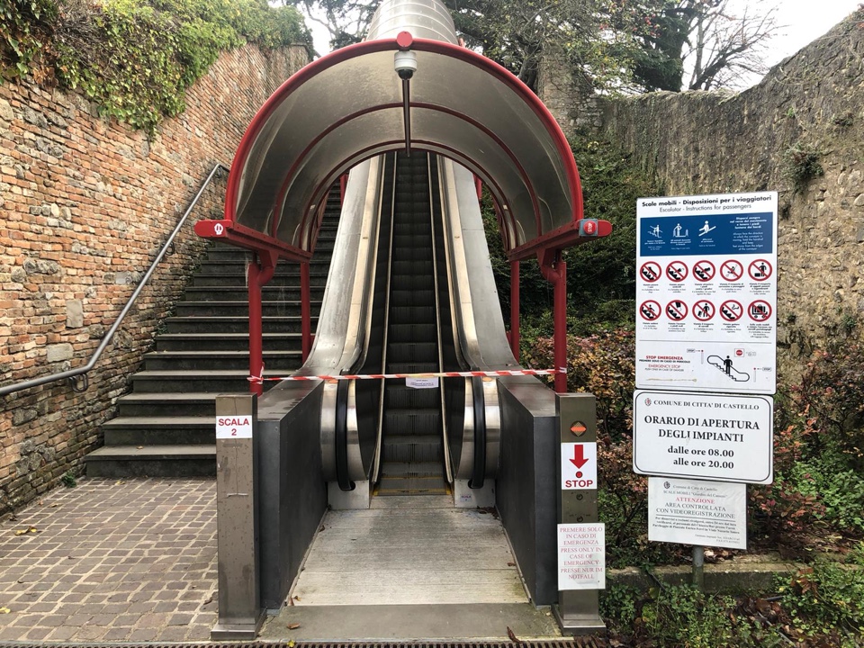 In relazione alle adottate misure governative in materia di prevenzione dall'epidemia Covid 19, oggi,mercoledì 11 novembre 2020, la società Edarco che gestisce le scale mobili dei Giardini del Cassero a Città di Castello comunica che il funzionamento dell’impianto sarà temporaneamente sospeso e che anche l’'accesso sarà impedito.