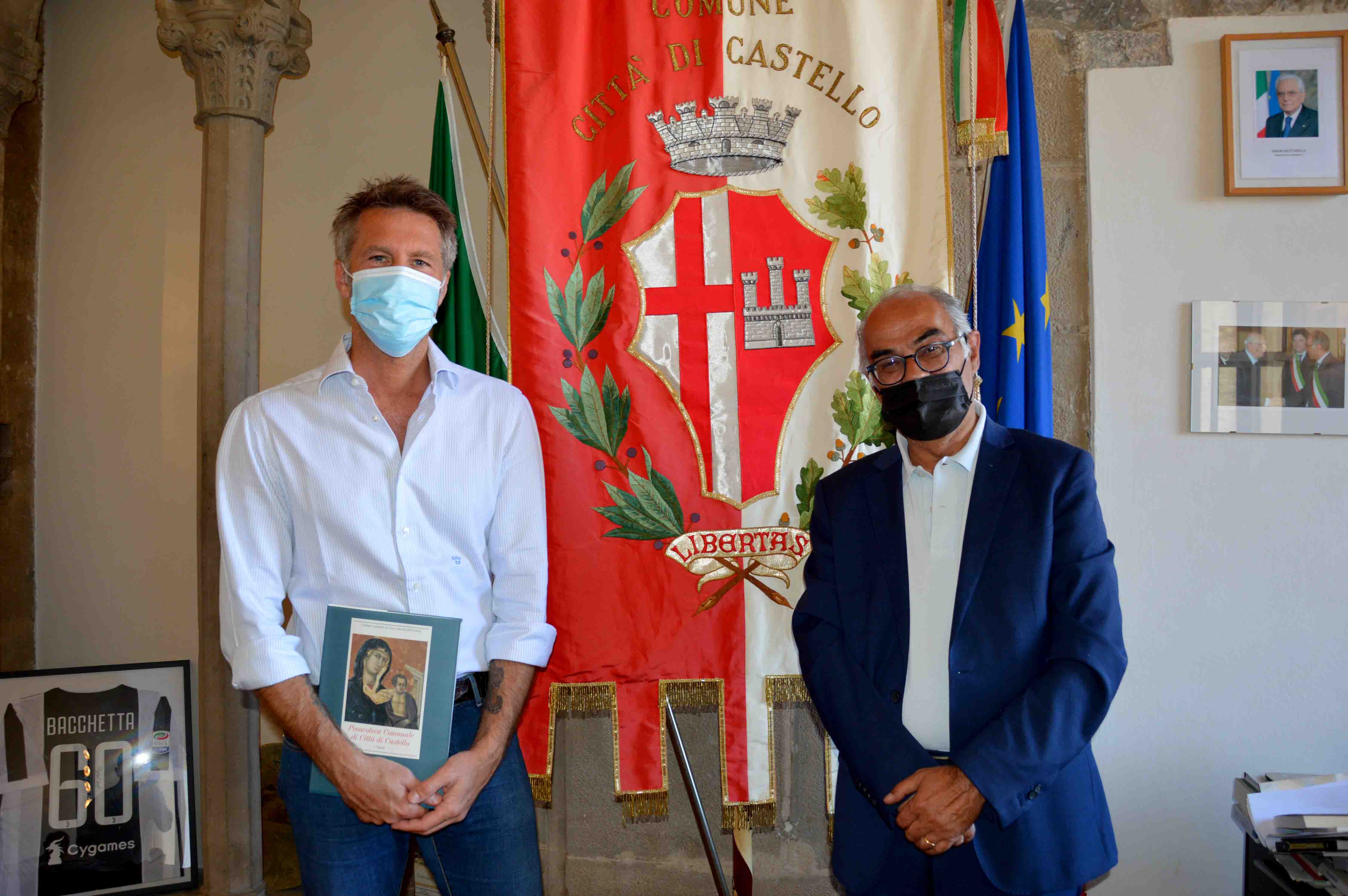 Emanuele Filiberto di Savoia verrà a visitare la mostra “Raffaello giovane e il suo sguardo”, che sarà inaugurata alla Pinacoteca comunale di Città di Castello sabato 18 settembre 2021 come omaggio all’artista per il cinquecentenario della morte. E’ l’impegno che il principe ha preso stamattina con il sindaco Luciano Bacchetta, accogliendo l’invito del primo cittadino nell’incontro nella residenza municipale tifernate. “Ci ha fatto molto piacere ricevere la visita del principe Emanuele Filiberto, che saremo onorati di avere alla nostra mostra dedicata a Raffaello, di cui crediamo possa essere un ottimo testimonial, da appassionato d’arte e amante del nostro territorio”, ha dichiarato il sindaco Bacchetta. “Non sarò in Italia a settembre, ma certamente verrò appena possibile a visitare questa esposizione, perché mi interessa molto e apprezzo particolarmente il periodo del Raffaello giovane”, ha affermato Emanuele Filiberto, che ha confessato la propria predilezione per Città di Castello. “Una bellissima città nella quale vengo spesso: conosco le collezioni Burri, la biblioteca comunale Carducci e mi piace molto frequentare i suoi luoghi e i suoi locali”, ha sottolineato il principe. “Sono molto legato all’Umbria, che è tutta bella – ha aggiunto Emanuele Filiberto - si può dire che le mie figlie parlano umbro, perché hanno sempre vissuto in questi luoghi”. Direttamente dalla propria residenza di Umbertide, Emanuele Filiberto ha raggiunto Città di Castello per partecipare alla riapertura di un esercizio pubblico in corso Cavour, incontrando nell’occasione anche i rappresentanti della sezione tifernate dell’Associazione Nazionale Carabinieri e della Confraternita dell’Olivo e dell’Olio dell’Alta Valle del Tevere. A Villa Capelletti, dove ha sede il sodalizio che custodisce la tradizione olearia del comprensorio, il principe, anch’esso pruduttore, ha ricevuto l’investitura di cavaliere ad honorem dal presidente Sergio Bartoccioni e dal segretario Antonio Bicchi, alla presenza dei soci e degli assessori Michela Botteghi e Vincenzo Tofanelli, che hanno illustrato le esposizioni racchiuse nel complesso di Garavelle, dal Centro delle Tradizioni Popolari al Museo malacologico Malakos.