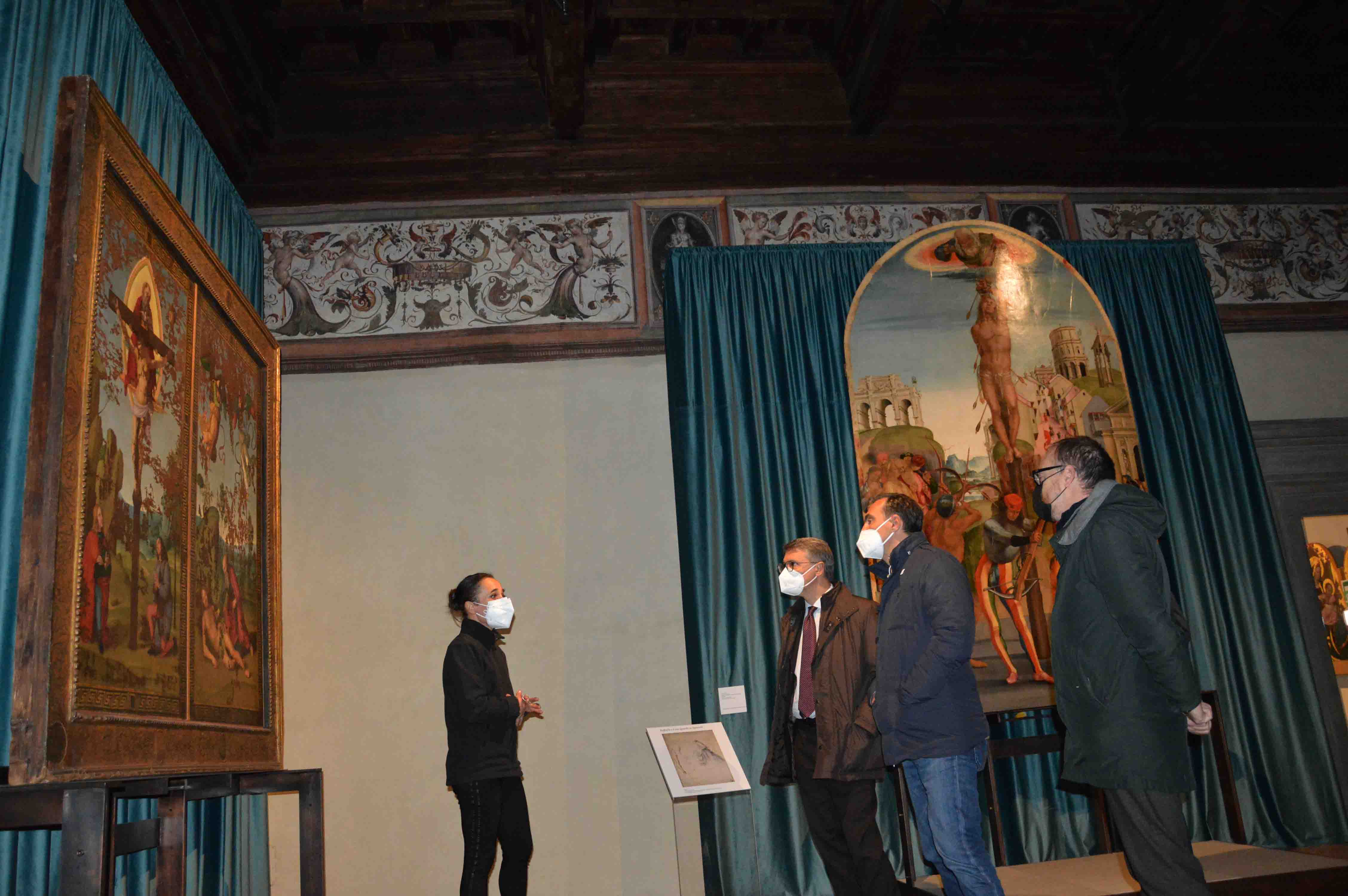 Negli spazi della Pinacoteca comunale, che ha da poco recuperato il suo ingresso monumentale originario, introdotto da un bel portale cinquecentesco, è possibile godere di un’esposizione dall’alto valore storico artistico, molto apprezzata dal pubblico fino a questo momento. Elemento di grande spessore della mostra, divenuto esposizione permanente, è l’allestimento che vede lo Stendardo della santissima Trinità di Raffaello e il Martirio di San Sebastiano di Signorelli ‘vis a vis’ nella stessa sala. Un accostamento che simboleggia l’incontro tra due grandi artisti che nella realtà non si sono mai conosciuti. Cuore della mostra è il Gonfalone a doppia faccia di Raffaello, unica sua opera mobile rimasta in Umbria, proveniente dalla Confraternita della Santissima Trinità di Città di Castello, ora conservato in Pinacoteca e prima sottoposto a uno straordinario restauro di reintegrazione estetica direttamente sorvegliato dall’Istituto Centrale per il Restauro (ICR) di Roma. La mostra, curata da Marica Mercalli, già Soprintendente dell’Umbria e ora direttore generale per la sicurezza del Patrimonio culturale del Ministero della cultura, e Laura Teza, professoressa associata di Storia dell’Arte moderna dell’Università degli studi di Perugia, è realizzata anche con il contributo del Gal Alta Umbria, PAL 2014 - 2020 ‘Umbria lasciati sorprendere’. In questo percorso espositivo, la Pinacoteca comunale ospita, per la prima volta insieme, tre frammenti del primo dipinto tifernate di Raffaello, la grande tavola de ‘L’Incoronazione di san Nicola da Tolentino’, danneggiata nel terremoto del 1789: l’Eterno e la Vergine, custoditi a Napoli (Museo Nazionale di Capodimonte), e la testa di Angelo, custodita nella Pinacoteca Tosio Martinengo a Brescia. Per la mostra è stata anche realizzata una ricostruzione virtuale dell’opera, che ne ripropone la fisionomia complessiva ed entrerà a far parte in maniera definitiva del percorso di visita della Pinacoteca. Tra le opere presenti anche la Madonna della Pace di San Severino Marche, che testimonia l’attenzione di Raffaello verso Signorelli durante la sua crescita artistica tra il 1502 e il 1503, e lo Sposalizio della Vergine (1504), ultima opera realizzata dall’artista in città in cui raggiunge traguardi di impressionante modernità. Proprio dello Sposalizio il maestro Stefano Lazzari della Bottega Artigiana Tifernate sta realizzando una riproduzione fedele, che rimarrà in Pinacoteca e che ha preso forma, durante la mostra, davanti agli occhi curiosi dei visitatori. Di grande fascino anche la sezione in cui sono esposte copie derivate dallo Sposalizio della Vergine oltre che l’unico disegno preparatorio finora noto (Oxford, Ashmolean Museum), con uno studio, sia sul fronte che sul retro, delle teste di fanciulle presenti nel corteo dello Sposalizio. INFO MOSTRA: Fino al 9 gennaio 2022, Pinacoteca comunale, Città di Castello. Apertura al pubblico contingentata e su prenotazione. Orario di apertura: 10-13 / 15-18. Chiuso il lunedì, esclusi i festivi e prefestivi, il 25 dicembre e il primo gennaio. Info: 075.8554202 - cultura@ilpoliedro.org - www.cittadicastelloturismo.it.