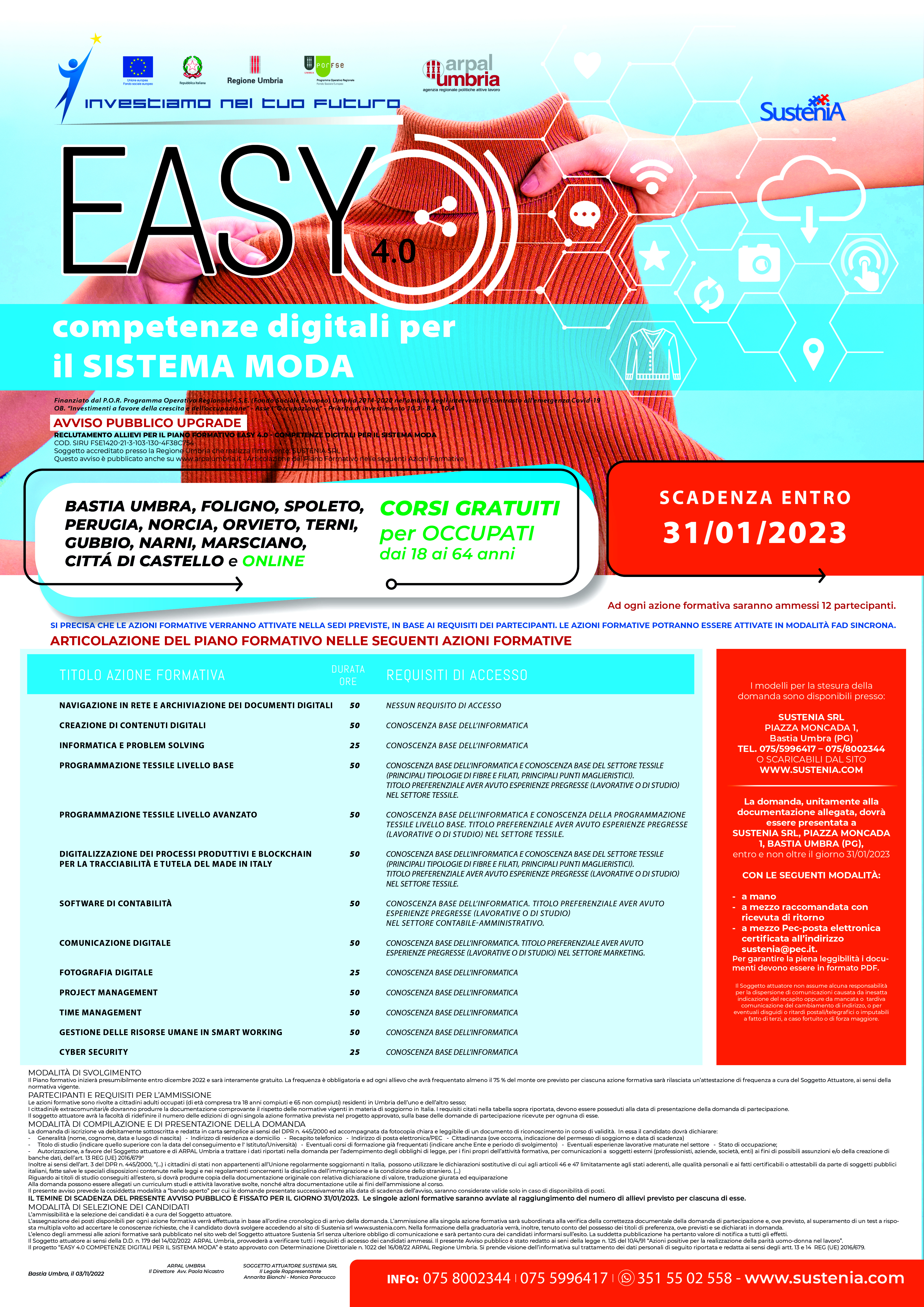 Costo: i corsi sono interamente GRATUITI
