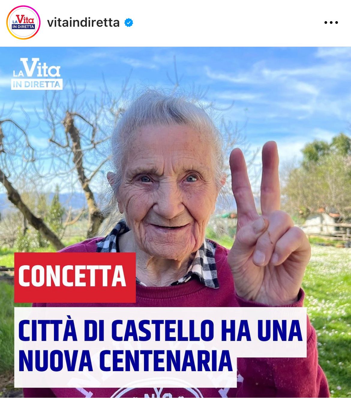 Concetta Veschi, “angelo della posta”, centenaria da pochi giorni, vera e propria star oggi in Tv a “La Vita in Diretta”, la storica trasmissione pomeridiana di Rai1, condotta da Alberto Matano. Una troupe della celebre finestra di informazione sui fatti di attualità, cronaca e storie di vita, ha fatto tappa a Promano dove abita l’arzilla signora assieme al figlio Giorgio Pannacci ed altri familiari. Intervistata dalla giornalista Barbara di Palma, la signora Concetta ha brillantemente risposto alle domande e raccontato episodi di vita e aneddoti davvero interessanti. Si è presentata di fronte alle telecamere, per nulla intimorita, con il piglio ed il sorriso di chi ha vissuto una vita intensa ed ha tanto ancora da raccontare. Non è certo passato inosservato il suo aspetto da “ragazzina” con felpa, camicia a quadri, pantaloni mimetici e scarpe da ginnastica ai piedi alla moda, che già sui social l’hanno consacrata con tanti “like” e commenti positivi. Nata ai Ranchi, nel comune di Umbertide, l’11 marzo 1923, Concetta ha vissuto la propria giovinezza negli anni della Seconda Guerra Mondiale, un periodo difficilissimo nel quale ha subito mostrato di voler prendere la vita di petto. Dopo essersi sposata il 23 aprile del 1945, Concetta ha dato alla luce prima Giorgio e poi Patrizia. Mamma e casalinga, ha esercitato per alcuni anni la professione della maglierista per poi intraprende una bella e lunga carriera lavorativa nelle Poste e Telecomunicazioni. Dopo gli inizi come “procaccia” per garantire il servizio postale dalla sede di Promano fino alla stazione ferroviaria di Trestina, Concetta ha scalato tutta la gerarchia dell’ufficio. Divenuta impiegata a tempo pieno, al lavoro di mattina e di pomeriggio nell’agenzia di Promano, ha avuto la forza e la costanza di abbinare anche lo studio a un impegno familiare e lavorativo che le impegnava tutta la giornata. Dopo essersi iscritta alla scuola serale, ha così conseguito il diploma del III avviamento professionale che le ha spalancato le porte della carriera professionale nell’amministrazione di Poste e Telecomunicazioni. Sempre disponibile e professionale, Concetta è quindi arrivata a ottenere la qualifica di direttore dell’ufficio postale di Promano, coronando un percorso lavorativo iniziato dal basso e portato avanti con grande dedizione e impegno. Nella sua carriera, conclusa con il pensionamento nel 1988, ha lavorato negli uffici postali di Città di Castello, Umbertide, Trestina, San Secondo, Morra, Niccone, Montecastelli, San Maiano, Lugnano e Montone. In un’epoca in cui la conquista di certi spazi sociali non era scontata, né facile, Concetta ha sempre tenuto alla propria autonomia. In nome di questa ha conseguito orgogliosamente anche la patente di guida nel 1963, mettendosi al volante di una Fiat 500 dopo anni di spostamenti tra casa e lavoro in bicicletta e Vespa 125. “Concetta è una figura di donna esemplare, che ha saputo essere mamma, casalinga e lavoratrice con grande tenacia, intraprendenza e sacrificio, prendendosi la responsabilità in prima persona di garantire una vita migliore ai propri figli e difendendo la propria autonomia in decenni nei quali la condizione femminile era difficile da affermare in tutti gli ambiti della società”, ha ribadito il sindaco Luca Secondi, che sabato scorso gli ha fatto visita nell’abitazione di Promano per festeggiare il compleanno e portare i rallegramenti dell’amministrazione comunale alla nuova arrivata nella “città dei centenari”. Un dato originale ribadito ai microfoni de “La Vita in Diretta” dalla responsabile del Servizio Demografico e Anagrafe del comune, Daniela Salacchi. I tifernati che hanno festeggiato il secolo di vita sono ad oggi 20 di cui 12 femmine ed 8 maschi. Altri sette, femmine, compiranno 100 anni nel corso del 2023. Il primato è “rosa” anche nella terza età avanzata nella fascia degli ultra 90enni: sul totale di 640 persone, ben 468 sono femmine (73%) e 172 maschi (27%). Sempre in questa fascia di età alla voce vedovi/e spiccano ancora le donne: sul totale di 488 persone, l’84% pari a 412 unità sono donne mentre 76 gli uomini, 16%.