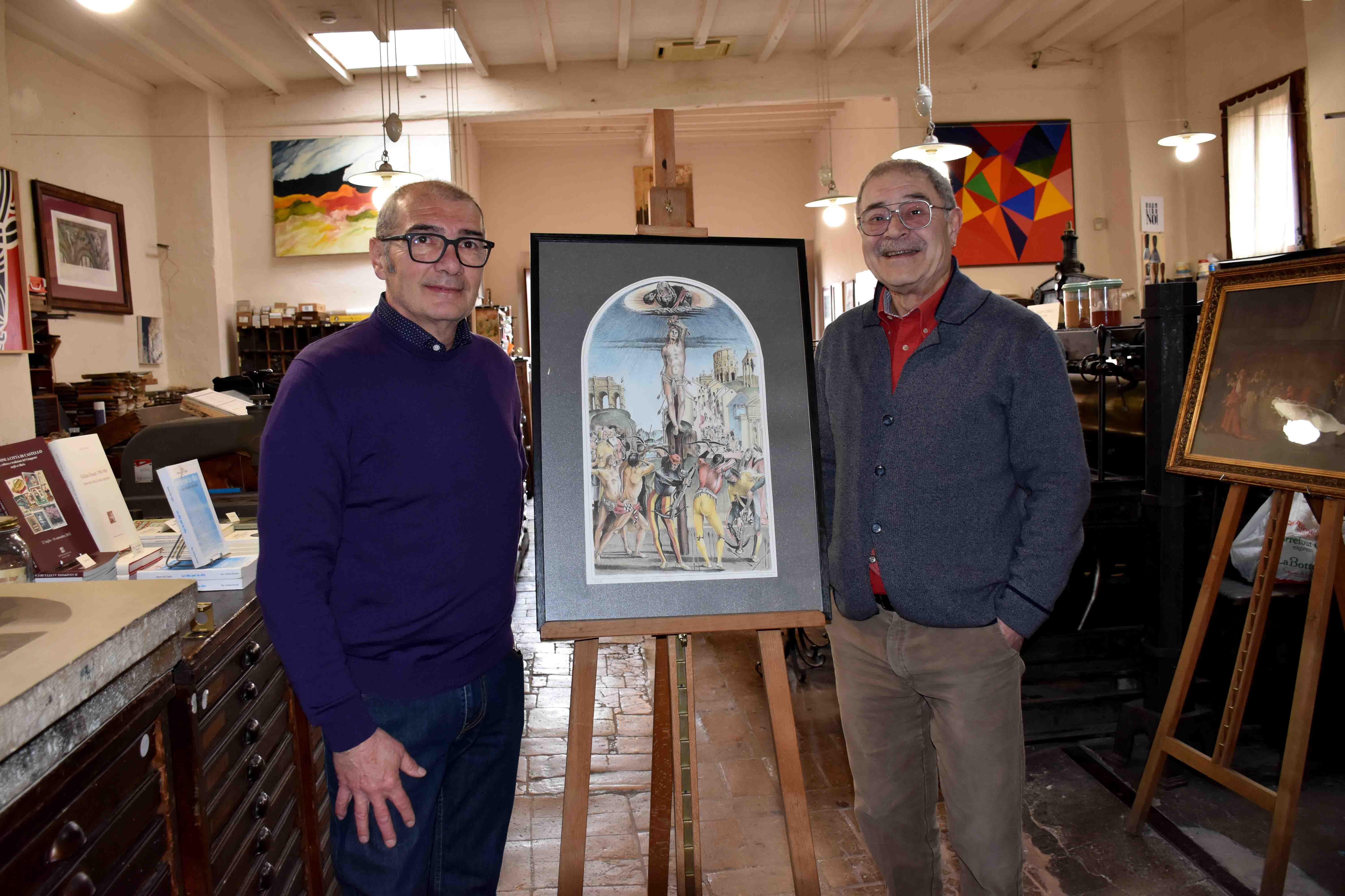 Perugino-Signorelli500. Nuovo evento straordinario nella “Valle di Signorelli” in omaggio al Cinquecentenario di Signorelli a Città di Castello dove la Tipografia Grifani Donati 1799 (l’unico luogo in Europa e nel Mondo dove sia possibile esercitare tutte e tre le tecniche grafiche tradizionali: la tipografia, la calcografia e la litografia.) uno dei 20 musei della Valle di Signorelli e della rete museale che la promuove, ha riprodotto con la rara e antichissima tecnica della litografia su pietra, la grande pala del Martirio di San Sebastiano, una delle maggiori opere dell’artista cortonese, esposta nella locale Pinacoteca. A realizzarla l’artista Fabio Mariacci, attivo in campo artistico dagli anni '70, svolge attività grafica e pittorica con partecipazione a mostre collettive e personali che lo portano in contatto con i maestri Dorazio e Nuvolo: collabora da almeno un trentennio con la storica Tipografia di Città di Castello Grifani-Donati (fondata 1799) alla realizzazione di litografie su pietra ed alla creazione di eventi culturali legati al mondo della stampa. Gianni Ottaviani, della Tipografia Grifani Donati spiega la scelta ricordando come, “dall’inizio dell’Ottocento fino ai primi del Novecento la litografia sarà la tecnica che permetterà di avere le immagini a colore che prima non esistevano”. La Tipografia Grifani Donati, museo della stampa che conserva ancora i macchinari del 1799, anno della fondazione, in funzione è una delle poche realtà che può realizzare questa tecnica con le modalità dell’epoca. La litografia, dopo l’originale, era la tecnica che allora permetteva di avvicinarsi di più al dipinto con l’uso di colori fino a 50 e di altrettante pietre. In questo senso la litografia è l’antenata anche della nostra stampa digitale e della sua estrema fedeltà all’originale”. La riproduzione è stata realizzata dal maestro Mariacci, con “la Tipografia che ha tutti gli strumenti d’epoca originali; abbiamo realizzato questo capolavoro ma anche altri, come lo Stendardo di Raffaello, che fanno parte del patrimonio della città”, ha dichiarato Mariacci evidenziando che “è stata utilizzata la tecnica litografica pura con matita grassa ed inchiostro su un supporto di una pietra di carbonato di calcio dove si disegna il soggetto in maniera speculare. Si disegna la pietra e attraverso una procedura chimica che applica il tipografa, si procede alla stampa di circa 50 copie con la tecnica di stampa a mano e con la stampa a macchina si può ottenere una tiratura superiore”. L’Alta Valle del Tevere da sempre è stata culla e fucina di Arte, un luogo d’ispirazione e di transito culturale per molti artisti nel corso della storia. È tra la fine del 1400 e l’inizio del 1500 che all’artista Luca Signorelli, allievo del maestro Piero della Francesca, vengono commissionate opere che lo vedranno presente in diverse città umbre, tra cui Città di Castello. Questa città è stata così nel tempo punto di riferimento e testimone di un grande patrimonio artistico e culturale tra cui lo sviluppo dell’arte tipografica già all’inizio del 1600 che la consacrerà secondo polo dopo Milano per la stampa. L’impronta e l’arte lasciata sul territorio da Luca Signorelli è stata nel tempo fonte d’ispirazione per molti artisti contemporanei: è nel 1997 che Fabio Mariacci, artista locale, con la matita grassa riproduce sulla pietra litografica due opere del Signorelli l’Adorazione dei pastori e il Martirio di San Sebastiano quest’ultima oggi conservata nella Pinacoteca Comunale di Città di Castello. È proprio la tecnica litografica, ancora oggi praticata nell’antica stamperia, che renderà possibile la riproduzioni dei dipinti dei grandi artisti diffondendone la storia e la conoscenza. In occasione dell’anno Signorelliano verranno esposte nei locali della Grifani Donati, situata in Corso Cavour n°4, le due litografie dell’artista Fabio Mariacci e verranno organizzate delle visite guidate con approfondimenti sull’antica tecnica litografica. L’iniziativa San Sebastiano, litografia del Martirio, rientra nel calendario dei week end della Valle di Signorelli, mostra di Vallata, che fino a dicembre propone la visita delle undici opere di Signorelli e scuola signorelliana conservate in Alto Tevere Umbro con un biglietto ridotto. La Mostra di Vallata coinvolge Città di Castello, San Giustino, Umbertide, Montone e Pietranlunga, Citerna, Monte Santa Maria Tiberina e Lisciano Niccone. Info su La Valle di Signorelli, itinerari geolocalizzati e week end su www.rimaltotevere.it, FB e IN, oppure inquadra i QR code di RIM La Valle di Signorelli.
