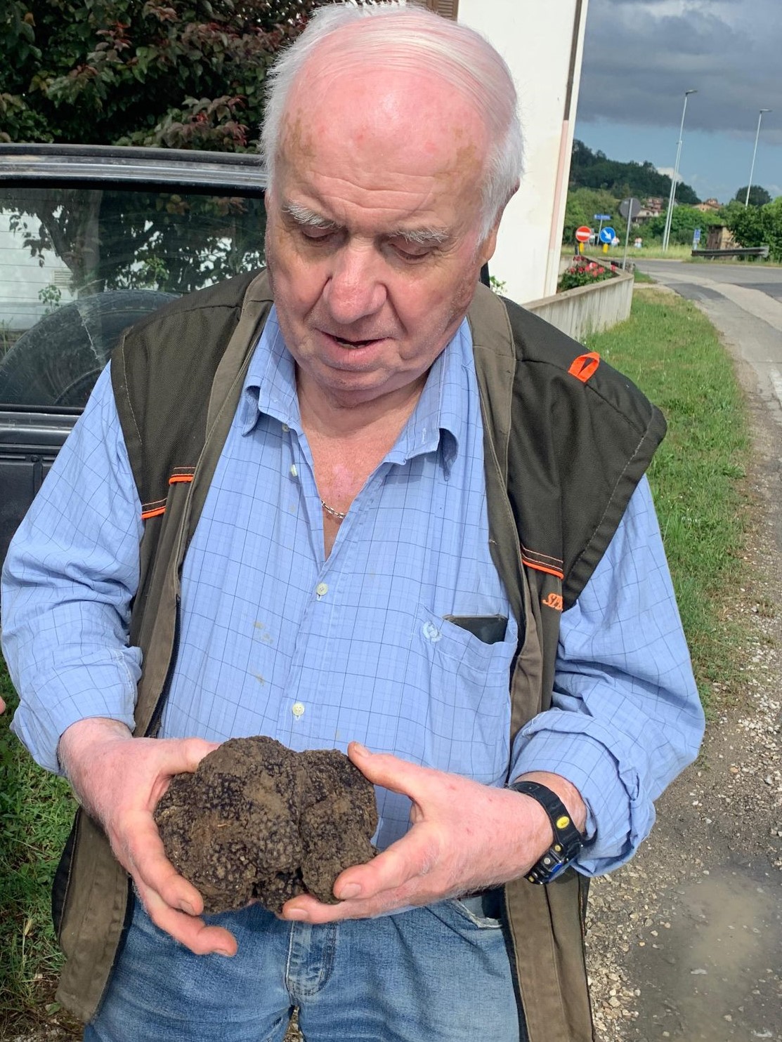 Maxi-tartufo, "scorzone", di oltre un chilo scovato dal fiuto infallibile di un bracco pointer nelle campagne di Città di Castello rende felice il proprietario, esperto "cavatore"