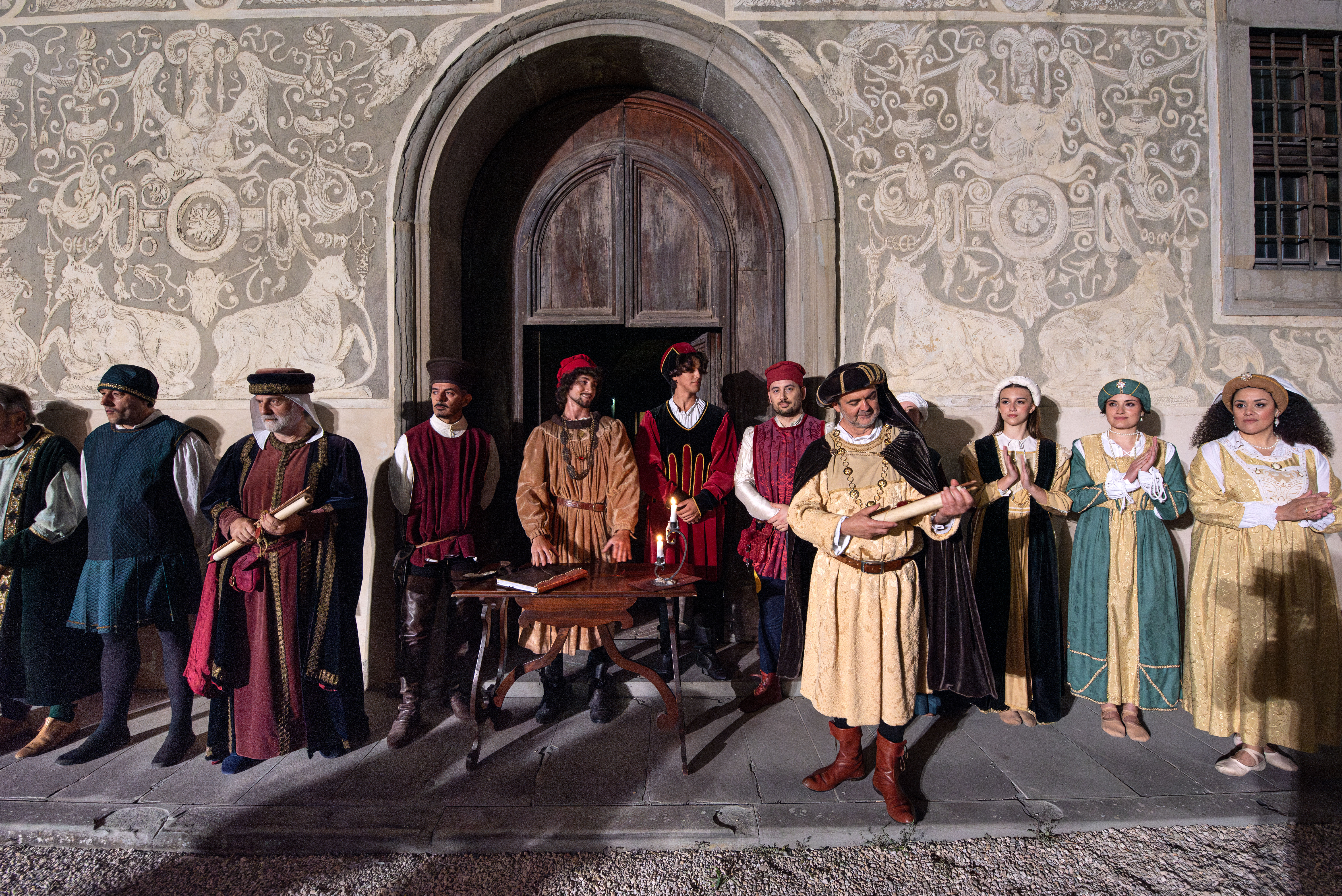 Un cinquecentenario, quello di Signorelli, ed un anno zero, dopo una lunga pausa: sono i numeri della rievocazione storica itinerante “Luca Signorelli, uno di noi”, che ha esordito ieri sera, venerdì 7 luglio, nelle vie del centro storico grazie ad una corale collaborazione di tante associazioni ed in primis dei figuranti della Società rionale Mattonata, che hanno dato tono ed una patina rinascimentale al corposo seguito di cittadini, che ha accompagnato la storia raccontata da due popolane nei punti del centro storico interessati dalle opere e dalle vicende di Luca Signorelli. Tra le vie della città, tra le quali non poteva mancare la via intestata all’artista e, le chiese di Sant’Agostino, di San Francesco e di San Domenico e la chiesa degli artisti, Sant’Apollinare, grazie alla partecipazione della diocesi del comune di Città di Castello e della famiglia Innocenti. “A proposito di Luca. Luca Signorelli, un artista, un tifernate, uno di noi.”, che sarà ripetuta domani, domenica 9 luglio alle 19.00, in Piazza Gabrotti, subito dopo il Palio della Balestra, è il frutto di mesi di lavoro dell’equipe formata da Lucia Zappalorto, Mauro Silvestrini, che hanno curato organizzato e testo, Giuseppe Sterparelli, per la parte storico-artistica, con la collaborazione di Cooperativa Il Poliedro, Associazione Compagnia dei Balestrieri di Città di Castello, Società rionale Mattonata, Castello Danza, Associazione culturale Lupi di Ventura, Schola Cantorum A. M. Abbatini. Gli attori che hanno guidato il corteo tra personaggi famosi e qualche mistero sono Claudia Ripi, Giuseppina Magi, Leonardo Caprini, Luca Baiardi, Andrea Bucci, Lorenzo Cozzari, Marco Coltrioli. Una macchina complessa al cui funzionamento ha contribuito in modo fondamentale per l’ordinato svolgimento la Polizia Locale di Città di Castello. Appuntamento domenica subito dopo il Palio della Balestra alle ore 19.00 sempre in Piazza Gabriotti.