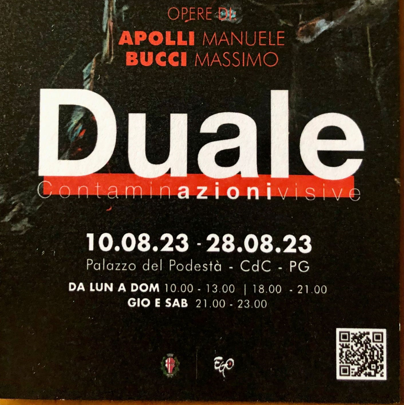 "Duale", contaminazioni visive è il titolo della mostra realizzata dagli artisti tifernati, Massimo Bucci e Manuele Apolli, in programma dal 10 al 28 Agosto presso le sale espositive di Palazzo del Podestà.