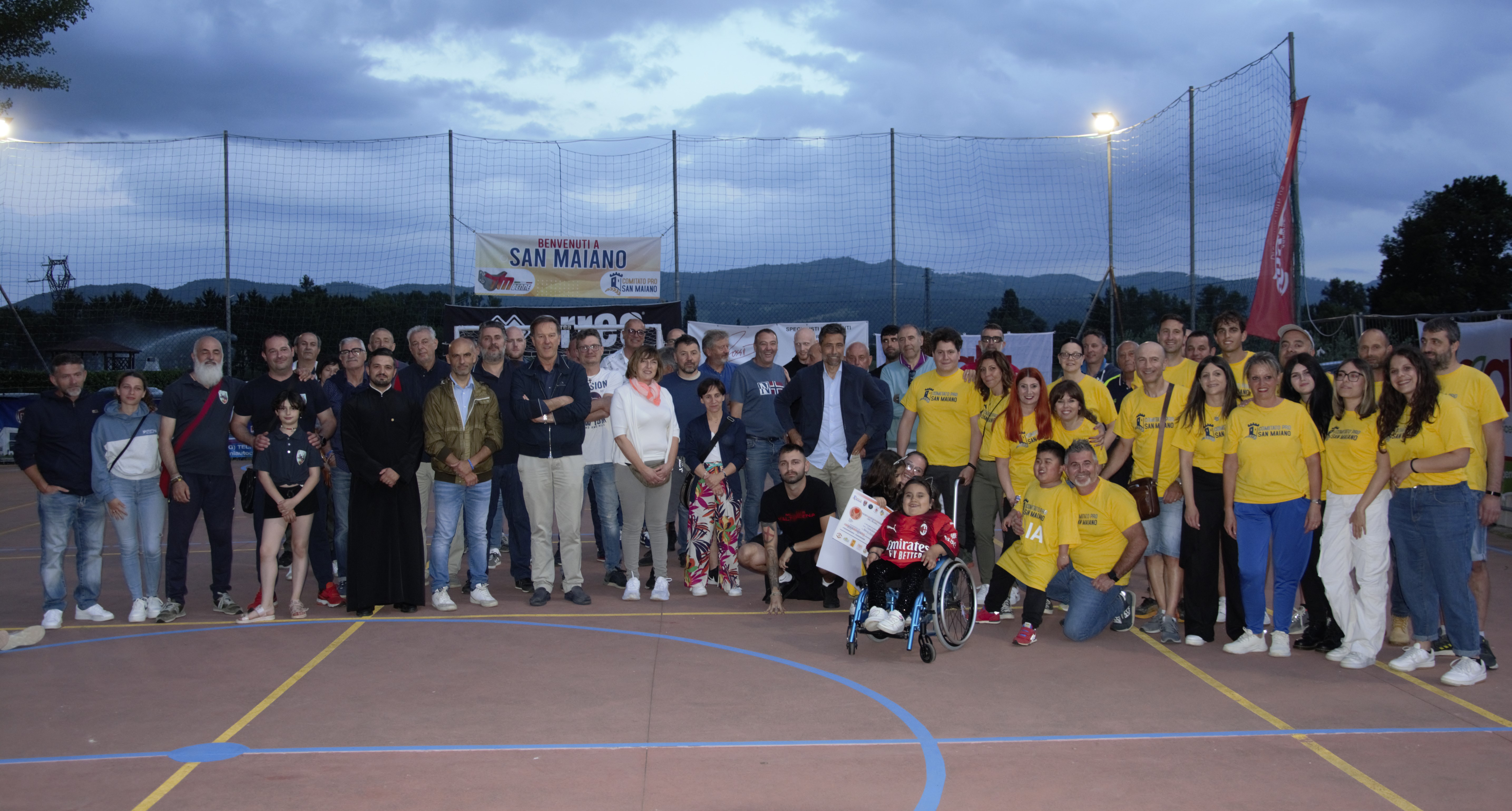 Da Elia a Maria Goia, la staffetta del cuore e del sorriso grazie alle pro loco e società rionali del territorio. Quando un torneo di calcio si trasforma in una grande gara di solidarietà. A San Maiano nell’area verde della frazione è stata scritta per il secondo anno consecutivo una bellissima pagina di sport e solidarietà. Prima del calcio di inizio del torneo tra paesi di calcio a 5, organizzato dal comitato Pro San Maiano con il patrocinio del comune, in programma fino al 28 giugno (22 le formazioni in campo) si è svolta la sentita e partecipata cerimonia di consegna del ricavato della raccolta fondi, tremila e trecento euro, alla famiglia di una bellissima bambina, Maria Gioia, affetta da una malattia degenerativa, innamorata della vita, la gioia per la scuola e per il calcio, lo sport preferito e la squadra del cuore, il Milan. Oltre al contributo economico, un “maxi-assegno”, senza dubbio importante, il Presidente della Pro-Loco di San Maiano, Fabio Fortuni e tutto lo staff della Pro Loco e collaboratori a vari livelli (davvero encomiabile il loro infaticabile impegno) hanno allestito un vero e proprio evento per rendere memorabile la serata del fischio di inizio con tanto di prestigiosi “testimonial” a partire dall’ex “grifone”, rossonero e nazionale, Federico Giunti, tifernate “doc”, che fin da subito con la solita signorilità e collaborazione si è messo a disposizione per la nobile causa unitamente ai rappresentanti del Milan Club Valtiberina (presenti sempre ad iniziative benefiche) nel consegnare a Maria Gioia una maglia originale del Milan, la squadra del cuore che ha subito indossato con felicità. A rendere ancora più toccante e ricca di significati la cerimonia di apertura del torneo, condotta in maniera impeccabile da Gabrio Possenti, la presenza allegra di Elia Maltagliati, un ragazzo cinese di 11 anni, di Apecchio, adottato da Tania Luchetti e Massimo Maltagliati, i suoi genitori, che nel 2015, solo dopo 2 mesi in Italia hanno scoperto la sua malattia, la forma più aggressiva di distrofia muscolare. Proprio lo scorso anno Elia fu protagonista della prima edizione del torneo e destinatario di una raccolta fondi da parte delle Pro Loco e associazioni iscritte. Come Maria Gioia anche Elia è appassionato del calcio e della vita ed il suo sorriso ed entusiasmo è contagioso. Una rappresentanza della scuola i “Concertisti” di Umbertide con il maestro, Gianfranco Contadini, ha eseguito l’Inno di Mameli ed altri brani musicali. Anche la comunità rumena ed ortodossa, di cui fa parte la famiglia della piccola, ha attivato un’altra cospicua raccolta fondi promossa dal sacerdote. “Come già accaduto lo scorso anno con la prima edizione dedicata ad Elia, un amico e straordinario ragazzo, tutto è nato in maniera spontanea all’insegna della passione per lo sport, la voglia di stare insieme e di regalare un sorriso ad una bambina speciale, alla sua famiglia e comunità”, ha dichiarato soddisfatto, Fabio Fortuni, che tiene ancora una volta a ringraziare i colleghi presidenti di Pro-Loco e Società Rionali per la immediata adesione e solidarietà al progetto che poi si è tramutato in una concreta raccolta fondi con tanto di assegno personalizzato”. Commozione ed orgoglio per aver partecipato ad una serata speciale anche nei volti del sindaco, Luca Secondi e del consigliere delegato alle frazioni, Roberto Brunelli. Silvia Georgiana la mamma di Maria Gioia ha ringraziato tutti coloro che in maniera davvero straordinaria e spontanea hanno attivato una vera e propria rete di solidarietà che ha reso memorabile la giornata di festa: “grazie per tutto l’amore, affetto e vicinanza concreta che ci avete manifestato. Una giornata indimenticabile”.