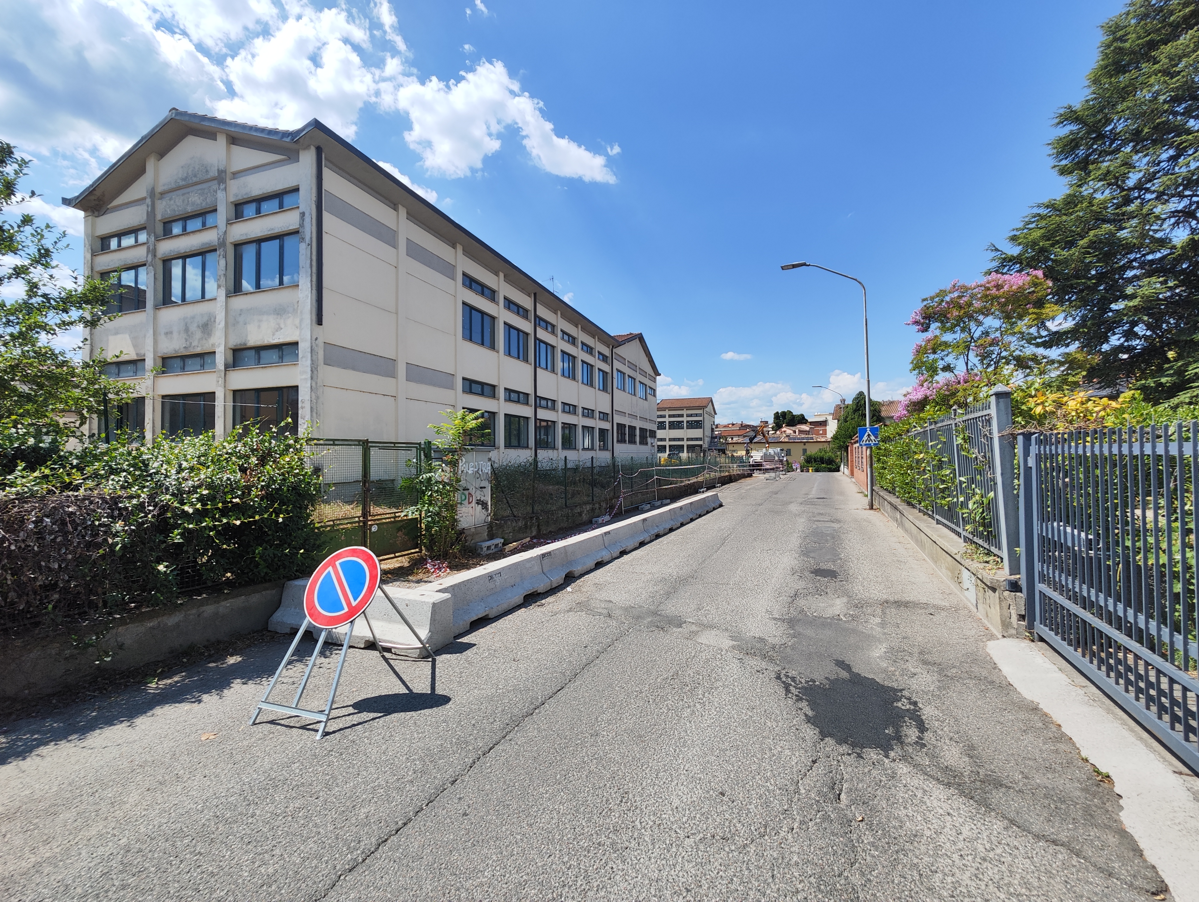 Lunedì 29 luglio inizierà la demolizione della scuola Dante Alighieri. Partiranno infatti al mattino le operazioni preliminari di strip-out previste dal progetto da 12 milioni 293.500 euro per l’abbattimento e la ricostruzione dello storico istituto di Città di Castello. I lavori riguarderanno la rimozione di tutti gli elementi che non fanno parte integrante della struttura edilizia, come porte, infissi, impianti, pavimenti e sanitari, che saranno differenziati e avviati al recupero. L’intervento ha, infatti, una forte connotazione green, non solo per quanto riguarda le scelte progettuali del nuovo edificio, che sarà in legno e vetro, ma anche dal punto di vista del riciclo dei materiali di scarto, che dovrà essere almeno del 70 per cento in peso dei rifiuti provenienti dalle attività di demolizione e costruzione, in base alle disposizioni del PNRR. Questa fase di demolizione selettiva preparerà il complesso scolastico all’effettivo abbattimento dei fabbricati che lo compongono, previsto a partire dal 5 agosto. Il raggruppamento temporaneo di imprese aggiudicatario dell’accordo quadro nell’ambito della procedura di gara gestita da Invitalia, che ha come mandataria l’azienda Costruzioni INGG Penzi Spa di Maddaloni, in provincia di Caserta, e come mandante la GI.SO. Srl di Roma, ha affidato in subappalto le operazioni di smantellamento della struttura edilizia dalla ditta RAD Service di Gubbio, azienda specializzata in demolizioni controllate. I lavori di rimozione completa della struttura edilizia della scuola inizieranno dal fabbricato posto a ridosso del condominio di via della Tina che ospita il supermercato. Nel rispetto del capitolato d’appalto, l’impresa incaricata della demolizione dovrà minimizzare tutte le emissioni provenienti dal cantiere per tutelare i residenti e le attività dell’area, adottando i sistemi necessari per ridurre la produzione di polveri e rumori. Per garantire lo svolgimento in sicurezza dei lavori, consentendo anche il necessario passaggio dei mezzi pesanti che saranno impegnati nel cantiere, il comando della Polizia Locale ha emesso due ordinanze in collaborazione con il Servizio Viabilità dell’ente. In via della Tina è prevista l’istituzione di un divieto di sosta sul lato sinistro, per tutto il fronte della recinzione della scuola. Lungo la medesima direttrice, sarà vietata la sosta sul lato sinistro, nel tratto adiacente la recinzione di pertinenza della Dante Alighieri, fino all’area di parcheggio a servizio del vicino supermercato, e nel tratto compreso tra la prima rampa di accesso al parcheggio sotterraneo del condominio di via Francesco Ferrer e l’intersezione con via Nino Bixio. La percorrenza della carreggiata di via della Tina sarà ristretta all’altezza della recinzione dell’area di cantiere fino all’area di parcheggio a servizio del supermercato della zona, mediante la posa di new-jersey non ancorati al suolo. Le barriere a protezione del cantiere saranno posizionate a una distanza dal muro di cinta della scuola tale da garantire il flusso veicolare e pedonale, assicurando una larghezza della strada di 4,70 metri. Il restringimento della carreggiata sarà indicato da apposita segnaletica, con l’aggiunta di lanterne luminose che miglioreranno la visibilità dell’ingombro anche nelle ore notturne. Su tutto il tratto di via della Tina interessato dalle modifiche della viabilità sarà istituito un limite di velocità per i veicoli di 30 Km/h. I provvedimenti adottati potranno essere modificati dal comando della Polizia Locale in relazione a eventuali ulteriori esigenze di tutela della sicurezza degli utenti della strada e delle maestranze del cantiere.