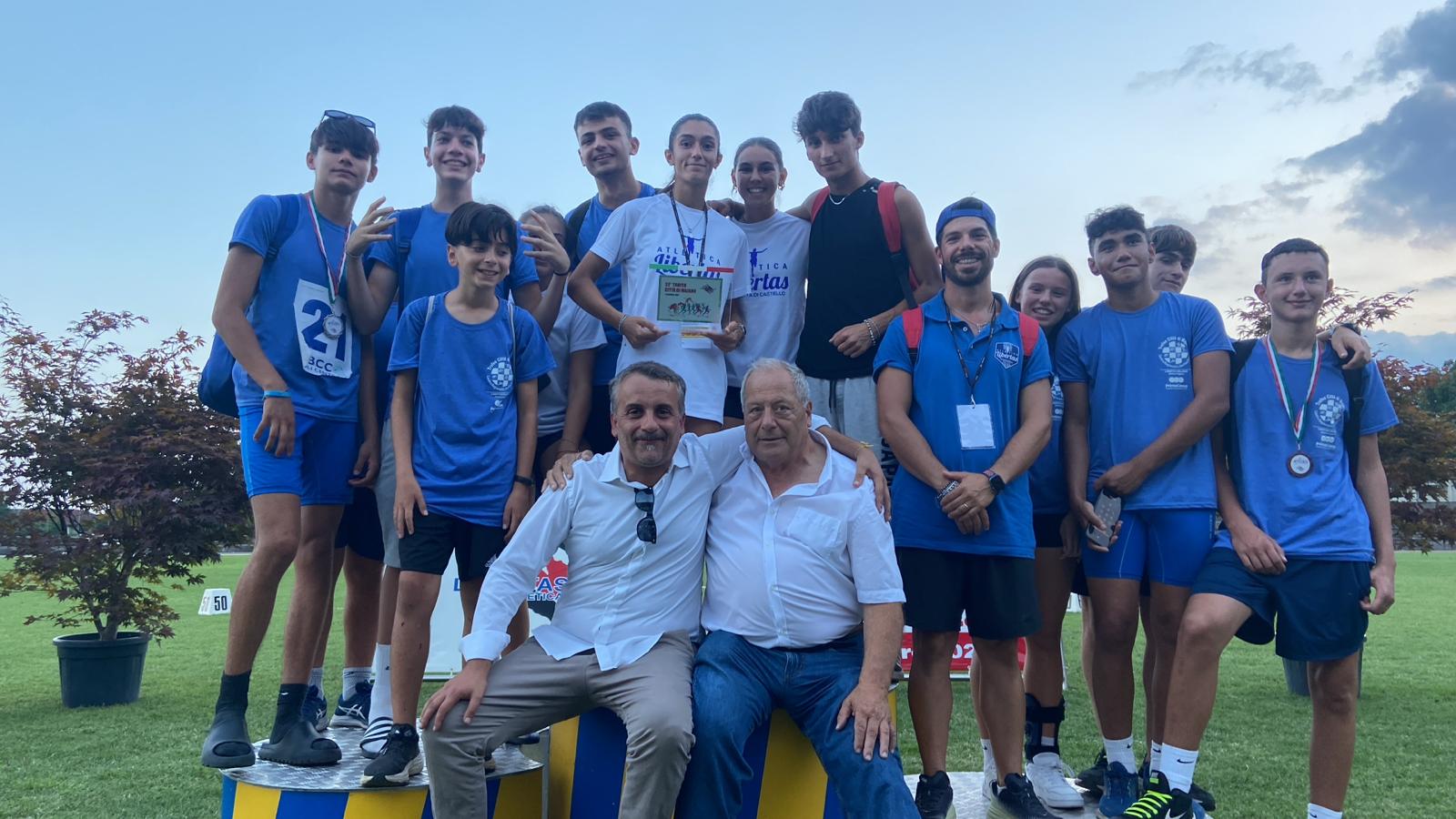 “Unite dalla figura di Angelo Zampini, l’eroe tifernate che più di 100 anni fa in Friuli Venezia Giulia fu protagonista di una strenua difesa della popolazione fino al sacrificio della vita che gli è valso la decorazione con la medaglia d’onore interforze, e dal primo gemellaggio della storia della nostra municipalità, Città di Castello e Majano sono ora legate anche dallo sport”. E’ quanto dichiara l’assessore allo Sport Riccardo Carletti, che, in rappresentanza del Comune tifernate, ha accompagnato l’Atletica Libertas del presidente Ugo Tanzi, nella duplice veste anche di consigliere comunale, al 32° Trofeo Città di Majano, la manifestazione internazionale giovanile di atletica leggera che ha visto a partecipazione di circa 600 atleti provenienti da tutta Italia e anche da Slovenia, Polonia e Croazia. “Insieme ai giovani di una delle società sportive più importanti e gloriose della nostra città, abbiamo avuto l’onore e il privilegio di partecipare per la prima volta a una manifestazione bellissima e davvero prestigiosa”, spiega Carletti, nel ringraziare il Comune di Majano e l’ASD Libertas Majano per il gradito invito e per la calorosa accoglienza. “Davvero abbiamo potuto toccare con mano quanto la figura di Angelo Zampini sia amata dalla comunità di Majano e quanto siano profondi i sentimenti di affetto e unione che ci legano e che abbiamo avuto il grande piacere di poter ricambiare e rinnovare con la nostra visita”. “Lo sport, sul quale nella nostra città investiamo tanto per offrire opportunità a tutti i cittadini e per favorire la crescita sana delle nuove generazioni, è un meraviglioso strumento di connessione e condivisione tra realtà diverse e comunità lontane, che ci ha permesso di creare un ulteriore buon motivo per ritrovarci e rafforzare il legame storico creato da Angelo Zampini tra Città di Castello e Majano”, evidenzia Carletti, che preannuncia la volontà dell’amministrazione comunale e dell’Atletica Libertas di ricambiare quanto prima l’invito ricevuto. L’Atletica Libertas ha partecipato al 32° Trofeo Città di Majano con 15 giovani, accompagnati dal tecnico Paolo Tanzi, che hanno ben figurato al cospetto di coetanei provenienti da tutta Italia e dall’Europa. Il miglior risultato è stato quello di Giacomo Palmi, che ha conquistato il secondo posto nel salto in lungo.
