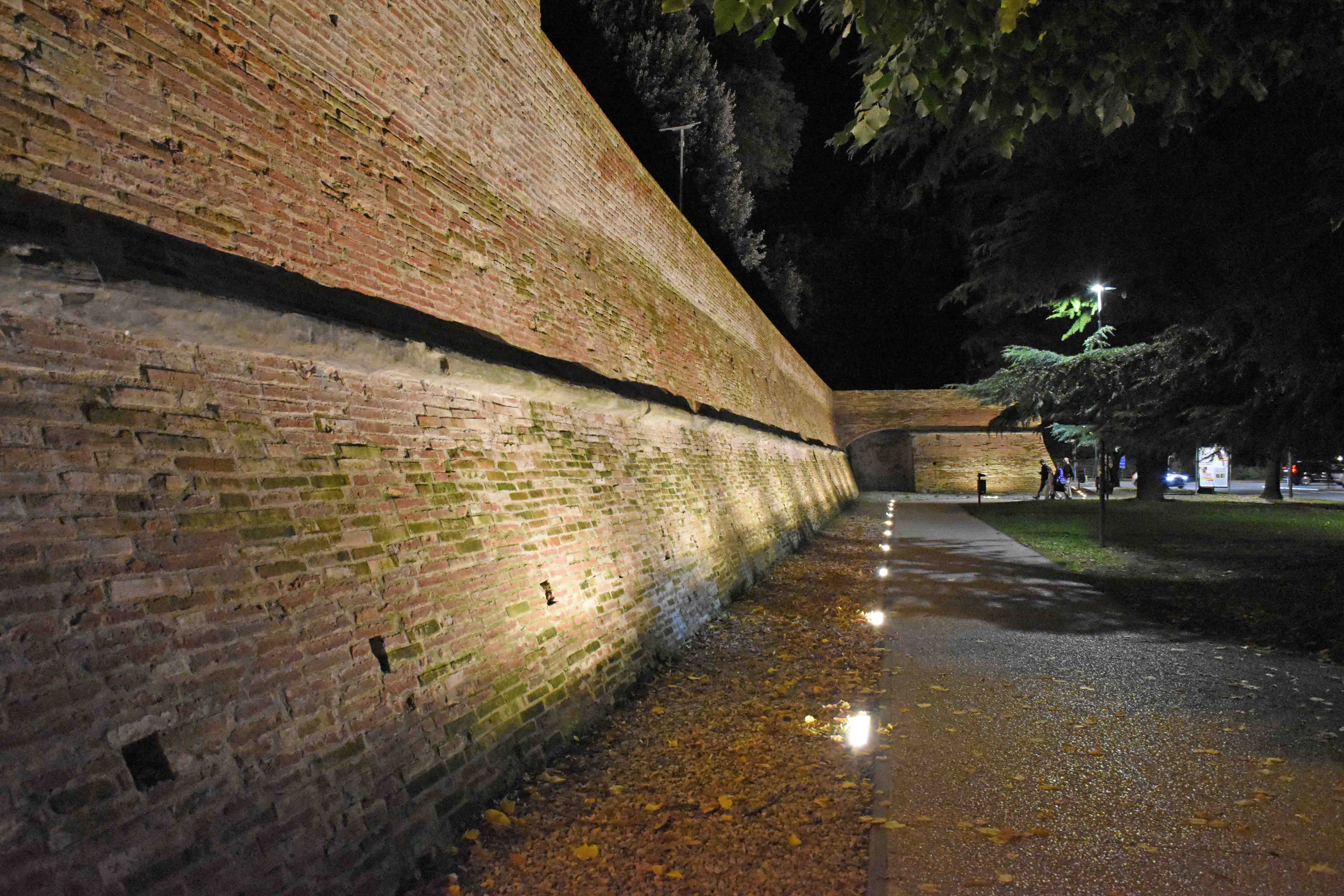 Città di Castello regala a chi frequenta il suo centro storico una cartolina notturna ancora più suggestiva e affascinante. Con l’accensione dell’illuminazione monumentale sulle mura urbiche che circondano palazzo Vitelli a Sant’Egidio e la Palazzina Vitelli, l’amministrazione comunale ha messo la firma finale sull’intervento di restauro conservativo del tratto della cinta fortificata che si estende da piazza Garibaldi al Liceo Plinio il Giovane, riqualificando e valorizzando uno degli scorci più belli del cuore della città. L’attivazione dei fasci di luce che accompagnano la passeggiata lungo viale Vittorio Veneto e viale Armando Diaz ha suggellato i lavori da 1 milione e 500 mila euro finanziati con contributo regionale a valere sulle risorse POR-FESR 2014-2020, che sono stati ultimati a fine 2023. Realizzato con la posa di lampade a led alla base della cinta, il nuovo impianto di illuminazione è pensato per valorizzare angoli e porzioni della muratura, sia dei bastioni che dei tratti rettilinei. Particolare attenzione è stata riservata alla visibilità notturna della Palazzina Vitelli, con una luce dedicata che mette in risalto le linee architettoniche e il pregio degli affreschi della loggia. L’accensione dell’impianto è avvenuta sotto gli occhi del sindaco e della giunta, che con alcuni consiglieri comunali e i tecnici responsabili dell’ente, hanno ammirato per primi l’emozionante effetto delle luci e delle ombre disegnate dalle lampade sulle pietre, insieme ai cittadini incuriositi dall’improvvisa illuminazione di uno dei monumenti più cari alla comunità tifernate. “La storia della nostra città si identifica e si intreccia con le mura urbiche, un monumento molto amato dai tifernati, che sentiamo la responsabilità di custodire e valorizzare”, sottolinea l’amministrazione comunale. “L’intervento di restauro e l’illuminazione della cinta in un tratto tra i più belli e scenografici della città come quello tra Palazzo Vitelli a Sant’Egidio e della Palazzina Vitelli, risponde esattamente a queste finalità e si colloca nel solco degli interventi che, con importanti investimenti e un’imponente cantieristica, abbiamo disseminato in tutto il centro storico per riqualificare il patrimonio cittadino e migliorare i servizi alla collettività”, prosegue l’amministrazione. “A testimoniare l’attenzione per il patrimonio monumentale cittadino e a dare continuità all’opera di tutela delle mura urbiche – osserva l’ente – è anche l’intervento di restauro conservativo attualmente in corso nel tratto compreso tra il torrione di San Giacomo e porta San Giacomo, lavori da 1 milione di euro, eseguiti dalla Soprintendenza Belle Arti e Paesaggio dell’Umbria con un finanziamento del Ministero dei Beni e delle Attività Culturali e del Turismo, che portano a quasi 6 milioni di euro l’investimento complessivo sostenuto finora per il restauro delle mura urbiche di Città di Castello”. Iniziato nel 2003 nel tratto del Cassero con opere per 1 milione 291 mila euro, il recupero della cinta muraria è proseguito nel 2006 con il tratto della sede dell’ex Comunità Montana Alta Valle del Tevere per 150 mila euro e con il tratto di porta San Giacomo nel 2008 per 700 mila euro di investimento, fino agli ultimi cantieri: nel 2009 ai Frontoni, per 930 mila euro finanziati dal Contratto di Quartiere II, nel 2015 a Porta Santa Maria Maggiore, con 233 mila euro del Programma Urbano Complesso (PUC) 2, nel 2021 Palazzo Vitelli a Sant’Egidio con 1 milione e 500 mila euro. L’intervento appena concluso tra Palazzo Vitelli a Sant’Egidio e la Palazzina Vitelli, progettato dagli ingegneri Marco Fontana, Francesca Barone e Lucio Gambetta e dagli architetti Vittorio Galanti e Carolina De Camillis, è stato realizzato dal Consorzio Integra di Bologna, che, sotto la direzione del responsabile unico di procedimento del Comune Benedetta Rossi, ha eseguito le opere previste attraverso la Cooperativa Archeologia di Firenze, una delle imprese più importanti in Italia nel settore del restauro di beni storici. I lavori hanno interessato una porzione di circa 400 metri. Alla preliminare rimozione della vegetazione che con le radici si insinua all’interno delle pietre, sono seguite opere di consolidamento, messa in sicurezza e restauro statico delle porzioni pericolanti, con la ricomposizione degli elementi sommitali per regolarizzare la superficie, proteggere il muro sottostante e consentire lo scorrimento delle acque. Gli interventi sono stati effettuati con la ricollocazione dei mattoni esistenti e di quelli caduti ai piedi delle mura, con l’aggiunta, laddove necessario, di mattoni fatti a mano, vecchi, di recupero, dalle caratteristiche complessive affini a quelli originari. Nella zona del bastione in corrispondenza della collinetta boscosa interna al giardino di Palazzo Vitelli a Sant’Egidio sono state effettuate alcune opere specifiche: la rimozione degli alberi collocati sui bordi che danneggiavano le mura con le radici; l’installazione di micropali sulla collinetta per contenere la spinta del terreno e scaricare dal punto di vista statico la pressione sulla scalinata; la realizzazione di nuovi servizi igienici a disposizione degli utenti del parco nei locali dell’ex caldaia del palazzo. A completare l’intervento è stata la sistemazione del percorso pedonale esistente e la valorizzazione della cinta con la realizzazione dell’impianto di illuminazione monumentale a led.