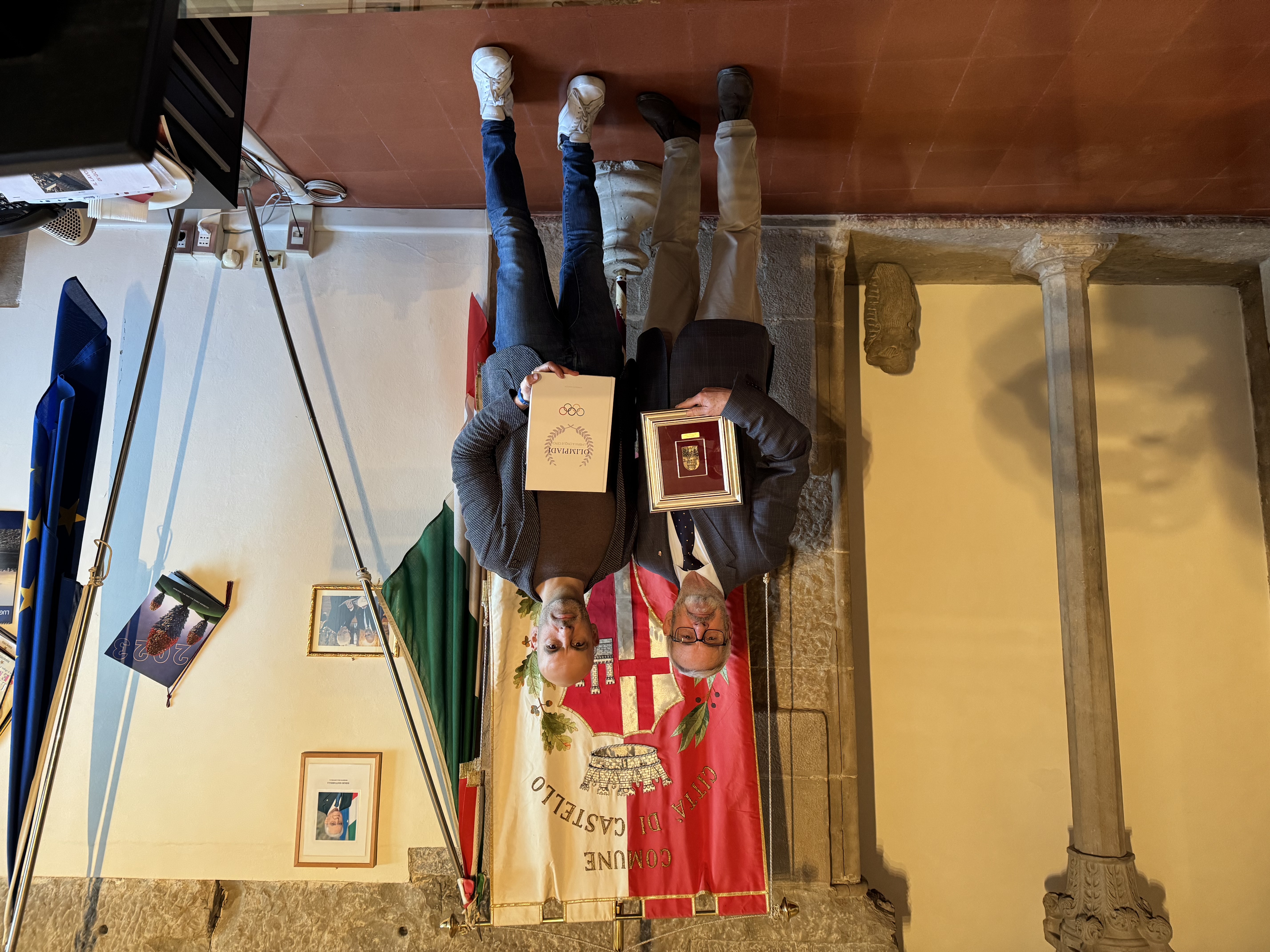 Il sindaco, Luca Secondi, ha ricevuto il presidente del Coni regionale Umbria, Domenico Ignozza, giunto a termine del terzo mandato e del quadriennio olimpico 2021/2024. Nel corso del cordiale incontro presso la residenza municipale il primo cittadino tifernate ha ringraziato il generale Ignozza e con lui tutto il consiglio uscente del Coni e le federazioni sportive per il grande lavoro svolto al servizio delle comunitą locali e i praticanti delle numerose discipline presenti sul territorio. “I risultati e la qualitą del mandato svolto per decenni alla guida del Coni provinciale e regionale sono la dimostrazione del riconoscimento per l’impegno e la dedizione con cui Domenico Ignozza ha svolto, in maniera impeccabile il ruolo di presidente. Da sempre ha dimostrato una particolare attenzione per i giovani e per il mondo della scuola, cercando di promuovere iniziative mirate per lo sviluppo dello sport. Nel corso di oltre trenta anni al vertice del Coni provinciale e regionale e degli ultimi tre mandati consecutivi ha inoltre intensificato i rapporti con le istituzioni a tutti i livelli, comuni in testa, spronandoci a progettare una impiantistica moderna e a portata di tutti indicando proprio nello sport, un fattore di crescita sociale diffusa e solidale”, ha concluso il sindaco Luca Secondi nel ricordare la vicinanza del presidente Ignozza nei momenti difficili della pandemia caratterizzati da provvedimenti di chiusura degli impianti e riduzione dell’attivitą sportiva a vari livelli, agonistici e non: “lui c’č sempre stato”. Prima dei saluti e della consegna di un opera artigianale sulla storia della cittą il sindaco ha ricordato la vocazione sportiva di Cittą di Castello, dove dati alla mano, un tifernate su tre scende in campo, in palestra, per strada o in acqua, Cittą di Castello ha consolidato anche nel 2024 un primato inedito di una comunitą appassionata di sport con 14mila praticanti impegnati a livello agonistico o amatoriale in una delle circa 40 discipline fruibili nel territorio attraverso oltre 100 societą. Nel ringraziare il sindaco Secondi, gli assessori allo sport degli ultimi decenni, Massimo Massetti e Riccardo Carletti, per la proficua e costante sinergica collaborazione, il Presidente del Coni regionale Umbria, Ignozza, ha dichiarato “di aver sempre trovato a Cittą di Castello ed in altotevere, terreno “fertile” per progettare manifestazioni e attivitą sportive in ogni ambito e di portare con se ricordi umani e professionali davvero straordinari”.