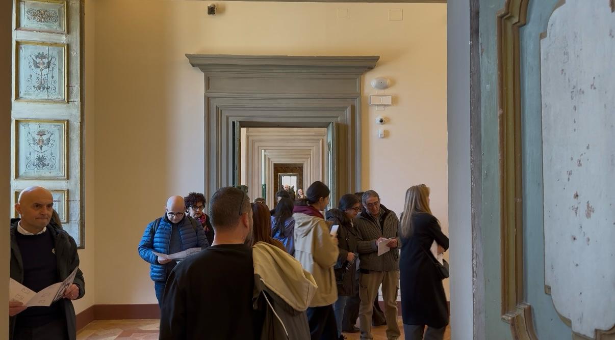 La bellezza dell’arte e la magia del palazzo: oltre settecento persone ieri in apertura di “METALLICA. Scultura in Italia 1947- 2025”, Città di Castello, Palazzo Vitelli a Sant’Egidio, in programma fino al 29 giugno 2025. Partenza con il “botto”, presenze record e consensi unanimi sulla portata e valore artistico-culturale della mostra che ha riunito a Città di Castello, il “gotha” della scultura, maestri dell’uso del metallo, nelle quindici sale rinascimentali di Palazzo Vitelli a Sant’Egidio. Ieri, in tanti, fin dalla apertura e poi per tutto il pomeriggio hanno accolto l’invito degli organizzatori, l’Associazione Palazzo Vitelli a Sant’Egidio, la “Fondazione Palazzo Albizzini Collezione Burri” (con il patrocinio e sostegno del Comune di Città di Castello) a visitare ad ingresso gratuito la rassegna, a cura del professor, Bruno Corà, unica nel suo genere, che spazia dal movimento spazialista di Lucio Fontana del 1947 a quello di Melotti, da Colla a Pomodoro, da Mirko a Cagli e ad altre sculture, fino ai maestri delle generazioni tuttora viventi, Isgrò, Ranaldi, Mainolfi, Salvadori, Rizzoli, Protti, Bassiri e altri. Ogni opera ha trovato collocazione in un percorso in cui si evidenzia la proteiforme identità del linguaggio della scultura italiana in metallo a fronte di altri scenari internazionali. In occasione dell’ultimazione dei lavori (oltre duemilioni di euro complessivi) che hanno ricondotto all’antico decoro il Palazzo Vitelli a Sant’Egidio, di proprietà della Fondazione Cassa di Risparmio di Città di Castello. La mostra annovera ventinove artisti, Fontana, Mirko, Marini, Uncini, Pomodoro, Colla, Baj, Cagli, Mattiacci, Spagnulo, Mannucci, Manzù, Consagra, Melotti, Pardi, Ranaldi, Bove, Paladino, De Chirico, Kounellis, Rizzoli, Protti, Isgrò, Bassiri, Mainolfi, Staccioli, Salvadori, Zazzera e Termini, le cui sculture si snodano nelle quindici sale del piano “nobile” di Palazzo Vitelli a Sant’Egidio, splendida dimora rinascimentale, (una vera e propria reggia principesca), tra i quattro grandi palazzi di famiglia con i quali i Vitelli, signori di Città di Castello, riconfigurarono urbanisticamente la città in senso rinascimentale, tra la fine del ‘400 e la metà del secolo successivo. Ieri dunque la città e non solo ha risposto “presente” all’invito degli organizzatori che ora, come dichiarato in sede di presentazione, hanno in programma ulteriori momenti di riflessione e dialogo con esperti e artisti di fama internazionale che si confronteranno sui temi proposti con le splendide opere in vetrina. “Oggi qui non è visitare solo l’attualità, qui è vedere questa continuità indissolubile, organica tra quella che è la grande storia rinascimentale e tutta l’arte contemporanea”, hanno dichiarato il Presidente della Fondazione Cassa di Risparmio di Città di Castello e Associazione Palazzo Vitelli a Sant’Egidio, Fabio Nisi ed il Presidente della Fondazione “Burri” e curatore della mostra, Bruno Corà, nel ringraziare le numerose persone che ieri di fatto hanno inaugurato la mostra, unitamente al sindaco, Luca Secondi e l’assessore alla Cultura, Michela Botteghi, che ne hanno evidenziato lo straordinario livello culturale ed artistico proposto che rende merito alla città crocevia di diversi periodi storici in continuità fra loro. Grazie a tutti coloro che a vari livelli di responsabilità istituzionale e gestionale, privati compresi c’hanno lavorato.”