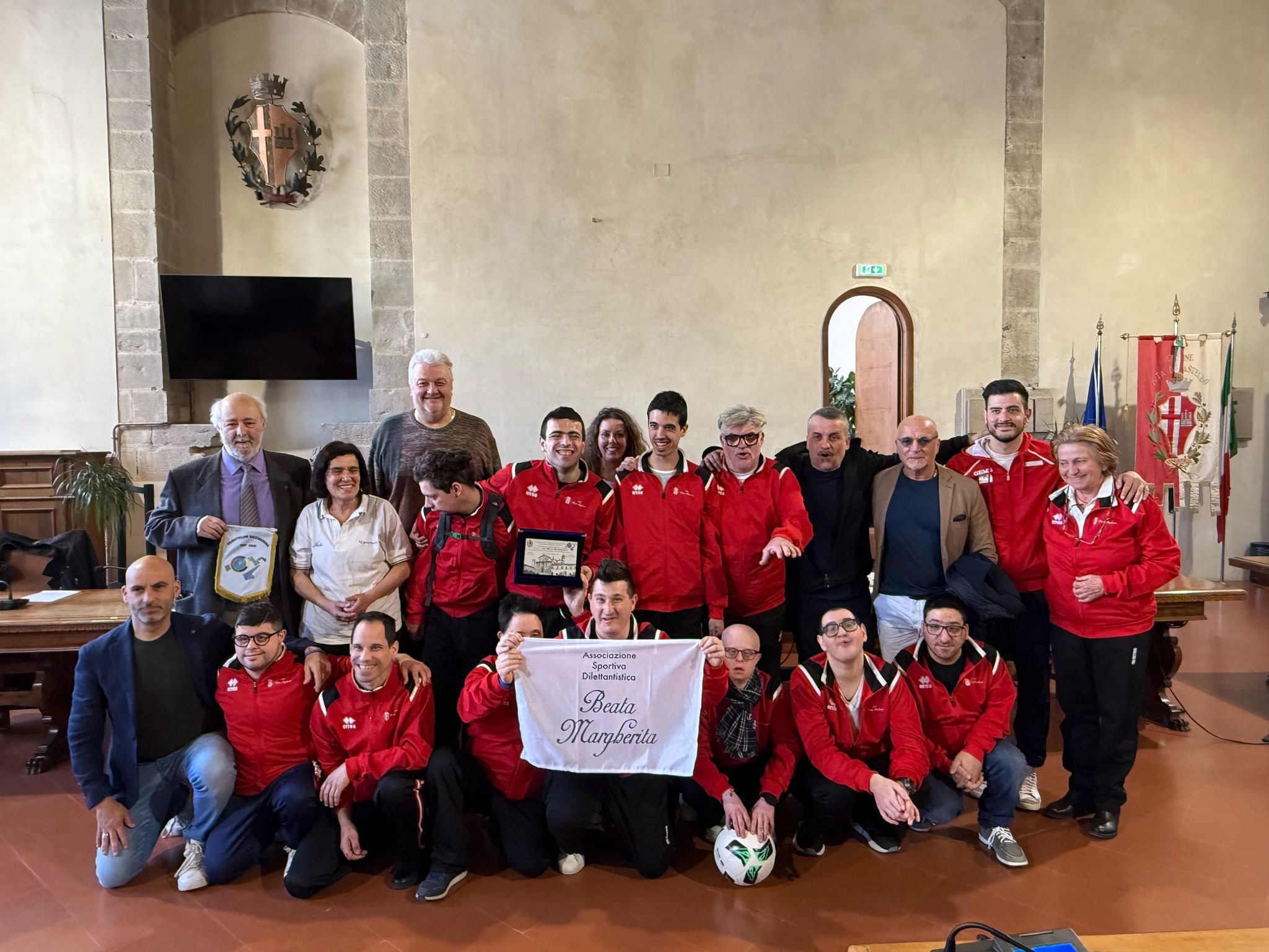 Campioni di fair play e solidarietà’ in campo premiati oggi in comune con una targa ufficiale. Sono i ragazzi della squadra di calcio a 5 dell’Asd “Beata Margherita” che lo scorso mese di marzo si erano resi protagonisti di un bellissimo gesto di sportività e altruismo prima dell’incontro di campionato FISDIR Organizzato dalla Federazione Italiana Sport Disabilità Intellettiva Relazionale, con la Pantera di Umbertide, prestando alla incompleta squadra avversaria un proprio tesserato, che alla fine della gara è risultato essere determinante per il risultato finale. La gara si è infatti conclusa 5 a 2 per la “Pantera” all’insegna di sorrisi e strette di mani, il bello dello sport, di come dovrebbe realmente essere e talvolta non lo è anzi. “Un gesto che per noi da sempre rappresenta la normalità e la vera essenza delle nostre attività in ambiti sportivi e sociali diversi. Tendere la mano aiutarsi devono venire prima di tutto. In questo caso tutti insieme abbiamo deciso di buon grado di prestare un nostro giocatore agli avversari per affrontare la gara in maniera equilibrata con il sorriso. Ci saranno alte occasioni per rifarsi”, hanno dichiarato la presidente, Gabriella Piaggesi e la professoressa Daniela Bambini, direttore tecnico della gloriosa società tifernate “pioniera” delle attività sportive rivolte alle persone con disabilità da sempre in prima linea nel promuovere i valori sani delle competizioni, questa mattina presso la sala del consiglio comunale nel ricevere la targa ufficiale che comune e Panathlon Club Valtiberina hanno deciso di consegnare alla squadra, ai dirigenti, tecnici e tutto lo staff della società simbolo di fair play e solidarietà. Accanto a loro i veri protagonisti, i ragazzi felici e orgogliosi di tanta attenzione, assieme al responsabile del gruppo calcio a 5, Giacomo Cacciatori ed al Presidente della Cooperativa “La Rondine”, Luciano Veschi prima della foto di rito: “la decisione di prestare alla squadra avversaria un proprio compagno per consentire il regolare svolgimento della gara è stata presa dai ragazzi con grande entusiasmo”. Il Campionato FISDIR di Calcio A5 rappresenta un’occasione significativa in cui i ragazzi con disabilità possono dimostrare il loro talento, la loro passione e il loro spirito di squadra. E’ un evento straordinario nel panorama sportivo italiano. Organizzato dalla Federazione Italiana Sport Disabilità Intellettiva Relazionale, ed il torneo promuove la partecipazione attiva di ragazzi con disabilità intellettiva, fornendo loro l’opportunità di mettere in mostra le proprie abilità calcistiche. La bella storia di solidarietà sportiva ed umana ha suscitato emozione e orgoglio ed il sindaco Luca Secondi, con gli assessori allo Sport, Riccardo Carletti e Politiche Sociali, Benedetta Calagreti l’hanno definita,“ un esempio straordinario di fair play e solidarietà che questi magnifici ragazzi hanno voluto mettere in campo in maniera concreta senza pensare al risultato. Davvero bravi e con loro chi li guida da anni con amore e competenza. La nostra città e’ orgogliosa di avere associazioni sportive e ce ne sono tante che portano avanti progetti ed iniziative di inclusione e solidarietà e l’Asd Beata Margherita è fra queste da sempre protagonista”. Accanto al comune anche il Panathlon Club Valtiberina con il suo Presidente, Giovanni Tasegian, affiancato dal delegato di zona del Coni Umbria, Simone Santi, che ha portato il saluto e l’apprezzamento incondizionato del Presidente, Domenico Ignozza, ha sugellato una giornata memorabile che rimarrà per sempre nel cuore e nella mente dei ragazzi. “Il Panathlon – ha sottolineato il Presidente Tasegian - non poteva mancare in questa occasione: era impossibile ignorare il gesto di alto valore morale sportivo compiuto da calciatori e dirigenti della squadra “ADS Beata Margherita” in quanto il nostro movimento, tra le sue finalità, si occupa di promuovere e diffondere la cultura dell’etica sportiva ispirata soprattutto al Fair Play. Con questa iniziativa, oltre a rendere onore ai protagonisti, si vuole sensibilizzare tutti i soggetti che a vario titolo sono coinvolti nello sport evidenziando che la pratica sportiva deve essere svolta con pari dignità nella vittoria e nella sconfitta. E’ anche intenzione del nostro Club consolidare i rapporti con il locale movimento degli sport inclusivi secondo quanto indicato nella carta presentata e sottoscritta al convegno nazionale “Sport è ...inclusione” tenutosi il 12 Ottobre 2024 all’Istituto Serafico di Assisi” in occasione del G7 “inclusione e disabilità”, ha concluso il Presidente. Da sottolineare che il comune di Città di Castello dal 2018 (ufficializzata con una cerimonia in comune dall’allora assessore allo sport ed i vertici di Coni e Pnathlon) ha deciso di apporre agli ingressi di alcuni impianti sportivi le targhe etiche del Panathlon con i principi della dichiarazione di Gand, una carta adottata dall'Onu, dall'Unesco, dalla Fifa, dalla Fiba e dal Coni, che tutela e promuove nelle famiglie, nella società e nella scuola i sani valori dello sport, della correttezza dei comportamenti, del rispetto delle regole e della persona. Grazie all’adesione dell’amministrazione tifernate, sono oltre le strutture comunali del territorio, più palestre scolastiche e campi da gioco gestiti da associazioni, nei quali sono state affisse le tabelle che riporteranno due decaloghi: il “Diritto del Ragazzo nello Sport” e i “Doveri dei Genitori nello Sport. “ Ecco la formazione di calcio a 5 dell’Asd “Beata Margherita”: Salvatore Ascione, Mattia Melelli, Matteo Guerri, Alessio Vauthier, Mirko Pietosi, Luca Varzi, Mattia Ciribilli, Marco Bini, Giorgio Ascani, Gino Landi ed Alessio Leone.