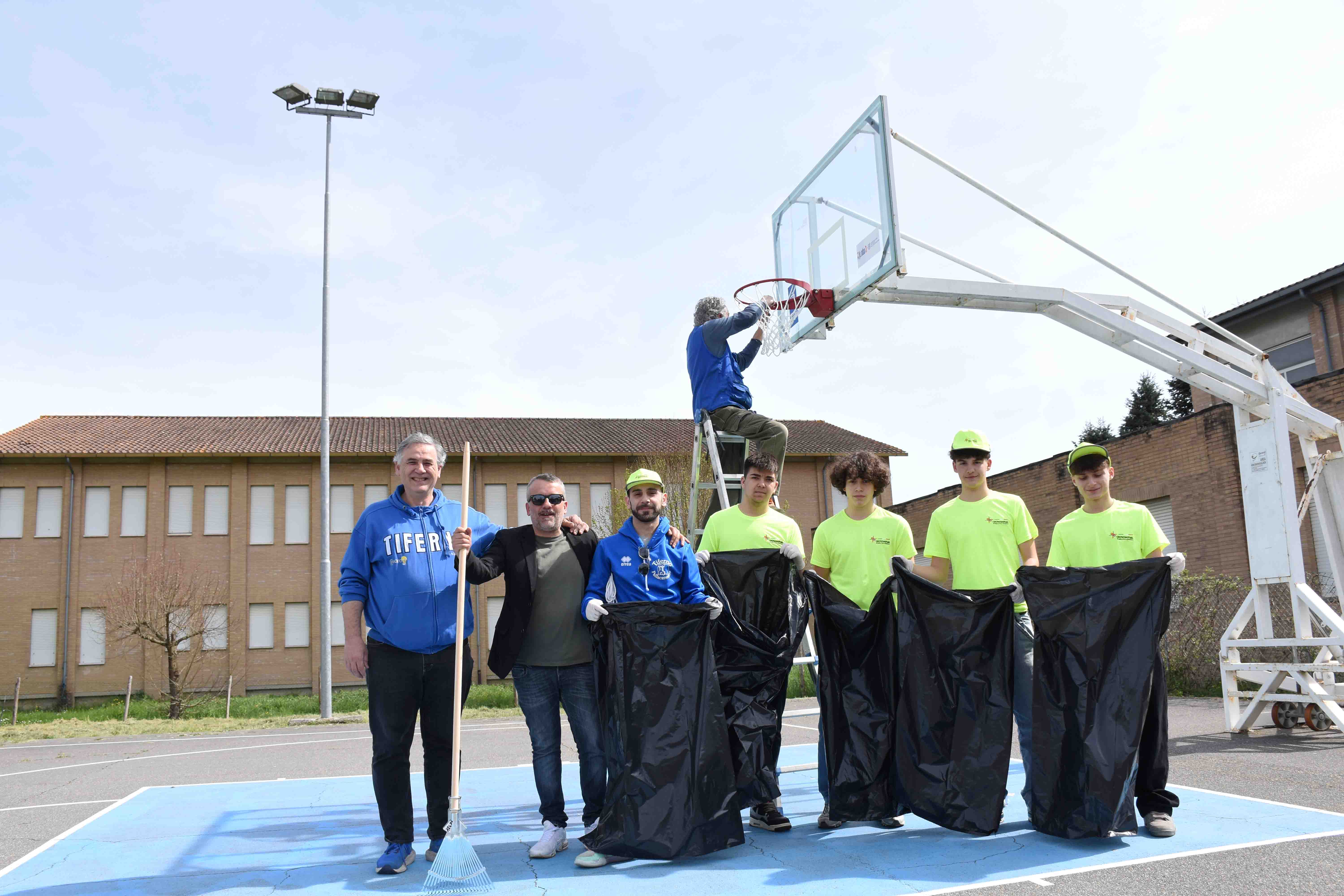 Operazione canestri e tabelloni "puliti" dei dirigenti e giocatori della Tiferno Pallacanestro assieme ai loro genitori