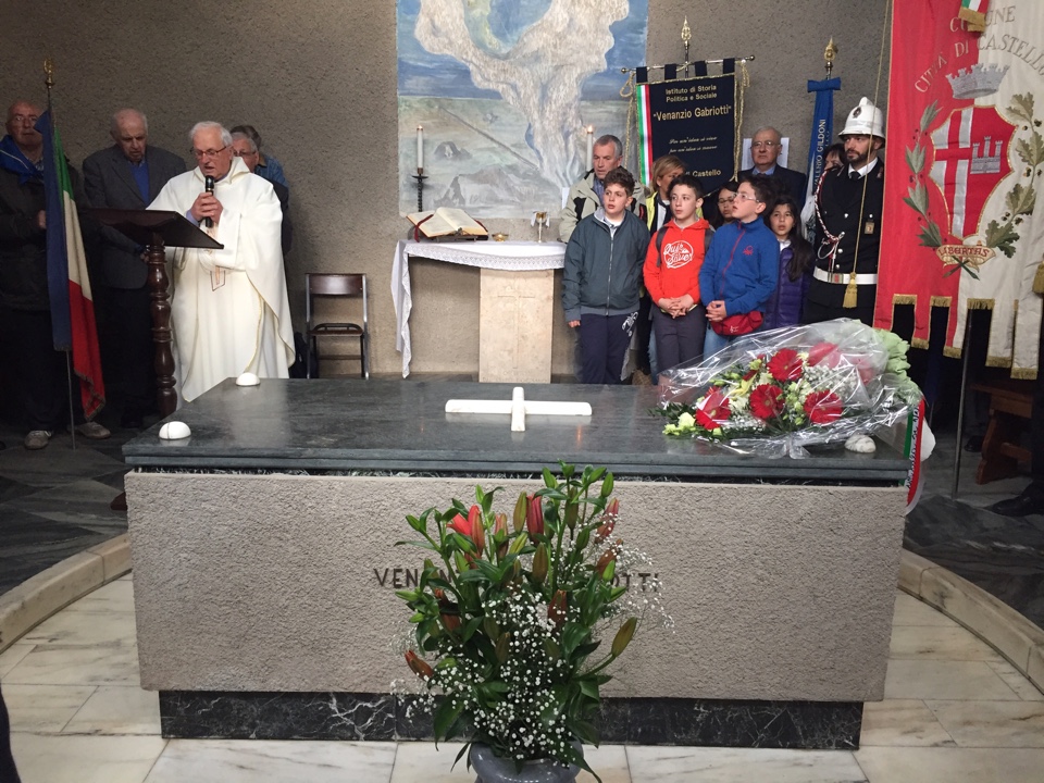Gemellaggio tra Città di Castello e Giustino nel nome di Venanzio Gabriotti: c’è qualcosa, anzi qualcuno a unire due luoghi apparentemente senza punti di contatto ed è la figura di Venanzio Gabriotti, martire della Resistenza, che come ufficiale della Prima Guerra Mondiale fu di stanza nella provincia di Trento, allora territorio austroungarico, a Giustino. Nonostante fosse a capo di una truppa dell’esercito di occupazione, aiutò la popolazione allo stremo, allestendo un refettorio presso la scuola per sfamare i bambini e provvedendo anche alle donne e agli anziani. Un gesto di generosità dunque è il trade d’union tra le due città e oggi, nel 72° anniversario della fucilazione di Venanzio Gabriotti, il gemellaggio tra Città di Castello e Giustino, in nome dell’Italia unita e democratica, è stato sancito dalla presenza, per la prima volta, di una delegazione del Comune di Giustino e della scuola elementare intestata a Gabriotti. La giornata è cominciata, come vuole la tradizione, presso la Cappella dei volontari della libertà, nel Famedio del Cimitero monumentale, con la messa officiata da don Giuseppe Tanzi e la partecipazione dei bambini di Giustino e del sindaco del Comune. Quindi la cerimonia si è spostata presso il Greto della Scatorbia dove Gabriotti su fucilato da un plotone di fascisti all’alba del 9 maggio 1944. Sulle note di “Bella ciao”, intonata dai bambini della scuola di Cerbara del Secondo Circolo didattico, è stata deposta una corona al monumento che ricorda il sacrificio e un alunno ha ricordato le ragioni per cui Venanzio Gabriotti, dopo 72 anni, è ancora un esempio di generosità, altruismo e amore per la patria. Il passaggio per l’omaggio floreale presso l’aiuola di Viale Vittorio Veneto, la casa dove Gabriotti visse in via San Florido e la torre civica di Piazza Gabriotti hanno punteggiato l’itineraio, fino alla tappa finale nella Sala del Consiglio comunale di Città di Castello, dove i bambini del Primo Circolo San Filippo, che hanno ospitato la delegazione trentina, hanno introdotto con canti la premiazione del concorso dell’Istituto di storia politica e sociale “Venanzio Gabriotti” che quest’anno verteva su “I giovani di tanti anni fa”. Premiate ex aequo per la classe terza della scuola primaria La Tina, per la primaria di Morra Badia Petroia Istituto comprensivo Burri, la primaria S. Leo Bastia classi III , IV e V, la primaria S. Filippo classe VA e VB, il Liceo o Plinio il Giovane con Giosuè Banconi della classe II C, la classe II A dell’Istituto Franchetti Salviani, la classe V del Liceo S. Francesco di Sales, l’Oratorio S. Giovanni Bosco. “Una menzione speciale” sottolinea Alvaro Tacchini, presidente dell’Istituto, promotore con Amministrazione comunale ed Anpi della manifestazione, va alla classe II della scuola Pieve delle Rose e ai 4 studenti del Centro di formazione Bufalini che hanno svolto il tema con particolare impegno e approfondimento”. (Allegate foto)