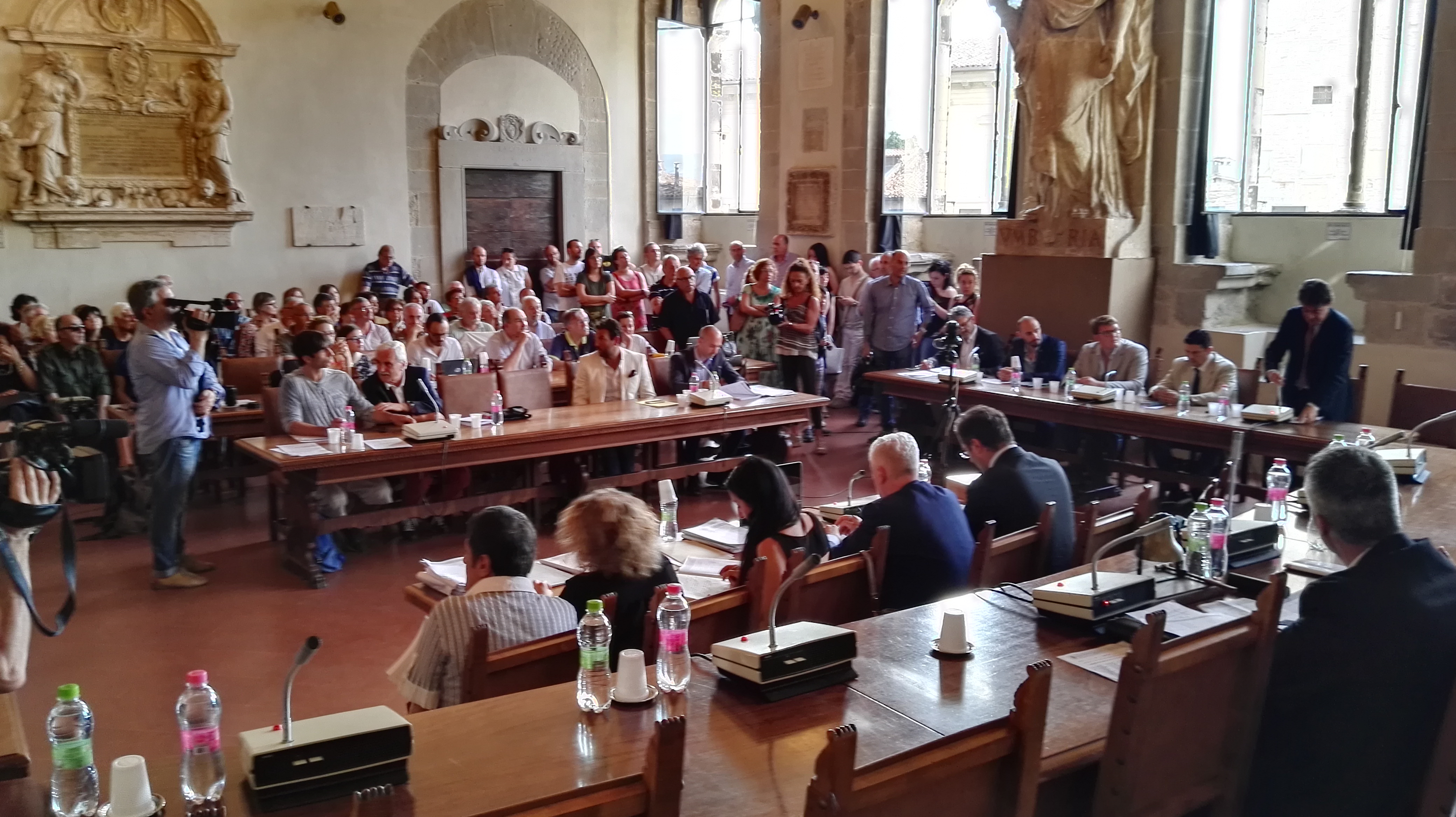 Seduta di mezza estate per il Consiglio comunale di Città di Castello: venerdì 22 luglio alle 17.30 l’assemblea si riunirà per esaminare alcuni punti all’ordine del giorno tra cui la composizione delle commissioni consiliari permanenti. Si tratta di quattro organismi, uno per gli Affari istituzionali, uno per la Programmazione economica, uno per i Servizi ed un altro per l’Assetto del territorio. I consiglieri dovranno anche procedere ad individuare la commissione consiliare dei giudici popolari e i membri della commissione di controllo e garanzia a norma di Statuto e di Regolamento del Consiglio. E’ questo infatti il primo punto della seduta dopo le comunicazioni del sindaco e prima della discussione sugli indirizzi di nomina, designazione e revoca dei rappresentanti del comune presso enti, aziende ed istituzioni. In scaletta la determinazione dell’importo dei gettoni di presenza per i consiglieri e per i componenti esterni delle commissioni comunali e l’indennità di funzione del presidente del consiglio. Quindi si partirà con i documenti presentati dai consiglieri: in un’interrogazione il capogruppo di Forza Italia Cesare Sassolini chiede chiarimenti sulle denunce per falsi contratti di lavoro per extracomunitari; Andrea Lignani Marchesani, capogruppo di Fratelli d’Italia, in un’altra interrogazione, vuole informazioni sulla procedura di gara per la cessione delle quote di partecipazione pubblica di Polisport. Il capogruppo del PD Gaetano Zucchini ha presentato un’interpellanza sull’esposizione del Gonfalone in consiglio comunale durante le sedute insieme alla presenza delle polizia urbana durante le attività. Zucchini chiede anche il miglioramento della microfonazione e dell’amplificazione utilizzate nel dibattito. Ultimo punto all’ordine del giorno una mozione del capogruppo Roberto Colombo e del consigliere Vincenzo Bucci di Castello Cambia sull’istituzione di una specifica commissione di inchiesta con l’obiettivo “di acquisire tutte le informazioni documentali e gestionali di Sogepu”.