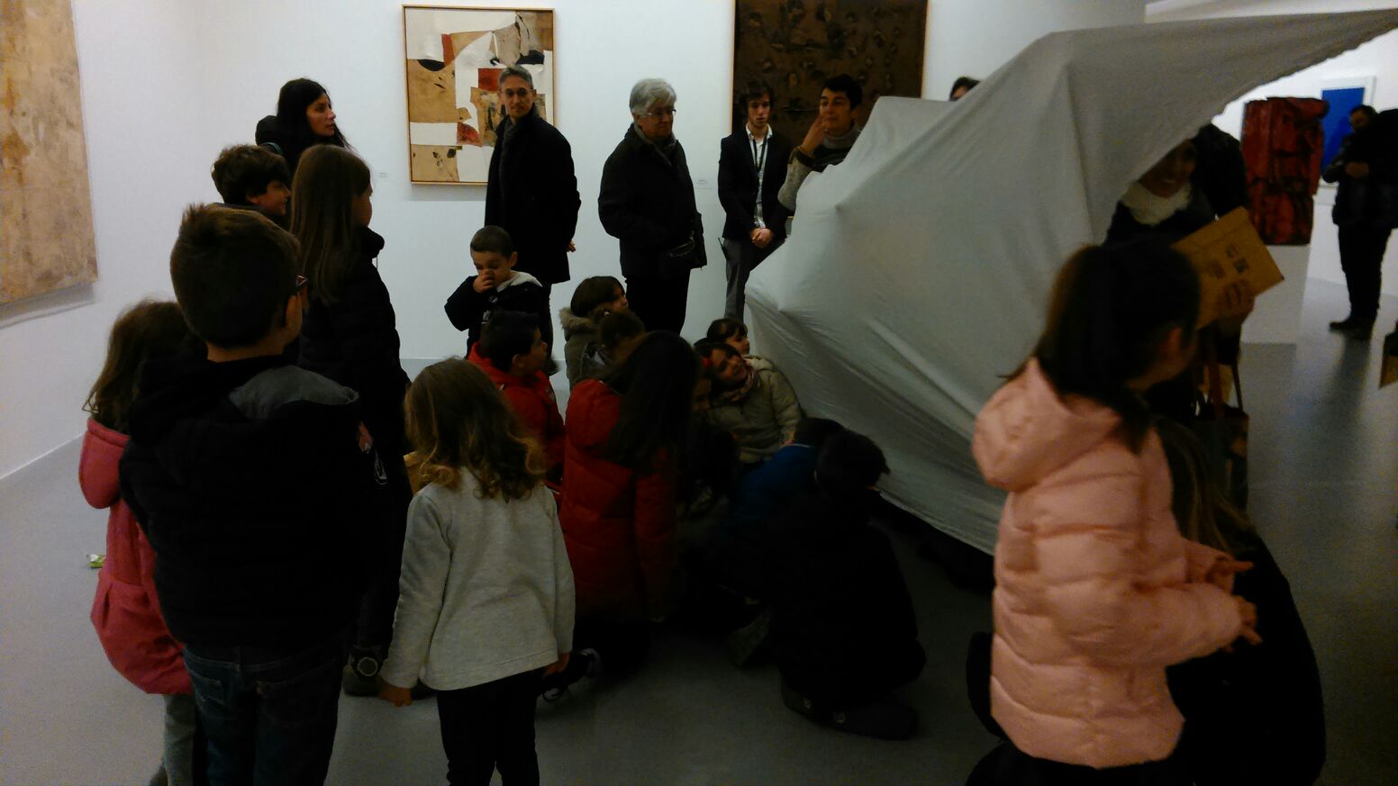 Genitori e figli per un giorno alla scoperta della magia di Burri e dei più grandi interpreti internazionali dell’arte contemporanea. E’ accaduto ai 60 bambini e adulti che, in collaborazione con il Comune di Città di Castello e la Fondazione Palazzo Albizzini Collezione Burri, hanno condiviso il progetto “Family Art Day” promosso dal 2° Circolo di Umbertide insieme all’Istituto Comprensivo “Alberto Burri” di Trestina e all’associazione “Artea”, che ha avuto per teatro gli Ex Seccatoi del Tabacco. Per una volta sono stati mamma e papà ad accompagnare i figli alla scoperta delle opere e della creatività rivoluzionaria del maestro tifernate nella mostra “Alberto Burri: lo spazio di materia tra Europa e Usa”, un percorso espositivo che sta riscuotendo molto interesse nel mondo dell’arte e grande apprezzamento da parte del pubblico. Insieme ad Artea l’approccio all’esposizione è stato divertente e curioso, con attività proposte in maniera dinamica e attiva. Bambini e adulti sono stati coinvolti nell'incontro-scontro tra i colori all’interno della sala del bianco e nero e alla ricerca dell'armonia delle forme e dei colori di fronte al grande ciclo del Sestante. Avvicinarsi a Burri, Pollock, Fontana e agli altri “mostri sacri” dell’esposizone è stato in questo modo coinvolgente e davvero interessante, nello stile di Artea, che da sempre persegue l’intento di promuovere la cultura stimolando la curiosità piuttosto che trasmettendo semplicemente informazioni. Dando voce agli artisti e facendoli parlare delle loro opere e delle loro emozioni attraverso brevi testi che sono stati letti dai presenti, si è arrivati a scopre, ad esempio, che Scarpitta ispirò il Barone Rampante di Italo Calvino, che Fontana si lasciò suggestionare dai grattacieli di New York, che Rauschenberg andò a conoscere Burri nel suo studio romano e persino a cogliere l'importanza del gesto nella pittura di Pollock attraverso il gioco dei fili di lana. Dopo questa esperienza, Artea continuerà nel percorso di promozione del patrimonio artistico e culturale del territorio con l’appuntamento di marzo presso la Pinacoteca comunale di Città di Castello, dove bambini e genitori potranno scoprire l'arte di Nicola Filotesio, importante pittore di Amatrice.