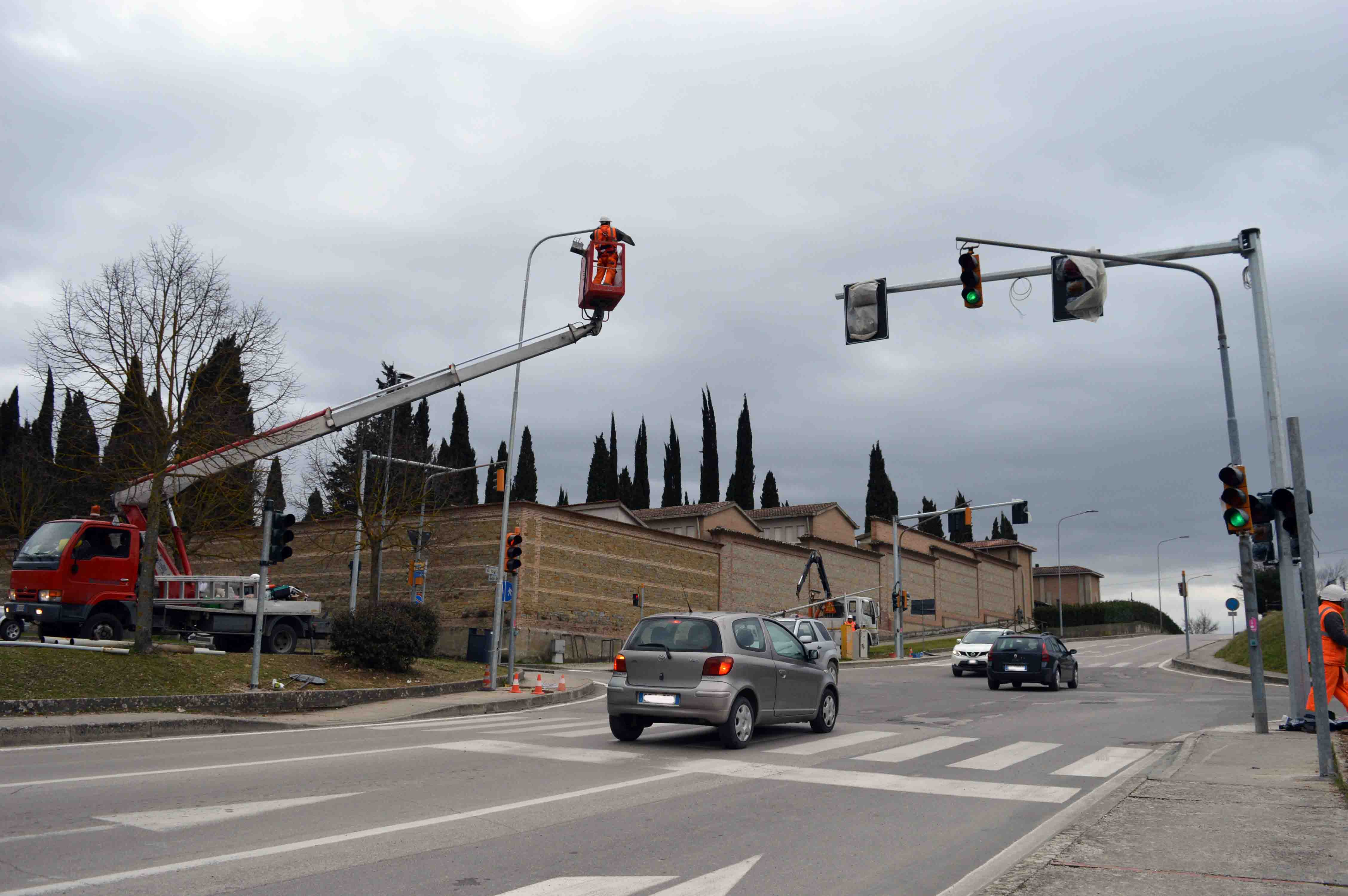 Sarà l’impianto semaforico all’incrocio tra via delle Terme e via Palmiro Togliatti a entrare in funzione per primo per la disciplina del traffico tra quelli che il Comune sta sostituendo nell’ambito dell’intervento di adeguamento normativo di tutti dispositivi presenti nel capoluogo. Per consentire la rimozione dei vecchi pali e l’attivazione del nuovo sistema, il comando della Polizia Municipale ha stabilito con un’ordinanza che da domani, primo marzo, fino a venerdì 3 marzo l’impianto attualmente in funzione verrà spento e il transito dei veicoli verrà regolamentato con l’istituzione di sensi unici alternati a seconda delle diverse fasi dei lavori e la possibile interdizione temporanea della circolazione qualora ciò fosse richiesto dalla garanzia della sicurezza dello svolgimento delle operazioni. La gestione del traffico, con la predisposizione dell’apposita segnaletica, sarà curata dal personale della società incaricata dei lavori, in coordinamento con i tecnici comunali e i vigili urbani. In corrispondenza dell’incrocio, verrà insediato anche un nuovo palo dell’illuminazione pubblica, con luci a led, in sostituzione di quello esistente. All’entrata in funzione dell’impianto nella zona del cimitero monumentale seguirà l’attivazione dei semafori all’incrocio tra via Pieve delle Rose e via Bruno Buozzi. Nell’ambito dell’intervento nel capoluogo, in viale Europa è stato acceso anche il nuovo sistema insediato nelle scorse settimane, al momento con il solo azionamento delle luce gialle lampeggianti per preparare gli automobilisti alla prossima attivazione delle lanterne.