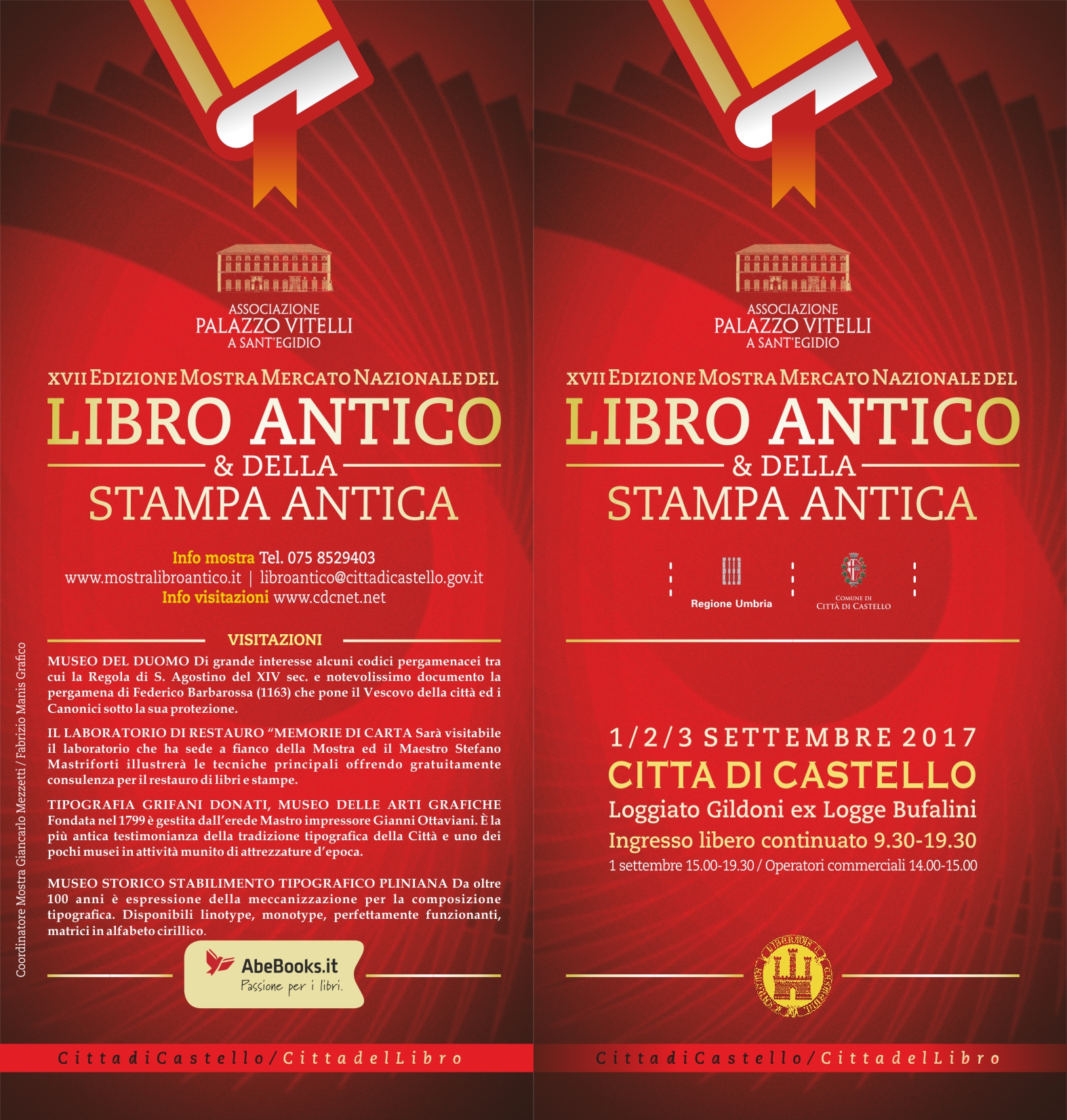Se i libri di carta sono a rischio di estinzione, incalzati dalla diffusione dei libri elettronici, un segmento di questa produzione rimane indenne dalla crisi dei media tradizionale è il libro antico, come dimostra il tutto esaurito che anche quest’anno ha già registrato, con un mese di anticipo, la Mostra del libro e della stampa antica di Città di Castello, in programma da venerdì 1 a domenica 3 settembre sotto il Loggiato Gildoni di Palazzo Bufalini.