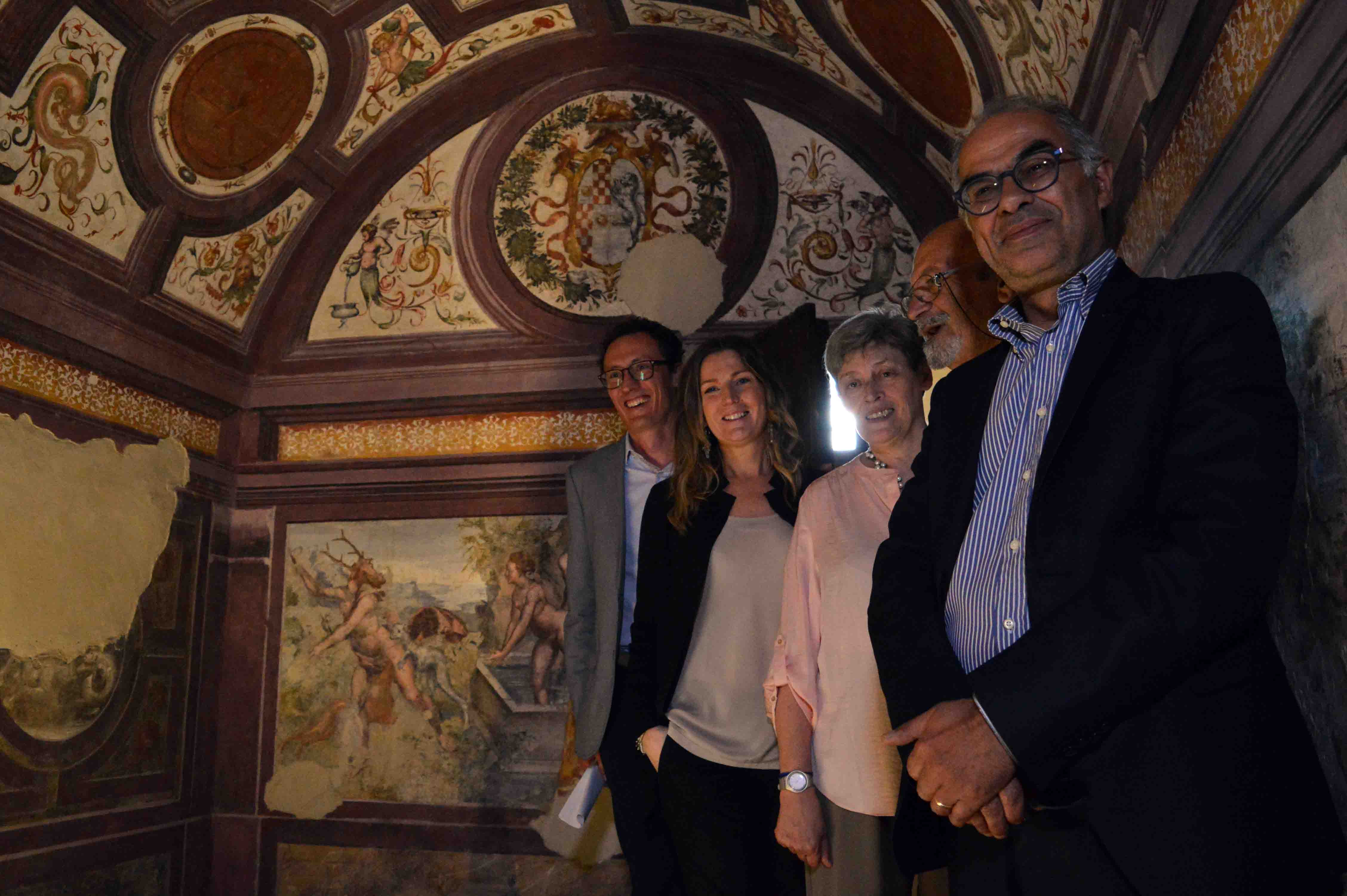 Durante l’anteprima per la stampa, la presidente del Rotary Silvia Mercati si è detta orgogliosa “del lavoro compiuto a nome di tutto il club per aver arricchito il nostro patrimonio artistico, dimostrando ancora una volta vicinanza e unione con la società locale. Ho saputo di questa stufetta, quasi per caso, grazie ad un amico, cultore dell’arte cittadina e artista lui stesso, Marco Baldicchi, ma da quando ho visto la bellezza dell’ambiente, ho fatto del suo recupero uno degli obiettivi della mia presidenza”. Come ha spiegato Maria Brucato, funzionario della Soprintendenza Archeologica Belle Arti e Paesaggio dell’Umbria, responsabile del procedimento di restauro, “sono rarissime le stufette conservate integralmente: ce ne è una a Castel Sant’Angelo e una nella Rocca dei Sanvitale a Fontanellato. Il recupero completo di questo ambiente e del suo apparato decorativo rende la Pinacoteca di Città di Castello un esemplare ancora più ragguardevole dell’architettura del Rinascimento”. La stufetta in realtà risulta ben nota agli esperti: è citata dal Vasari nel passo in cui si attribuisce l’ideazione del contenuto delle decorazioni di Palazzo Vitelli alla Cannoniera e lascia a Cristoforo Gherardi, il Doceno, l’esecuzione. Dal restauro le scene meglio conservate sono relative al mito di Leda e di Atteone mentre la pittura lungo il muro di entrata poco leggibile, erosa da un maggior impatto del passaggio delle persone, durante i secoli. Era il 1534 e le sale per i bagni caldi, a questo servivano le stufette, erano molto diffuse in ambiente romano, dove rappresentavano non tanto un segno di sfarzo quando di progressismo. E’ probabile che Angela Rossi di San Secondo Parmense e lo stesso Alessandro Vitelli, sensibile alle mode romane, ne abbiano voluto una per la propria dimora nuziale, ispirata a quella che il Parmigianino aveva decorato nell’analogo bagno a Fontanellato, dove torna il mito di Atteone e Diana, presente a Città di Castello. “Con il tempo - ha proseguito la Brucato - l’ambiente fu dismesso e cambiò destinazione. Tuttavia una parte importante delle decorazioni, grazie al lavoro compiuto dal restauratore Giuliano Guerri, sono venute alla luce e siamo riusciti a ricostruire la stufetta nei suoi tre elementi, la stanza della servitù con l’impianto idrico - poi diventata cappella - lo spogliatoio e la vasca o piscina in cui i Vitelli si immergevano”. Alcuni saggi di pulitura sulla stufetta in realtà furono compiuti nel 1983 in occasione della mostra Raffaello da giovane a Città di Castello - ha ricordato Giuliano Guerri: “allora eseguii i primi interventi ed ora dopo oltre 30 anni, sono tornato per completare il lavoro. È stato un impegno durato tre mesi ma di grande soddisfazione perché gli affreschi emersi rendono un’idea del pregio del bagno”. Il vicesindaco e assessore alla Cultura Michele Bettarelli ha ringraziato il Rotary “perché la Pinacoteca si consolida nella vocazione di specchio e scrigno dell’identità rinascimentale cittadina, un’eccellenza di tutto rispetto, che può rappresentare un attrattore turistico e un presidio culturale per tutta la Regione, di cui, non a caso, è il secondo museo per importanza. Svilupperemo tutte le potenzialità di questo luogo sia implementando le collezioni, ad esempio con il progetto della Raccolta civica, sia inserendoci in eventi internazionali di cui siamo parte, come il Cinquecentenario di Raffaello, che metterà la Pinacoteca al centro del nostro messaggio esterno”. Anche il sindaco Luciano Bacchetta ha ringraziato il Rotary, sottolineando come “la restituzione della stufetta sia un momento di valorizzazione anche per la storia di Città di Castello, che al tempo dei Vitelli, fu centro rinascimentale di prima importanza. L’eredità di questo periodo è ancora attuale e non ancora completamente espressa. La ricetta per far funzionare le cose, come in questo caso, è lavorare in sinergia con le forze vive della città”. Nel pomeriggio di venerdì 15 giugno è previsto il taglio del nastro alla presenza delle autorità e un convegno che illustra le caratteristiche della stufetta, le cui sezioni sono state analizzate e ricostruite dall’architetto Francesco Rosi. Per chi volesse saperne di più, il Catalogo ufficiale della Pinacoteca offre un’approfondita trattazione della stufetta nel capitolo dedicato al Doceno.