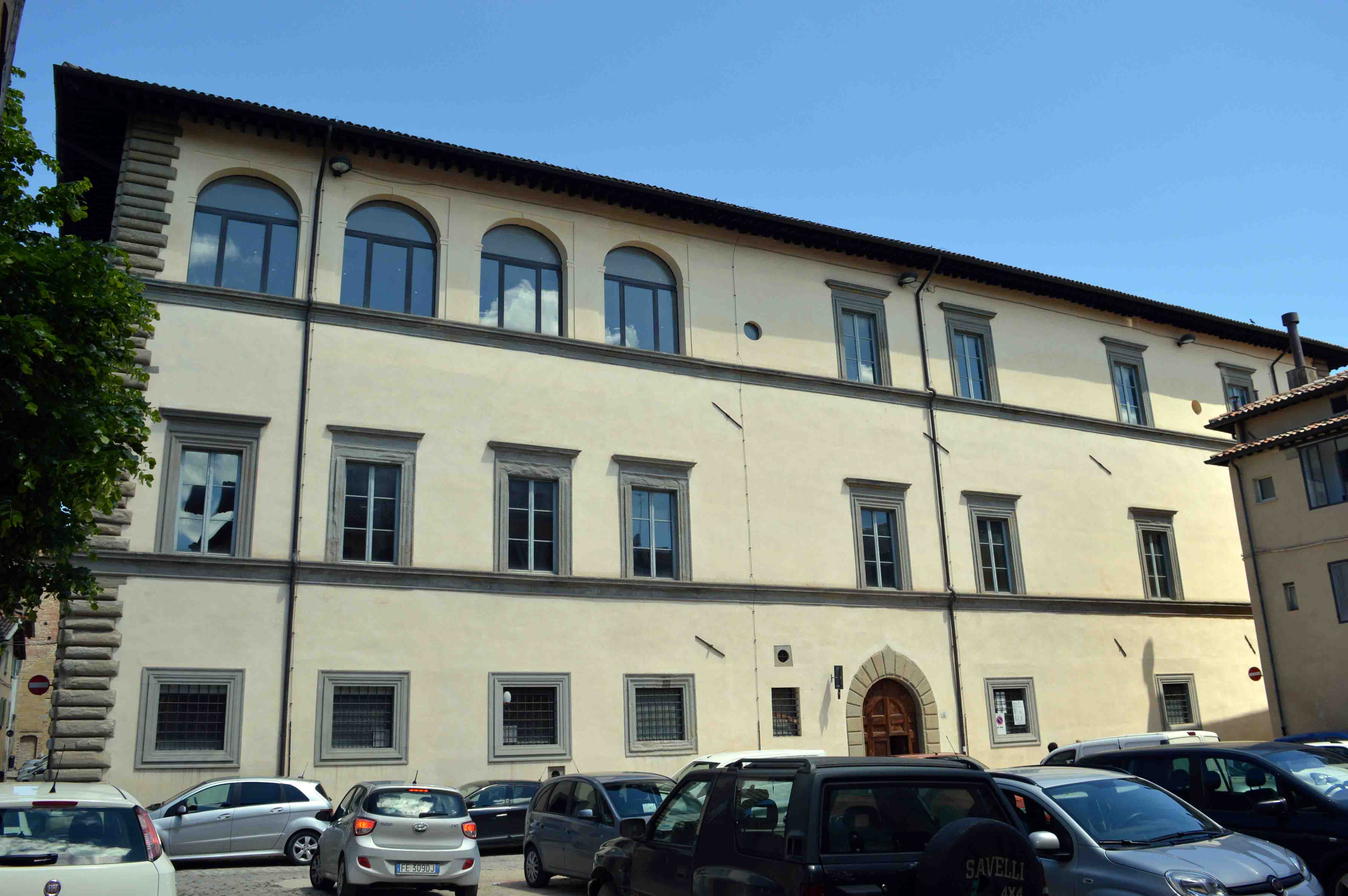 La Biblioteca di Palazzo Vitelli è più vicina: stamattina, sabato 19 maggio, si è svolto il sopralluogo dal consiglio comunale di Città di Castello al cantiere di Palazzo Vitelli a San Giacomo, sede della nuova Biblioteca, giunto alle fasi finali. “Un obiettivo perseguito da tempo ed ora a portata di mano” hanno ribadito il vicesindaco e assessore alla Cultura Michele Bettarelli e l’assessore ai Lavori Pubblici Luca Secondi, durante la visita tecnica e funzionale all’edificio, che ormai ha assunto l’aspetto definitivo tanto da permettere a dirigenti dei Settori interessati, Paolo Gattini e Marina Vaccari, al responsabile dei Servizi Bibliotecari Alba Ghelli e al progettista Tiziano Sarteanesi di illustrare anche la destinazione delle varie sale. Presenti l’assessore Massimo Massetti e il presidente del Consiglio comunale Vincenzo Tofanelli. La nuova Biblioteca sarà un contenitore di grande pregio, con impianto e decorazioni del Cinquecento, da circa 3000 metri quadrati su tre livelli: la corte centrale, chiusa da vetrate, al piano terra, dove si troveranno i due ingressi, uno che verrà utilizzato come invito e vetrina in via XI Settembre, ed uno in Piazza del Marchese Paolo, con un’uscita di sicurezza in via del Luna. Qui si trovano già i compact, contenitori a dimensione di stanza che garantiscono enorme capienza di libri e rapidità di ricerca. Salendo al piano nobile, nella loggia sarà posto il front-office della Biblioteca e nelle sale attigue, le più importanti per la decorazione di pareti e soffitto, verrà ricostruito e potenziato NelFrattempo. Di seguito la cosiddetta Sala Edicola e sale di lettura, fino ad un’aula molto grande dove il progetto prevede attività di varia natura. Al secondo piano la Sala polivalente, notevole per molti aspetti tra cui un panorama inedito sul gruppo turrito e la città storica. Questa parte del Palazzo è raggiungibile indipendentemente dall’apertura della Biblioteca perché dedicata ad iniziative pubbliche.