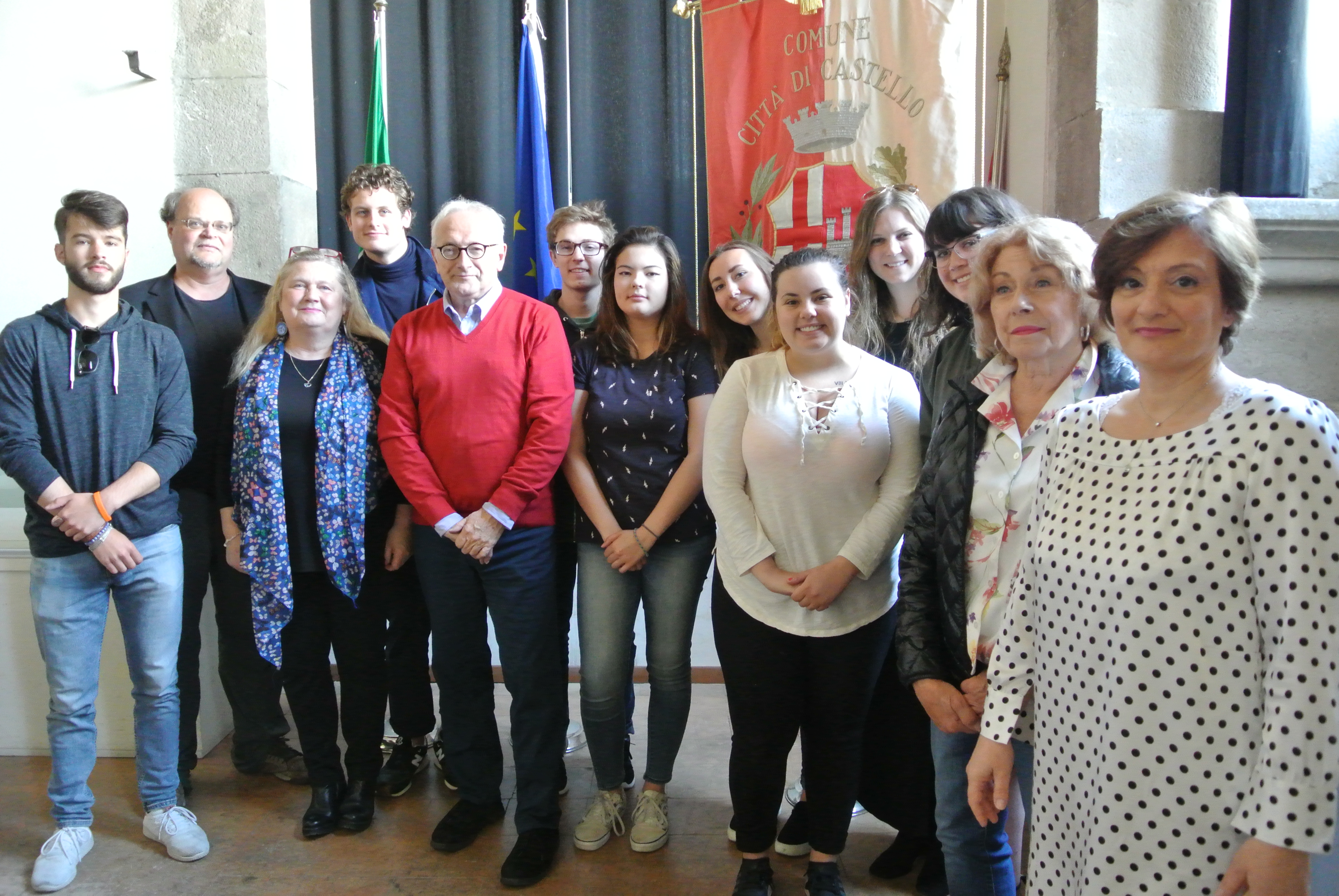 Prosegue con intense forme di collaborazione sia con il polo liceale Plinio il Giovane che nella prima di San Filippo il soggiorno dei 12 studenti americani della Washington University di Seattle a Città di Castello, che per il secondo anno consecutivo svolgeranno in Umbria, ospiti di famiglie tifernati, il corso di lingua italiana, tenuto dai docenti Claudio Mazzola e Ruggiero Taradel. Nei giorni scorsi la delegazione è stata ricevuta ufficialmente in comune dall’assessore alle Politiche educative Rossella Cestini, che ha incontrato i dieci studenti e gli insegnanti, insieme alla dirigente del Polo Eva Bambagiotti e al dirigente del Primo Circolo Didattico Massimo Belardinelli. “Il soggiorno si sta svolgendo in un clima di grande collaborazione sia con le scuole che con le famiglie”, commenta la Cestini, coordinato dal comune di Città di Castello, “per i nostri ragazzi è un’esperienza positiva sia dal punto di vista umano che per la pratica dell’inglese. Per un mese infatti saranno a contatto quotidiano con un loro quasi pari età e allo stesso tempo gli studenti americani diventeranno insegnanti nelle sessioni di conversazione che si tengono due volte alla settimana a scuola. Nella scuola di San Filippo sono stati riproposti gli atelier con un’inversione dei ruoli tra universitari e bambini su un progetto di educazione artistica. Nella parte finale del soggiorno avranno un interessante laboratorio di cucina tradizionale italiana presso il Centro di formazione Bufalini. Abbiamo riservato i giovedì pomeriggio alla conoscenza del nostro patrimonio museale in collaborazione con l’assessorato alla Cultura e con le strutture che si sono rese gentilmente disponibili. Devo ringraziare in particolare società rionale Quelli di la dal ponte che ormai è nostro partner in questo scambio dato che i volontari del presidente Marsilio Sinatti, per la seconda volta, hanno curato la cena di benvenuto. Mi sembra particolarmente significata la sensibilità delle molte famiglie di Città di Castello che si sono prestate come ospiti, rendendo possibile questa bella esperienza, su cui naturalmente riponiamo delle aspettative in vista di un rapporto di maggiore reciprocità con la prestigiosa istituzione americana frequentata dagli studenti”. (allegata foto)