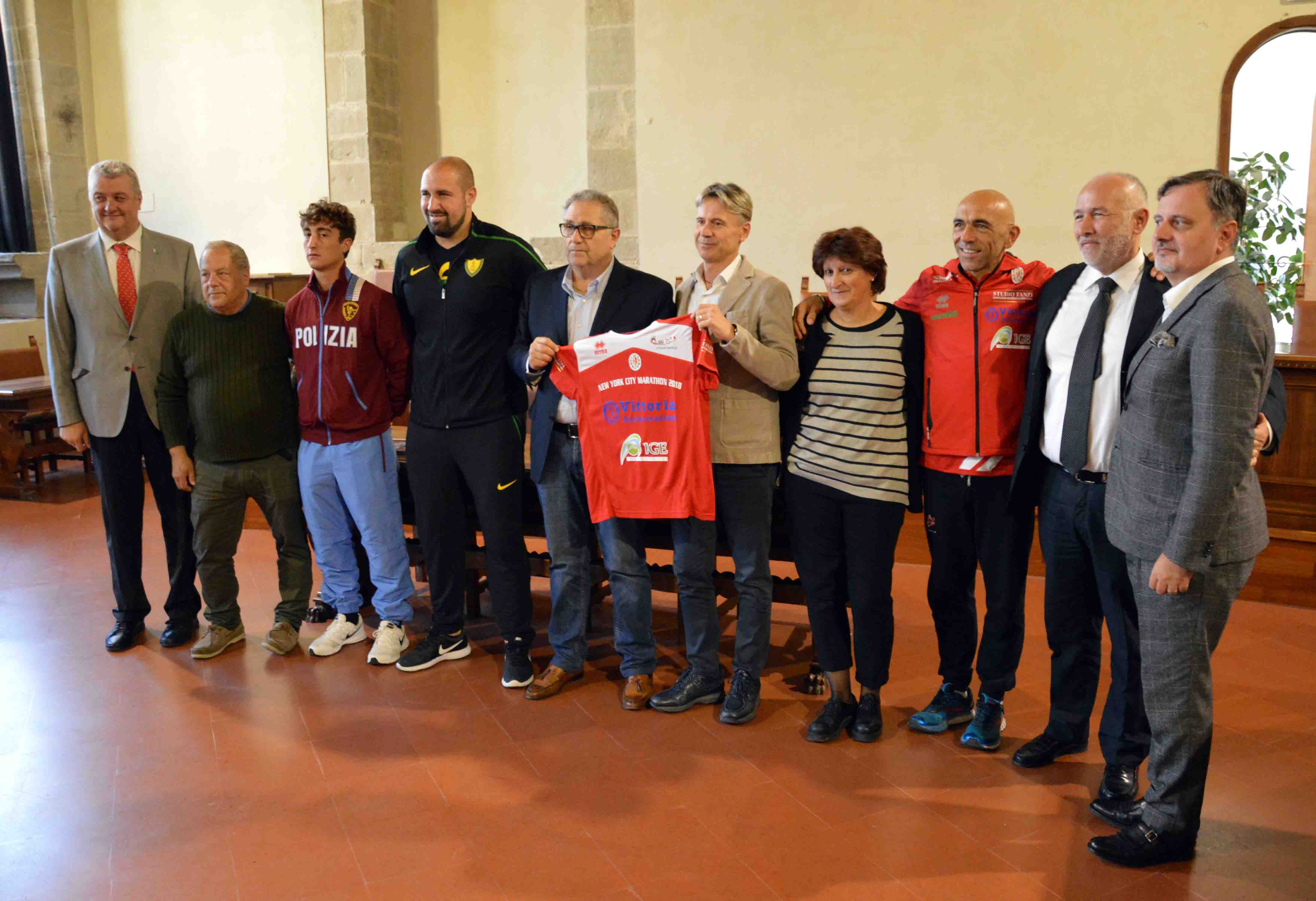 Sfilata di eccellenze sportive di Città di Castello nella residenza municipale, dove l’assessore allo Sport Massimo Massetti ha incontrato il campione mondiale a squadre nella specialità del double trap seniores maschile Andrea Vescovi e il campione italiano di lancio con il disco Giovanni Faloci, insieme ai rappresentanti della Tiferno Runners, che parteciperà alla maratona di New York con quattro atleti e l’obiettivo ambizioso di portare Cristian Marianelli a essere il primo italiano a tagliare il traguardo. “Questa mattina siamo qui per interpretare il desiderio di tanti tifernati che avrebbero voluto stringere la mano e congratularsi con due straordinari atleti come Vescovi e Faloci e fare un incoraggiamento sincero ai podisti che correranno la maratona più importante al mondo con il logo del Comune di Città di Castello sul petto”, ha sottolineato Massetti nell’incontro, al quale ha preso parte l’arbitro internazionale di pallavolo Simone Santi, per la prima volta nella sua nuova veste ufficiale di delegato del Coni per i comuni dell’Alta Valle del Tevere, la dirigente comunale del Servizio Sport Giuliana Zerbato, il presidente della “Tiferno Runners” Andrea Vandini, con alcuni sponsor, e il presidente dell’Altletica Libertas Ugo Tanzi. “E’ un dovere, oltre che un motivo di orgoglio per l’amministrazione comunale – ha detto Massetti - premiare Vescovi e Faloci, che portano in alto il nome di Città di Castello in due discipline nelle quali non è facile emergere partendo da un contesto territoriale come il nostro e nelle quali arrivare ai massimi livelli è, pertanto, davvero un magnifico esempio di talento e professionalità nella pratica dello sport”. A nome dell’amministrazione comunale l’assessore ha consegnato una targa commemorativa dei successi ottenuti ai due campioni, i quali, visibilmente emozionati, hanno espresso la soddisfazione di veder sottolineati pubblicamente i risultati ottenuti, ma soprattutto l’impegno e la passione con cui quotidianamente si sono preparati per questi obiettivi. Insieme a Santi, Massetti ha auspicato per entrambi la partecipazione alle Olimpiadi del 2020 a Tokyo e ha dato l’appuntamento per un nuovo incontro in Comune nel quale festeggiare altri successi. Lo stesso proposito è stato formulato al presidente della Tiferno Runners Vandini, che il 4 novembre correrà a New York insieme a Marianelli, invitato dall’organizzazione della manifestazione per il decimo tempo italiano sulla distanza ottenuto a Rimini nel 2017, Federico Morini e Daniele Belletti. “Partecipare con quattro atleti a un evento così importante è già un obiettivo straordinario che ci inorgoglisce – ha puntualizzato Massetti - perché la ‘Tiferno Runners’ sarà in gara con il logo del Comune e porterà Città di Castello in una ribalta internazionale di grande prestigio, nella quale tiferemo perché il podista di punta della squadra Marianelli possa primeggiare”. Nel salutare gli atleti a nome del Coni e rappresentare la particolare soddisfazione del comitato umbro, Santi ha ringraziato il presidente Domenico Ignozza per la nomina e l’assessore Massetti per aver avanzato la sua candidatura, garantendo il massimo impegno per rappresentare tutti gli sport nei comuni della vallata e farsi interprete delle istanze e delle problematiche delle amministrazioni locali.