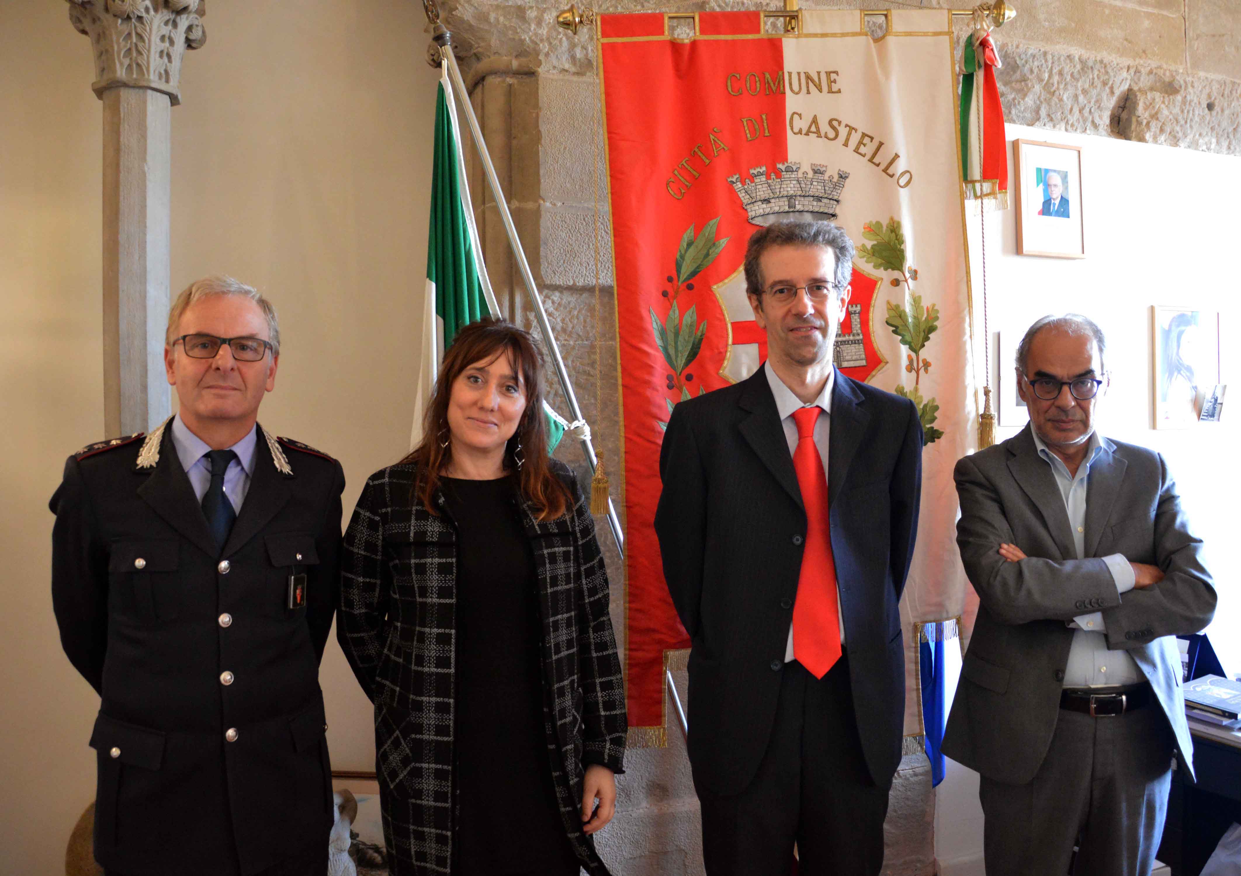 Prima stretta di mano in Comune tra il sindaco Luciano Bacchetta e il tenente colonnello Marco Ravaglia, nuovo comandante della Polizia Municipale di Città di Castello, che ha preso servizio giovedì 1 novembre. Alla presenza dell’assessore con delega al corpo comunale Monica Bartolini e al vice comandante Graziano Fiorucci, il primo cittadino ha incontrato stamattina nel proprio ufficio il nuovo dirigente, vincitore della selezione pubblica bandita dall’ente in base all’art.110, comma 1, del D.Lgs. 267/2000, che oltre coordinare i Vigili Urbani avrà anche la responsabilità dei Servizi Demografici. “Abbiamo tra noi una persona molto seria, competente e capace, con molta buona volontà, che sarà un ottimo comandante della nostra Polizia Municipale”, ha affermato Bacchetta insieme a Bartolini nel congratularsi con il comandante Ravaglia per il nuovo incarico e nel garantire “la massima collaborazione da parte di tutta l’amministrazione comunale nello svolgimento dell’importante lavoro che sarà chiamato a fare nella nostra città”. “Sono qui con l’obiettivo di riorganizzare il corpo di Polizia Municipale secondo gli indirizzi dell’amministrazione comunale e gestire con la massima attenzione l’attività dei Servizi Demografici, assicurando attraverso l’efficienza l’interesse collettivo”, ha dichiarato Ravaglia, che ha ringraziato insieme al sindaco Bacchetta e all’assessore Bartolini il vice comandante Fiorucci per aver assunto la responsabilità della guida dei Vigili Urbani nei sette mesi intercorsi tra il suo arrivo e il pensionamento dell’ex comandante Luisella Alberti. “Il periodo di reggenza è stato una bella esperienza – ha detto Fiorucci - sono pronto a collaborare con il nuovo comandante, con cui, insieme a tutto il corpo, sono sicuro sarà possibile fare un buon lavoro al servizio dei cittadini e degli obiettivi che l’amministrazione comunale ci ha dato”. Il nuovo comandante dirigerà un corpo di Polizia Municipale attualmente composto da 15 agenti e due amministrativi, più i 13 dipendenti dei Servizi Demografici al lavoro negli uffici del capoluogo e presso la delegazione di Trestina.