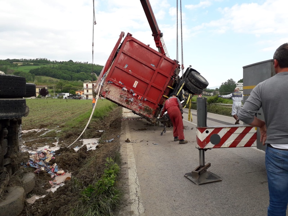 Delicate e per certi aspetti spettacolari le operazioni di recupero del mezzo pesante che giovedi scorso si è ribaltato all’interno di un appezzamento agricolo che costeggia la strada provinciale 221 di Lerchi che collega Città di Castello ad Arezzo. Una azienda specializzata in questo genere di operazioni, attraverso una gru posizionata nel mezzo della carreggiata (la strada è rimasta ovviamente chiusa al traffico) ha iniziato attorno alle ore 8 ad imbracare il camion e dopo circa due ore lo ha riposizionato sulla sede stradale per poi trasportarlo in assoluta sicurezza al di fuori della zona dove si era verificato l’incidente che aveva anche provocato la perdita del carico, gelati destinati allo smaltimento, che si erano riversati sul terreno circostante. Tutto il carico è stato recuperato e dopo aver adeguatamente bonificato la sede stradale da parte degli addetti dell’azienda, l’arteria viaria è stata riaperta al traffico attorno alle ore 13. Le operazioni in accordo tra i tecnici e agenti della Viabilità della Provincia di Perugia, comprensorio numero uno e la Polizia Municipale del comune di Città di Castello si sono dunque concluse con limitati disagi per gli automobilisti che sono stati dirottati, per il tempo necessario al ripristino della strada, nel percorso alternativo Vingone-Cerbara-svincolo piastra logistica per chi proveniva da Arezzo, mentre da Città di Castello il rientro sulla E45 con uscita a San Sepolcro. Il sindaco di Città di Castello, Luciano Bacchetta, in questa circostanza con competenze specifiche anche sulla viabilità in qualità di Presidente della Provincia di Perugia ha ringraziato i tecnici e agenti del settore viabilità dell’ente di Piazza Italia, le forze dell’ordine, i vigili del fuoco e la ditta specializzata al recupero del mezzo pesante e del carico disperso nel terreno, per la celerità, sinergia e professionalità del delicato intervento.