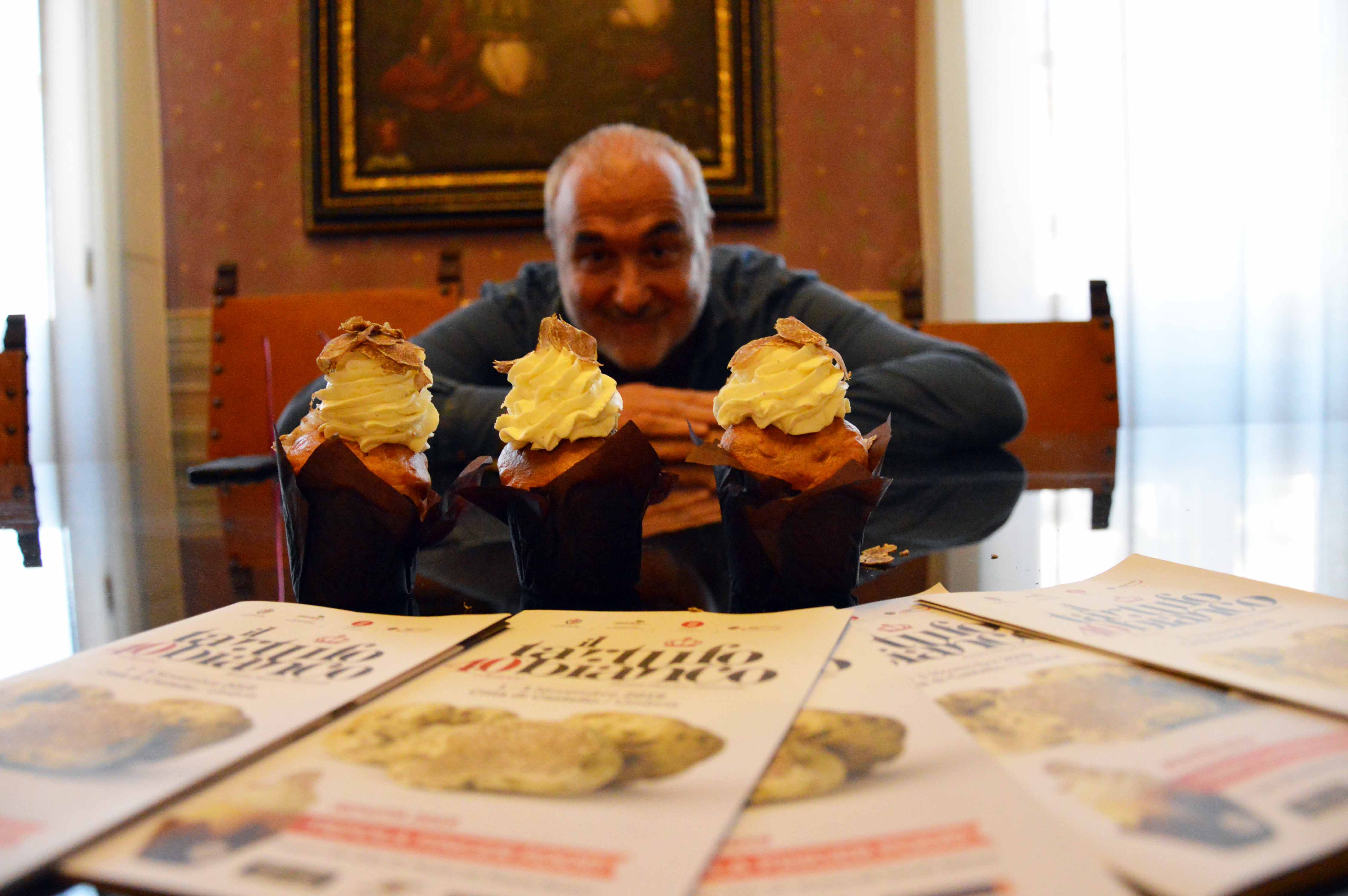 Nozze inedite tra cioccolato e tartufo. Il Trifola Finger Food di Città di Castello sarà ad Eurochocolate. Il patron di Eurochocolate Eugenio Guarducci assaggia il super muffin a base di Parmigiano Reggiano, Trifola dell’Alto Tevere e Patata Deco di Pietralunga e invita la 40° Mostra del tartufo bianco di Città di Castello alla manifestazione che si inaugura a Perugia venerdì 18 ottobre 2019.