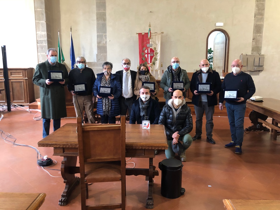 Capodanno di riconoscimenti professionali alla carriera per sette dipendenti comunali. E’ stata una cerimonia breve ma intensa sotto il profilo umano e voluta per ringraziare sette dipendenti andati in pensione nel corso di vari periodi dell'anno, quella che si č svolta a Capodanno nella sala consiliare del Comune di Cittā di Castello. Hanno partecipato il sindaco, Luciano Bacchetta assieme al vicesindaco, Luca Secondi e gli assessori Riccardo Carletti e Massimo Massetti. A ricevere il riconoscimento, una targa con il logo del comune ed una frase di motivazione, sono stati: Aliana Baldicchi, Rita Fagiani, Aldo Fegatelli, Antonio Coletti, Angelo Battistoni, Federico Margutti e Mario Bastianoni. “Con questa breve ma sentita cerimonia abbiamo voluto offrire un momento di aggregazione e condivisione, nel rispetto delle regole vigenti in questo periodo di emergenza sanitaria, al fine di rivolgere un sentito ringraziamento ai dipendenti che, per tanti anni, hanno prestato in maniera professionale e senso di appartenenza il loro servizio nell'ambito di diversi settori del comune”, ha dichiarato il sindaco Luciano Bacchetta ricordando anche altri dipendenti che nel “tempo hanno operato sul territorio con grande dedizione attraverso il lavoro svolto in questi anni a servizio dell’intera collettivitā. Grazie”.