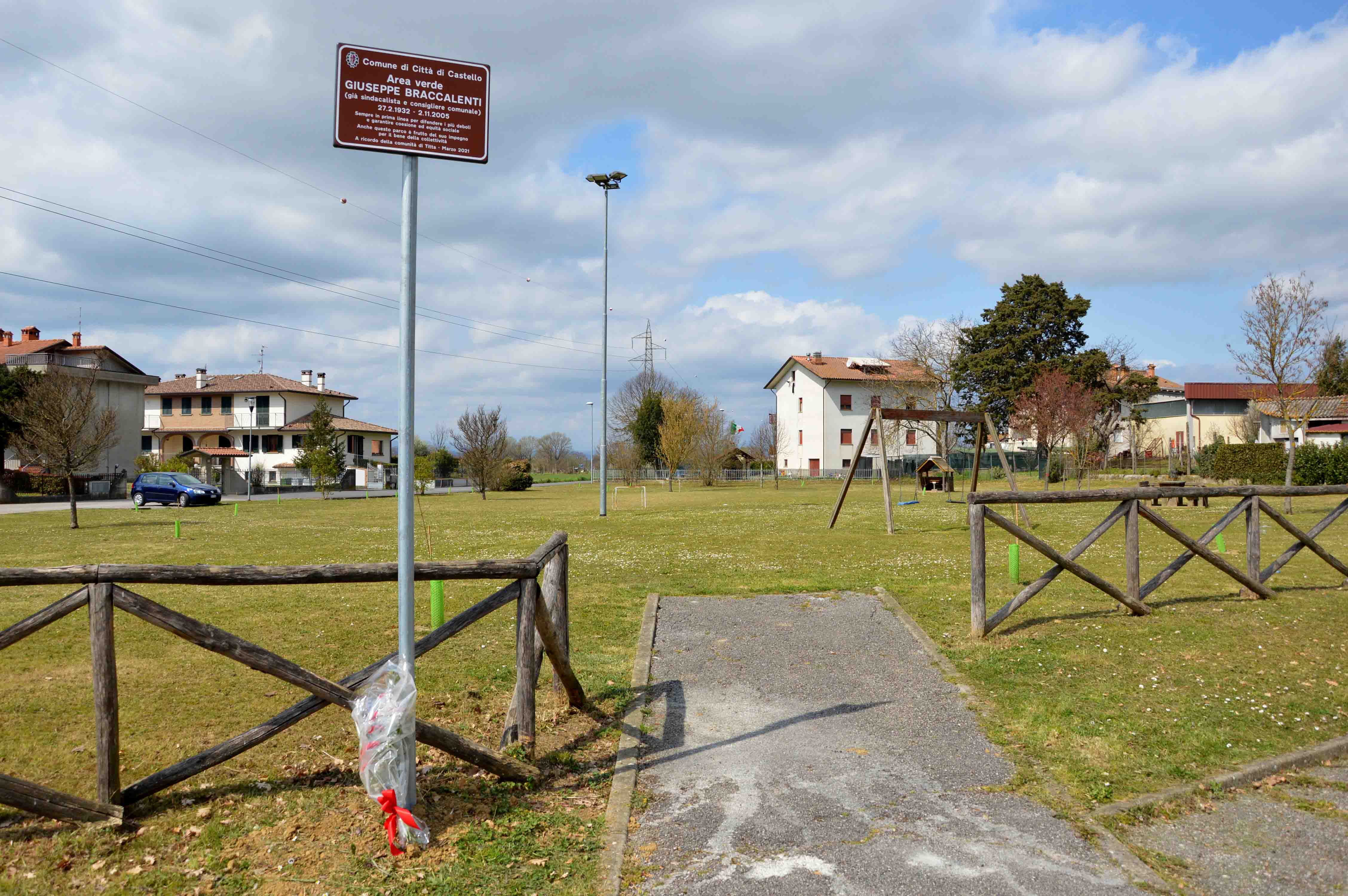 Da oggi l’area verde nella frazione di Titta che circonda la chiesa, la scuola ed alcune abitazioni porta il nome di Giuseppe Braccalenti, di colui che con tanta passione e determinazione l’aveva pensata avviandone l’iter di realizzazione. Nel corso di una breve ma sentita cerimonia, il sindaco, Luciano Bacchetta, ha scoperto il drappo sulla indicazione della via intitolata ad un grande tifernate nato e cresciuto proprio in questa comunità a poca distanza dal quartiere “Graticole”, per la quale si è speso tanto come cittadino, infaticabile rappresentante del sindacato e amministratore pubblico. La richiesta nel 2017 è stata promossa congiuntamente dalle associazioni, Pro Loco e Circolo Acli Titta e dall’Associazione “Noi di Userna”. Nella Frazione di Titta, Giuseppe Braccalenti, ha operato fattivamente per creare aggregazione e dare impulso alla socialità. Anche l’area verde e annesso parcheggio al centro della zona abitata è frutto del suo impegno. “Nell’ultimo periodo della realizzazione dell’area verde purtroppo si ammalò – hanno dichiarato i figli Lorella e Rodolfo, nel corso di un breve e commosso ricordo- ne prendemmo cura al posto suo per accelerare e portare a compimento la volontà. Purtroppo ci lasciò nel novembre del 2005, poco prima dell’inaugurazione di questa area verde che avvenne a gennaio 2006.” “Nell’esercizio delle funzioni di consigliere comunale identificò quest'area centrale per evitare la cementificazione davanti alla scuola e per offrire un servizio aggiuntivo alla scuola stessa, dotandola di un parcheggio. Un prato verde – hanno concluso i figli ricordando anche l’apporto ed il sostegno della mamma Santina Pascolini e di tutta la famiglia - da poter utilizzare per le attività didattiche e per garantire un grande polmone alla comunità.” Quel sogno è diventato realtà ed ha un riconoscimento tangibile che tutti possono vedere. La comunità di Titta ha uno spazio aggregativo in grado di favorire la socializzazione e la libertà al gioco per ogni età. In questa area verde, infatti, capita di incontrare dei ragazzi a giocare, i nonni con i nipoti e, specialmente nelle sere d’estate (prima della pandemia) delle persone a giocare a carte. “Oggi più che mai, in momenti difficili come quello che stiamo vivendo – ha dichiarato il sindaco, Luciano Bacchetta - giornate come queste danno il senso vero della comunità, dell’appartenenza a valori autentici di solidarietà e condivisione di interventi utili e significativi per tutti. Questo luogo intitolato a Giuseppe Braccalenti è il segno di tutto questo: la gratitudine delle istituzioni per la sua straordinaria capacità di essere persona “buona”, perbene ma determinata e innamorata della sua famiglia, del sindacato, delle associazioni, delle istituzioni e della comunità che l’ha visto e crescere e dove è tornato a vivere con orgoglio. Grazie a nome di tutti i tifernati”. Accanto alla moglie Santina Pascolini, i figli Lorella, Rodolfo, i nipoti Andrea, Valeria, Nicola, Leonardo, il genero Paolo e la nuora Valentina, anche assessori, consiglieri comunali e regionali, amici, rappresentanti del panorama sindacale regionale e locale e dell’associazionismo per il quale Braccalenti si è speso sempre con rinnovato entusiasmo.